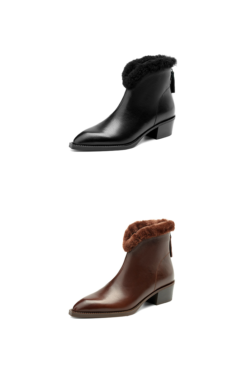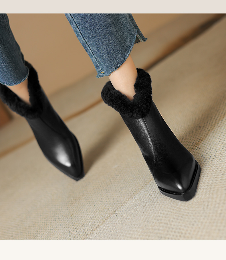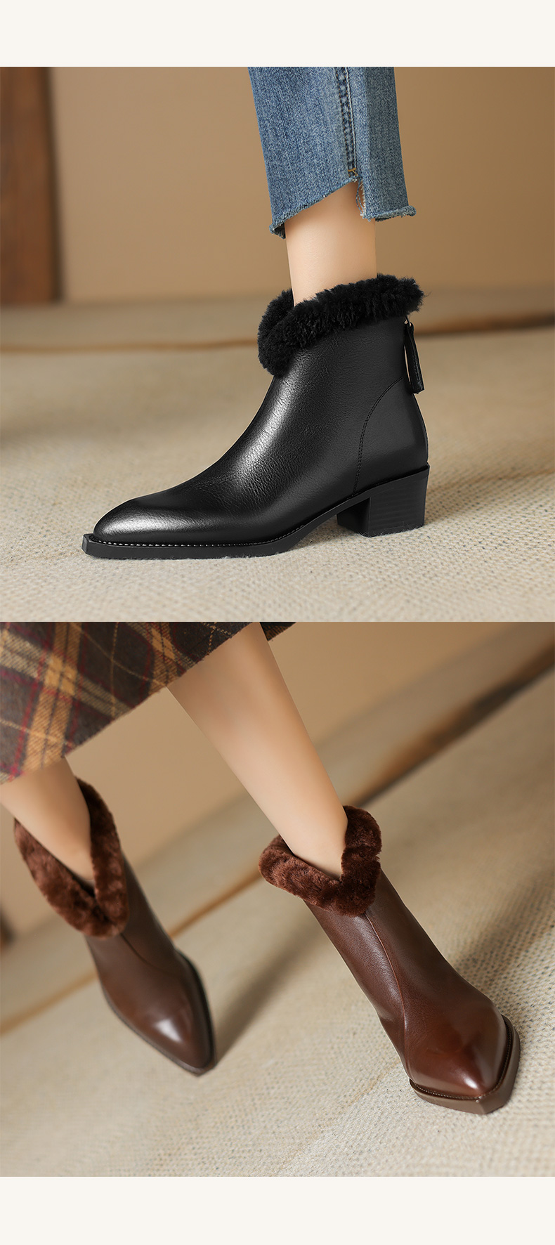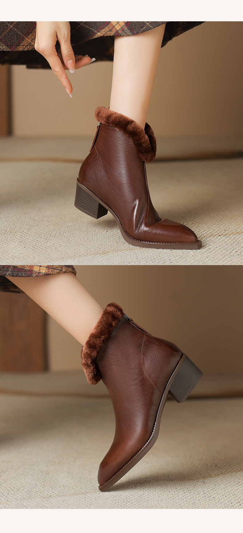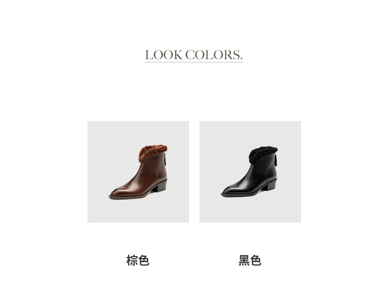 冬季新款,尖头真皮粗跟短靴YT-939-16