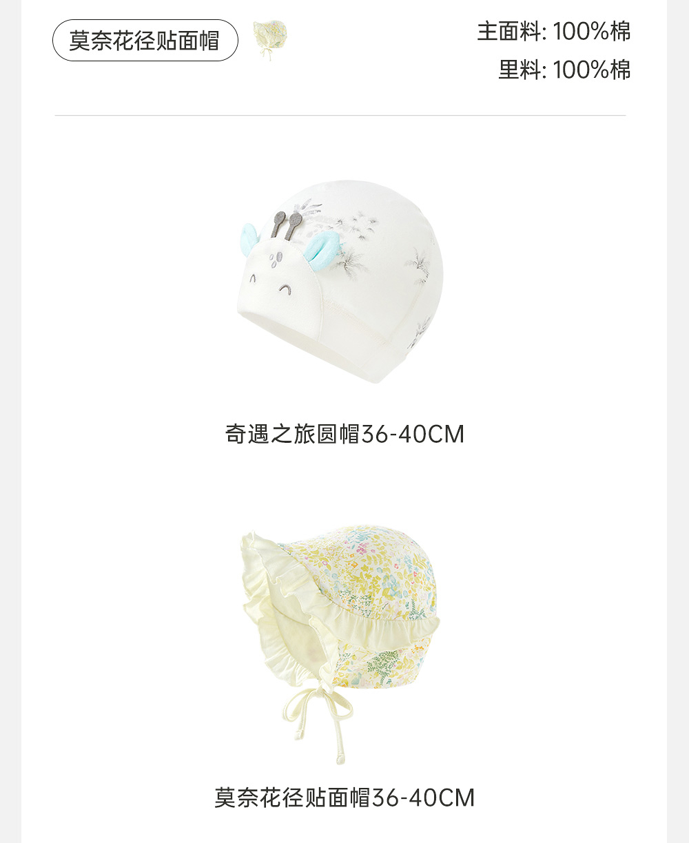 【商场同款】英氏婴儿帽子春夏纯棉小宝宝贴面帽柔软透气防闷帽子