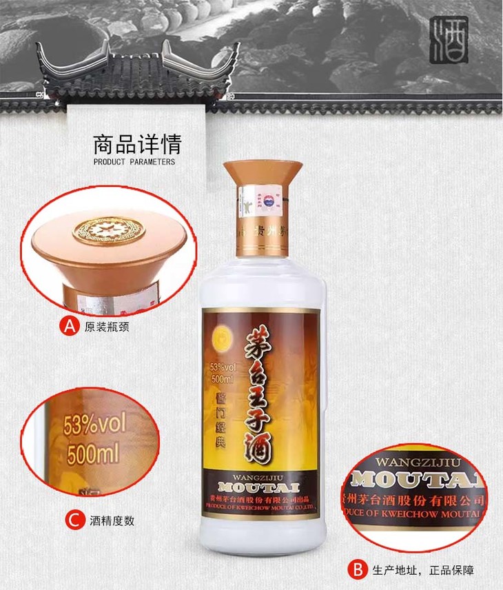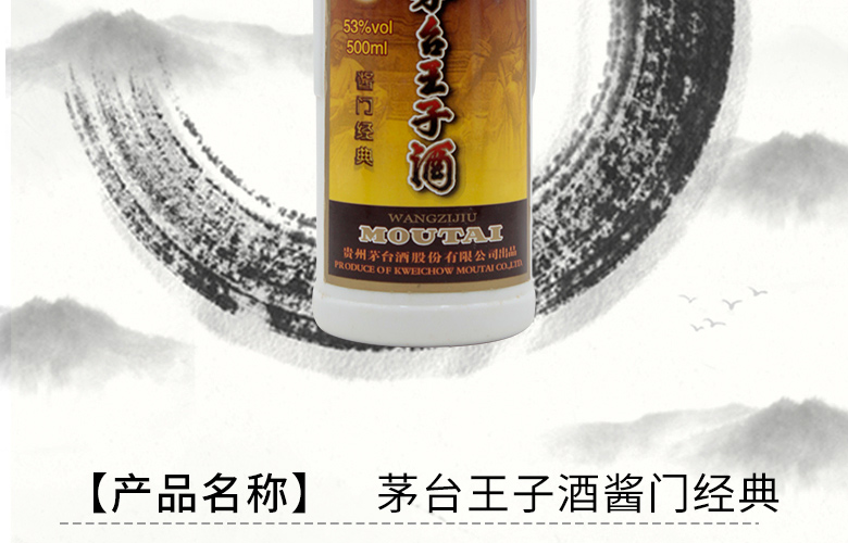 【推荐】贵州茅台酒股份有限公司出品 2018年王子酱门经典 酱香型53度 500ml X2【双瓶装】