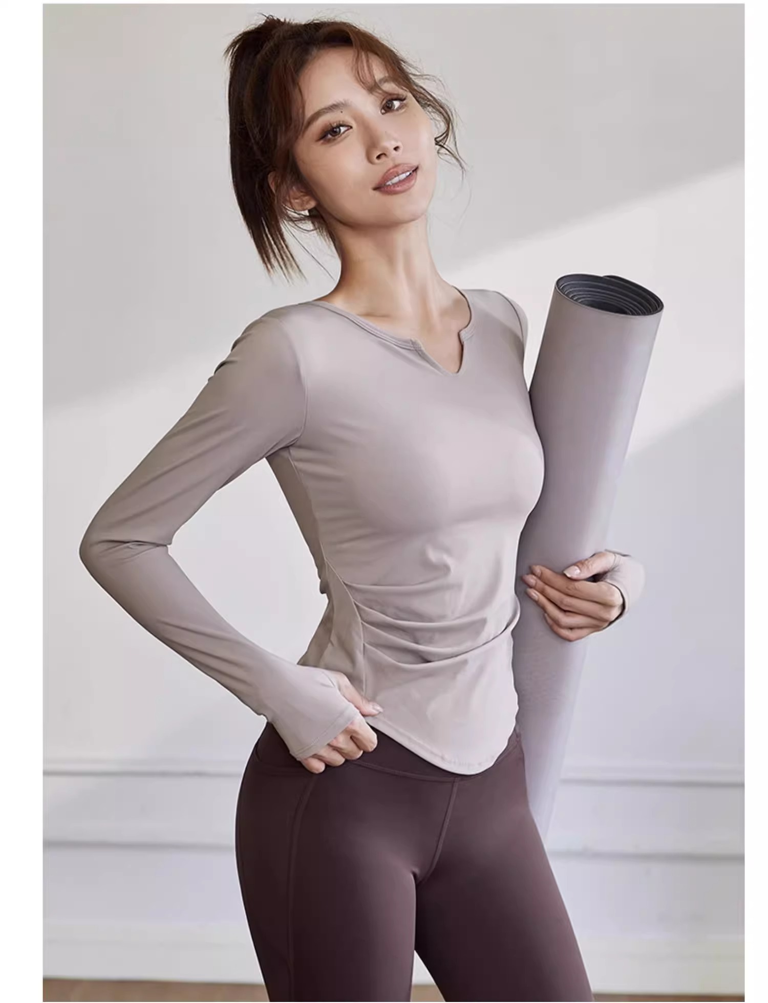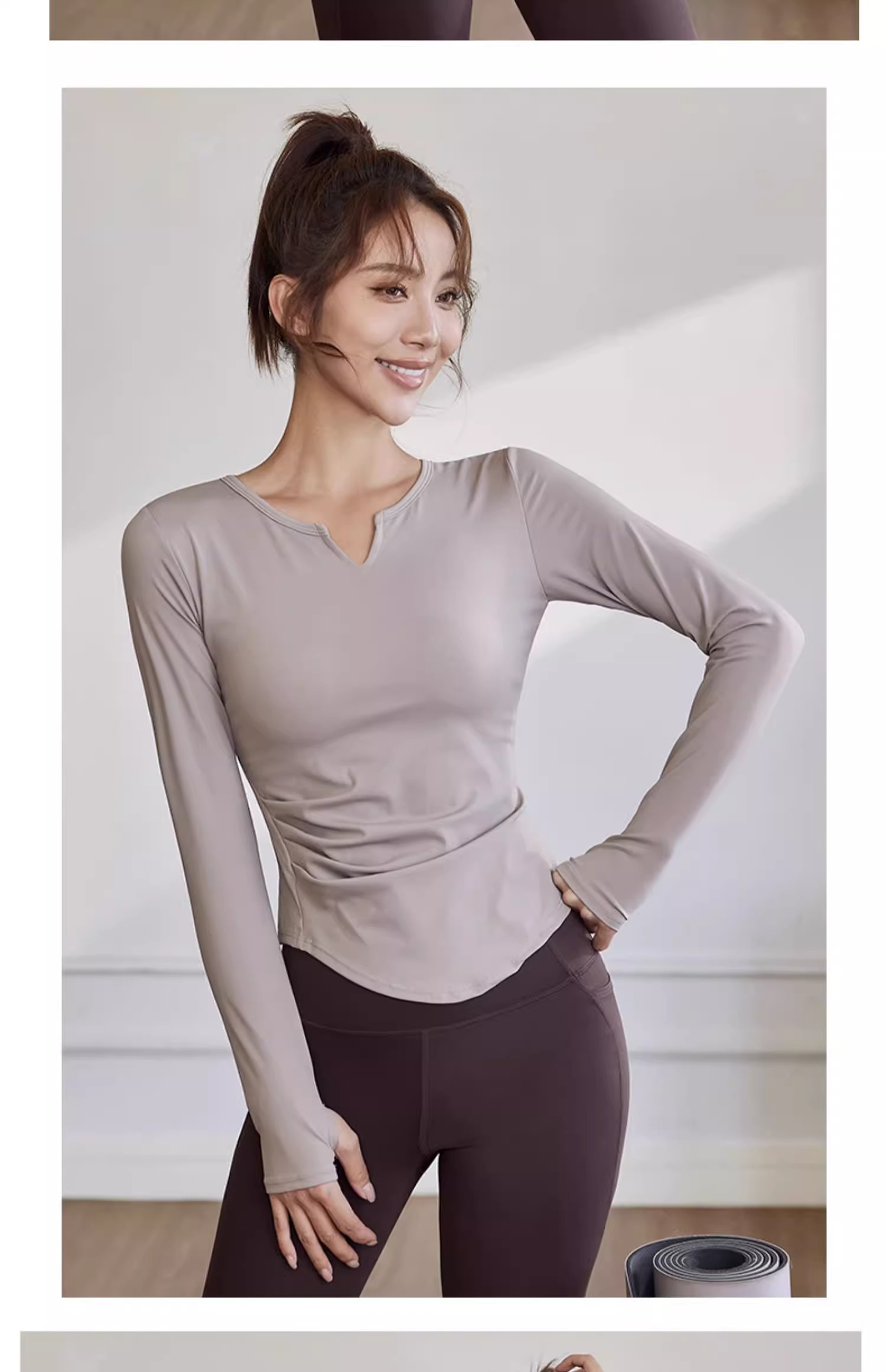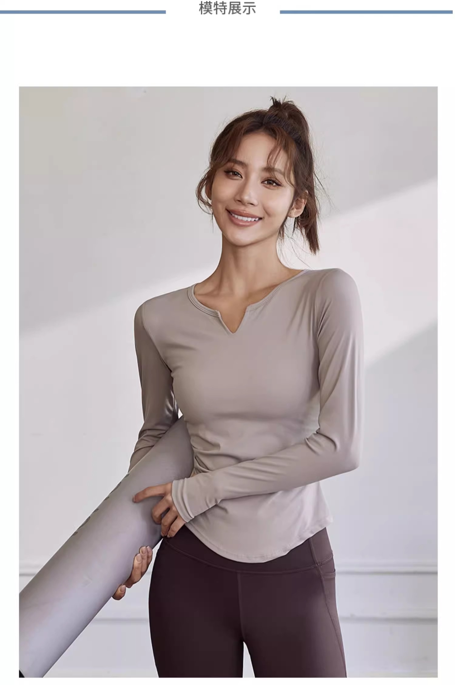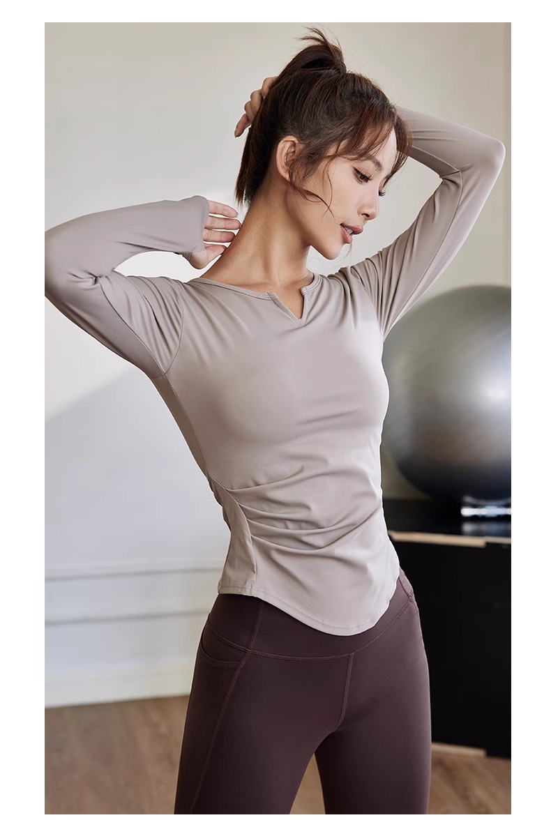 【147元任选3件】跃牌【蚂蚁运动】系列 秋冬款固定杯女长袖T恤弹力V领瑜伽服上衣T2739(活动产品,收货7天内支持退换)