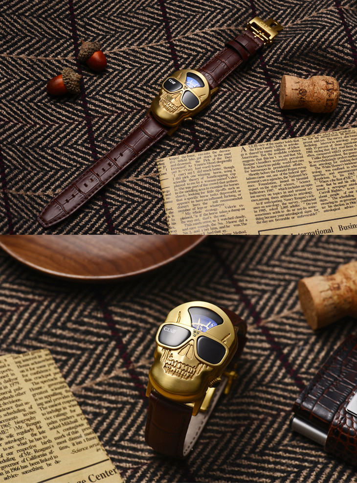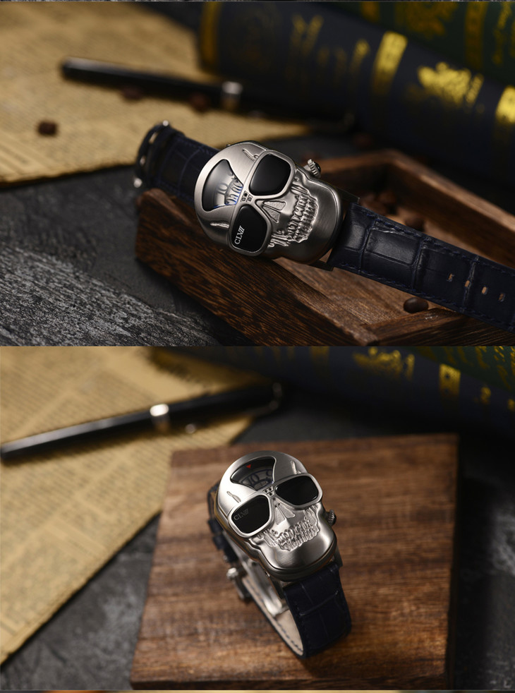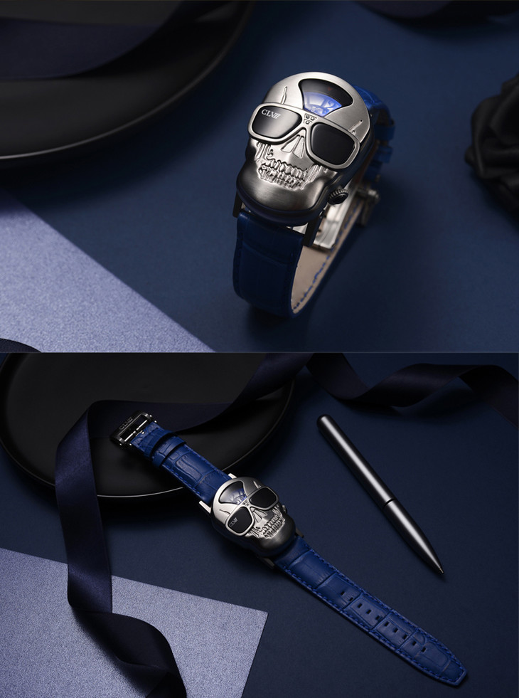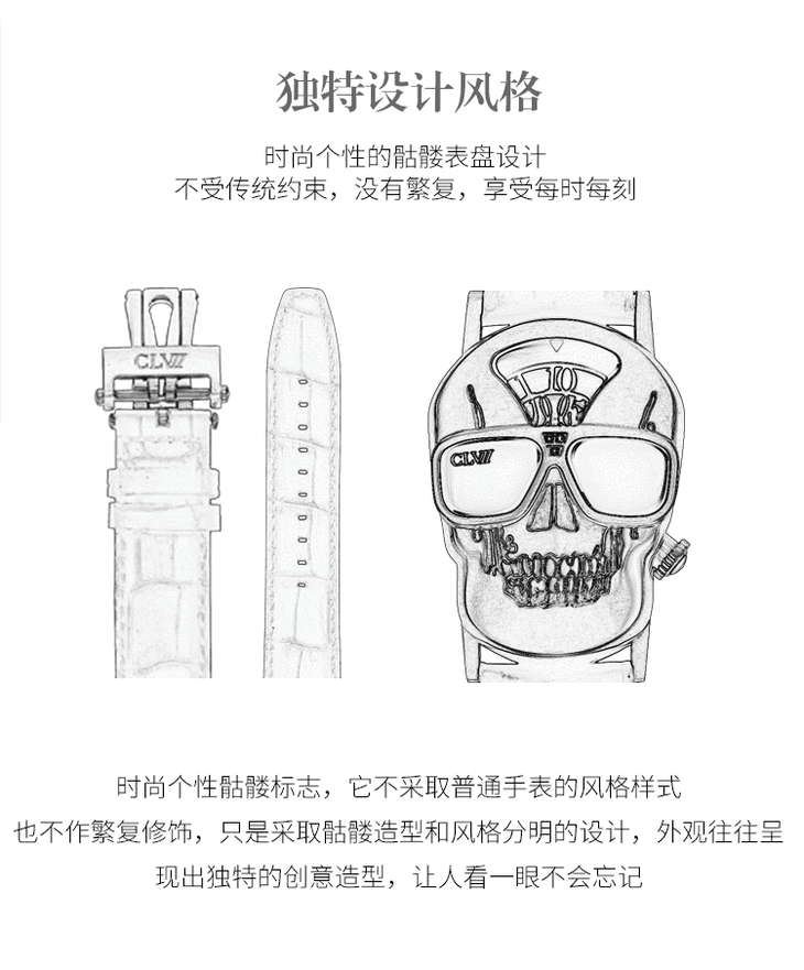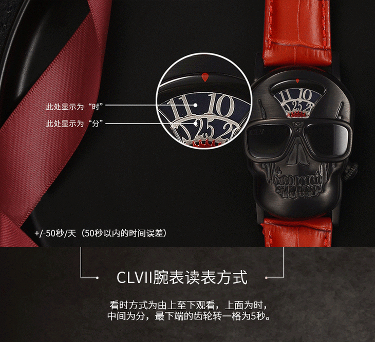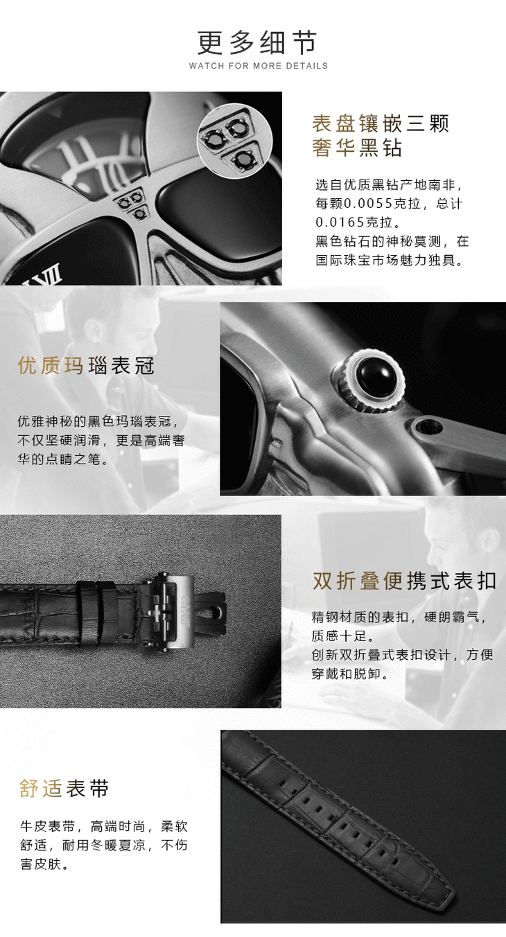 法国CLVII机械手表 镶嵌3颗南非黑钻 矿物质玻璃表盘 玛瑙表冠 精钢材质 法国制造