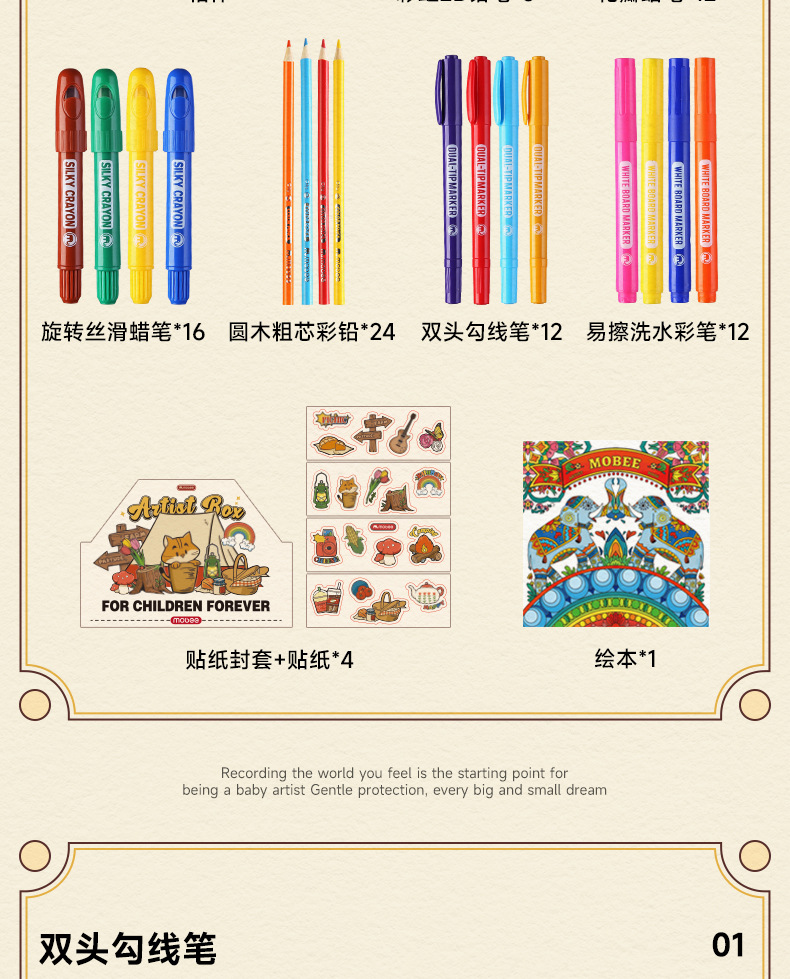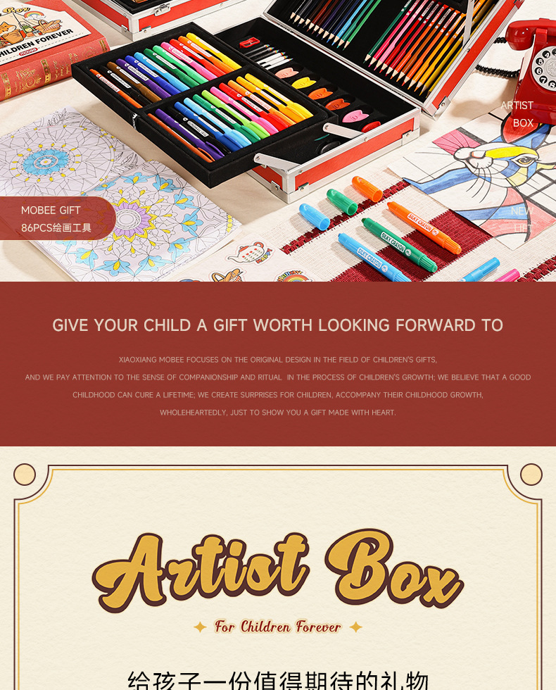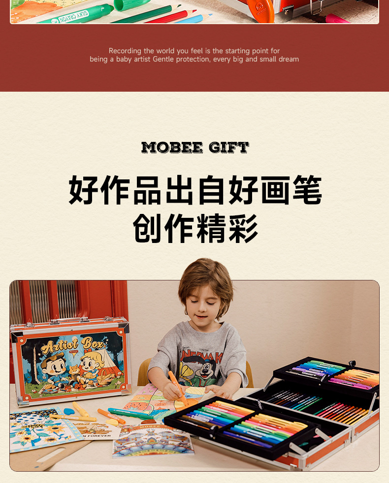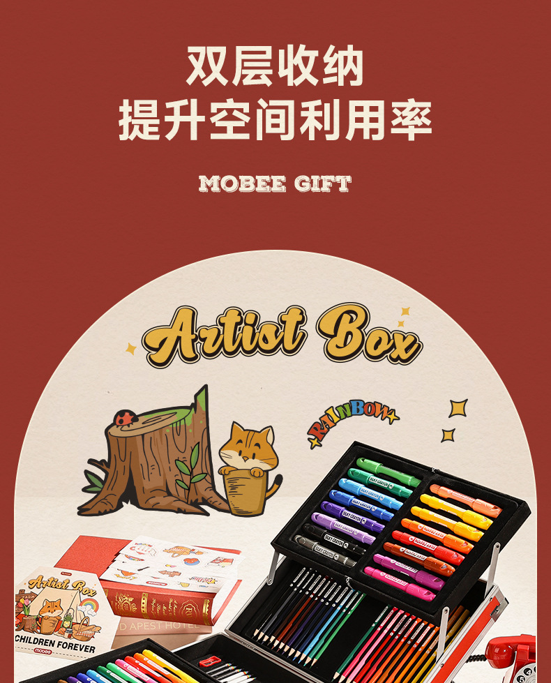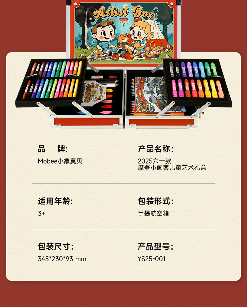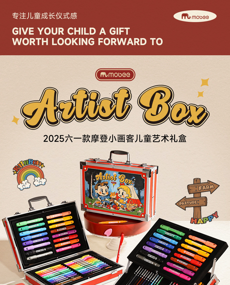 【2025六一限定绘画礼盒】mobee摩登小画客 儿童艺术礼盒 61六一儿童绘画套装蜡笔水彩笔