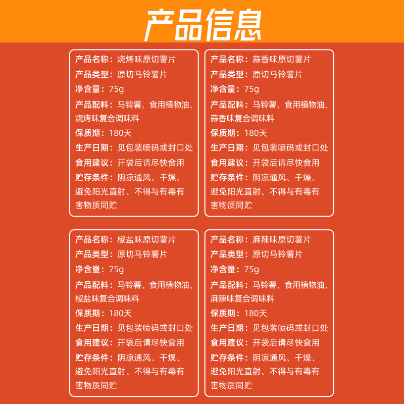 楚麻汉辣 原切非膨化土豆片土豆鲜果现切现炸75g/袋*4袋 四种口味19.7元