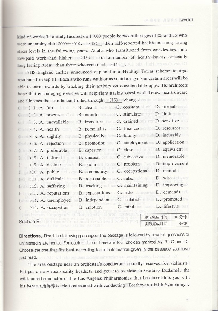 根据不同级别的不同题型和题量,我们为每个单元设置了“建议完成时间”作为参考,一般为一节课的时间。学生可以根据自身实际答题情况填写“实际完成时间”。