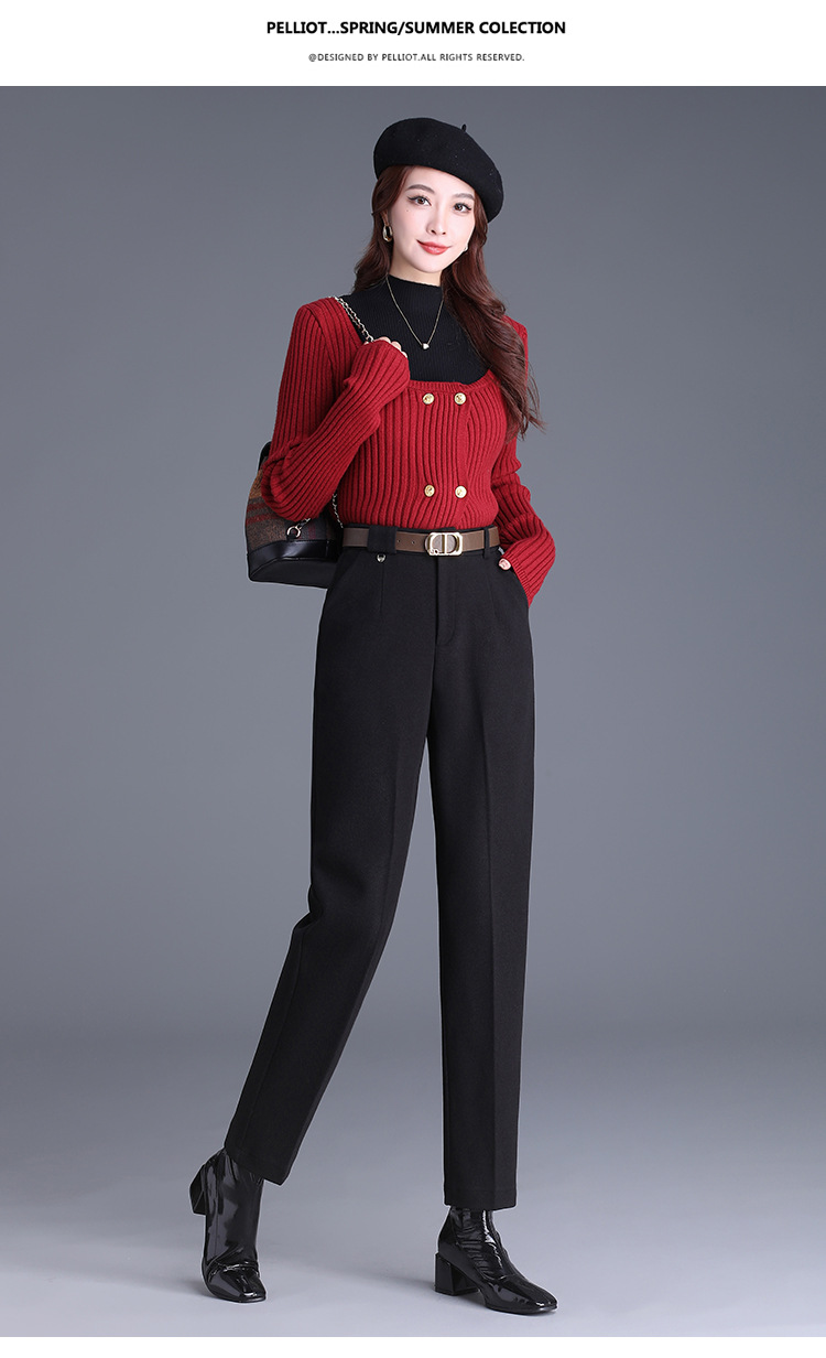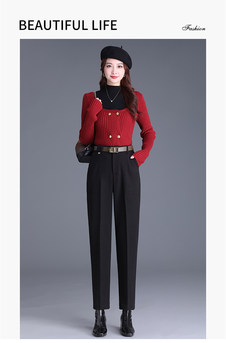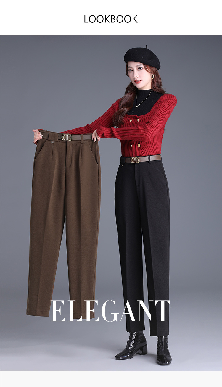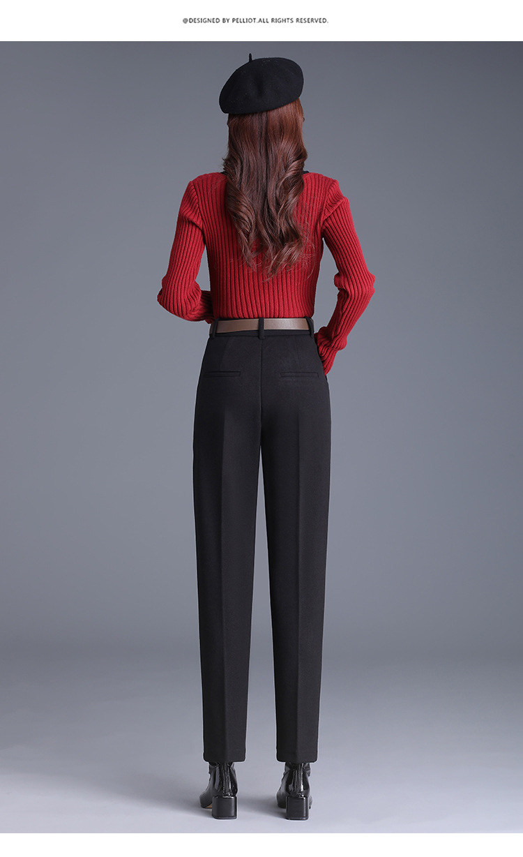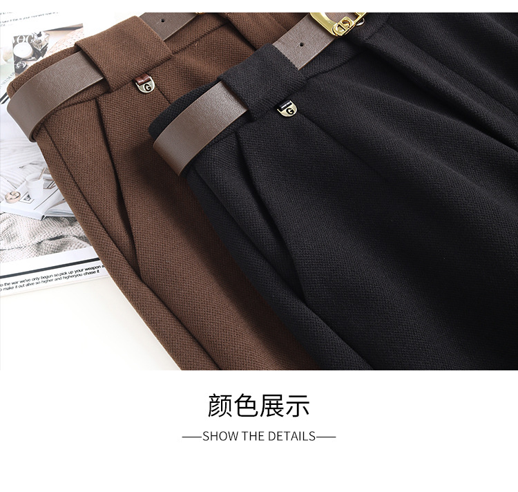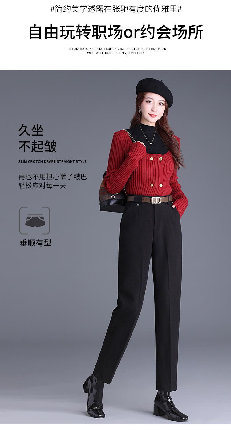 MYX-XBMY-QQ9328-L简约长款时尚毛呢锥形裤2023年秋冬款高腰休闲宽松时髦哈伦裤