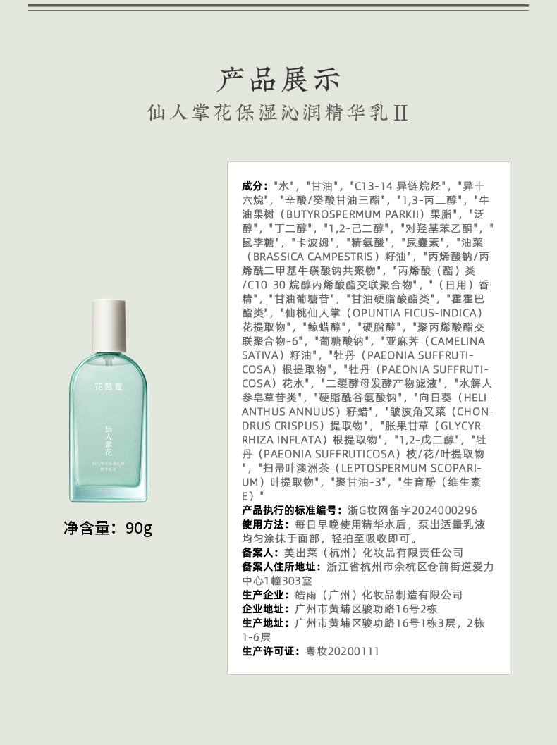【会员购买送10倍积分】花皙蔻仙人掌花沁润保湿精华乳90g