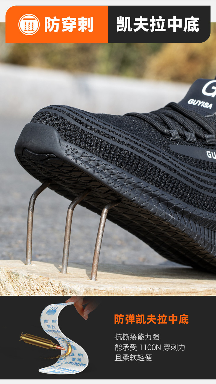 劳保鞋男防砸防刺穿钢包头凯夫拉中底耐磨橡胶底安全防护功能鞋