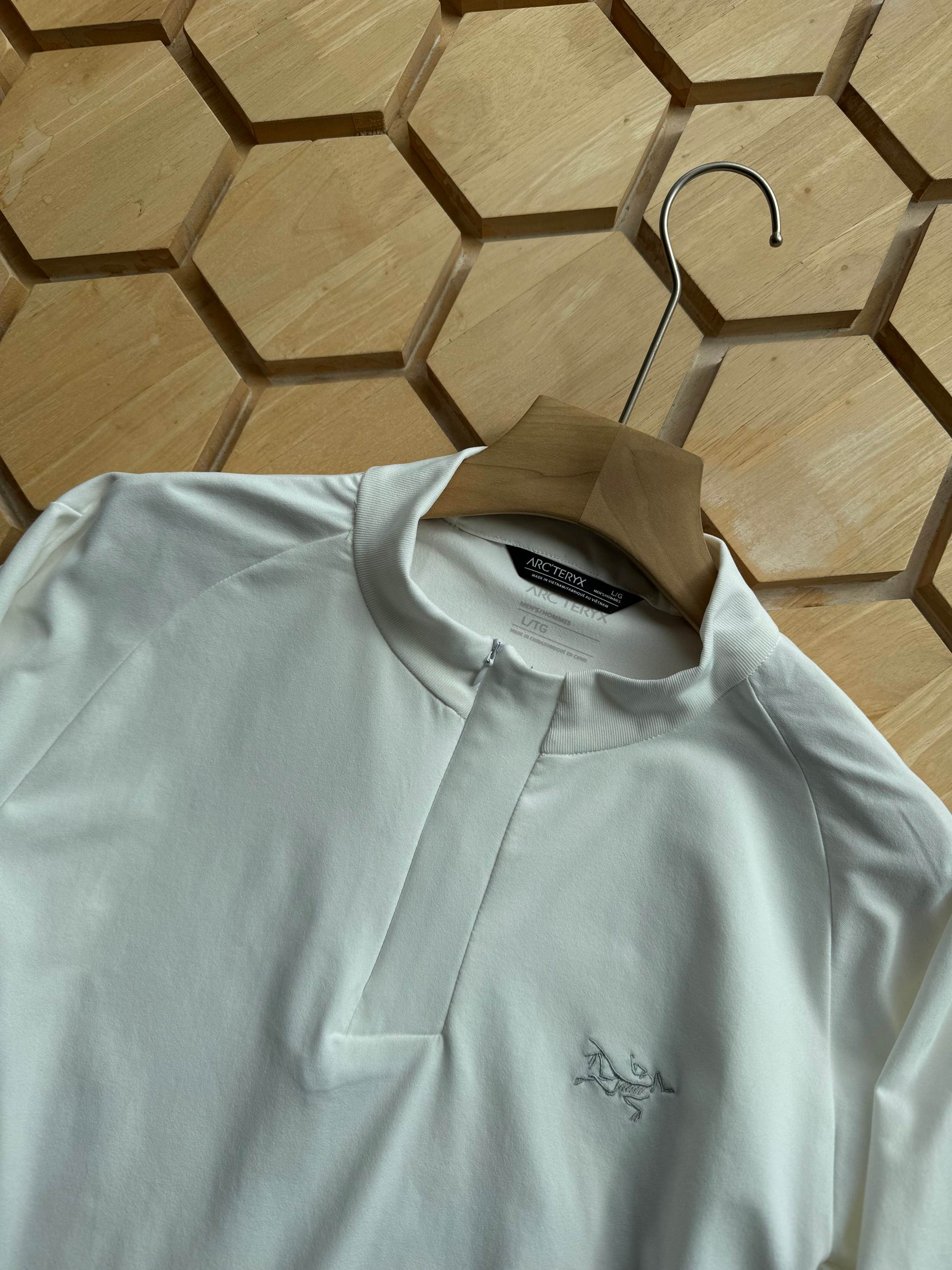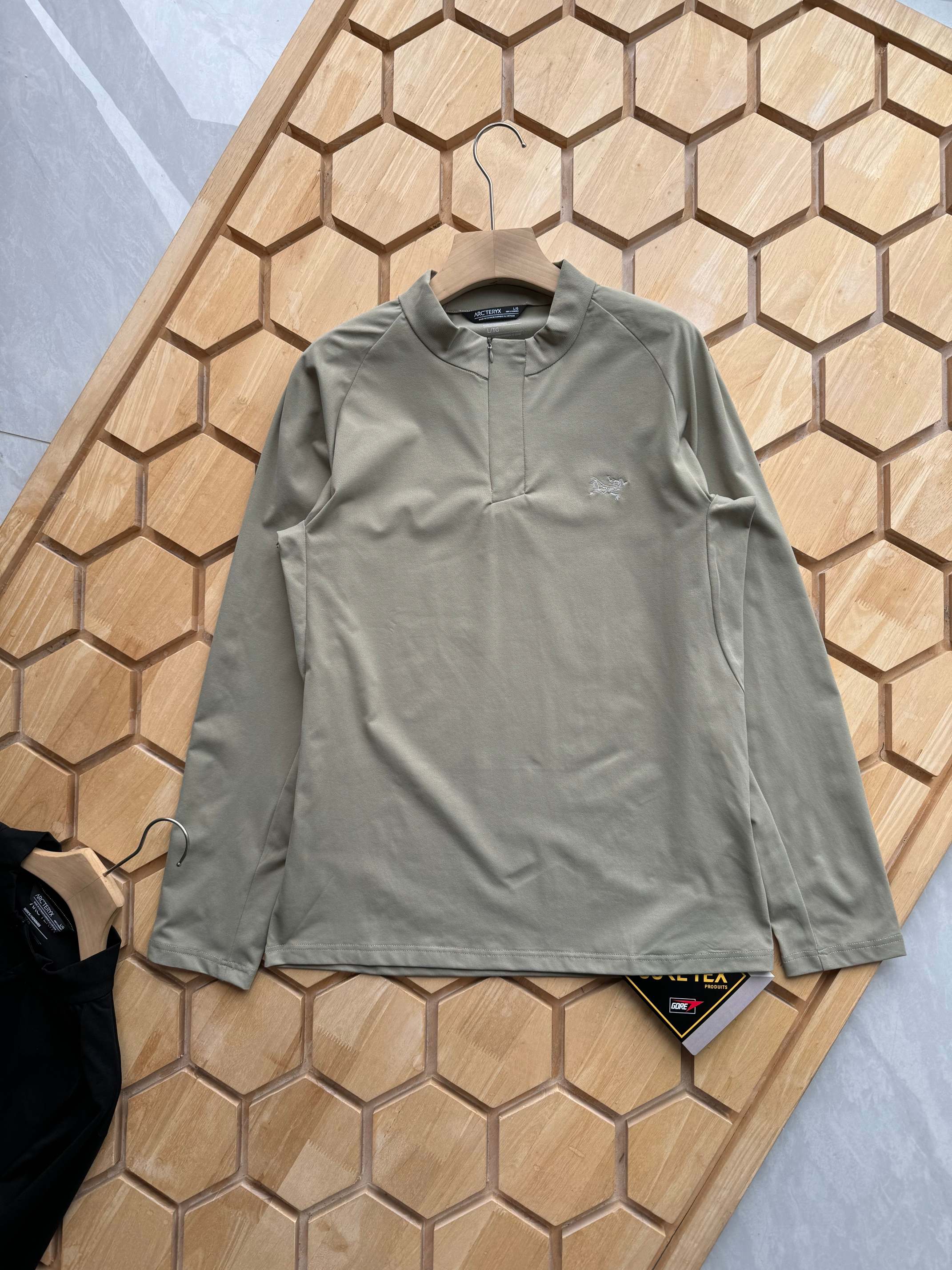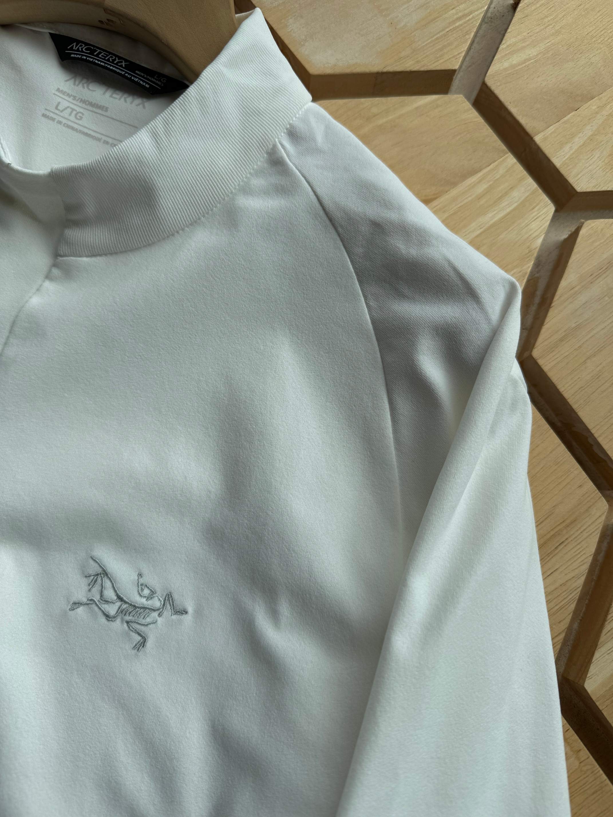 130 货号110752130 cp ARC'TERYX始祖鸟刺绣版休闲运动半拉链打底衫 采用独特的刺绣手法,精致立体多片拼接剪裁 轻量化速干长袖T恤 这是鸟高端VEILANCE商务高端系列,集功能性,美观性和耐久性于一身,延续了抵御严苛恶劣环境的功能,亦可从容应对复杂的当代都市生活!适合商务,旅行,休闲等场合,面料采用了 防泼水的弹力尼龙氨纶进口面料。整体剪裁采用了立体结构剪裁,在穿着时更加灵活自如。提高了穿着的舒适性和美观
