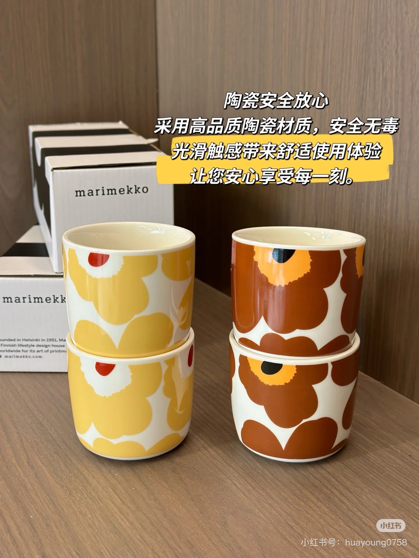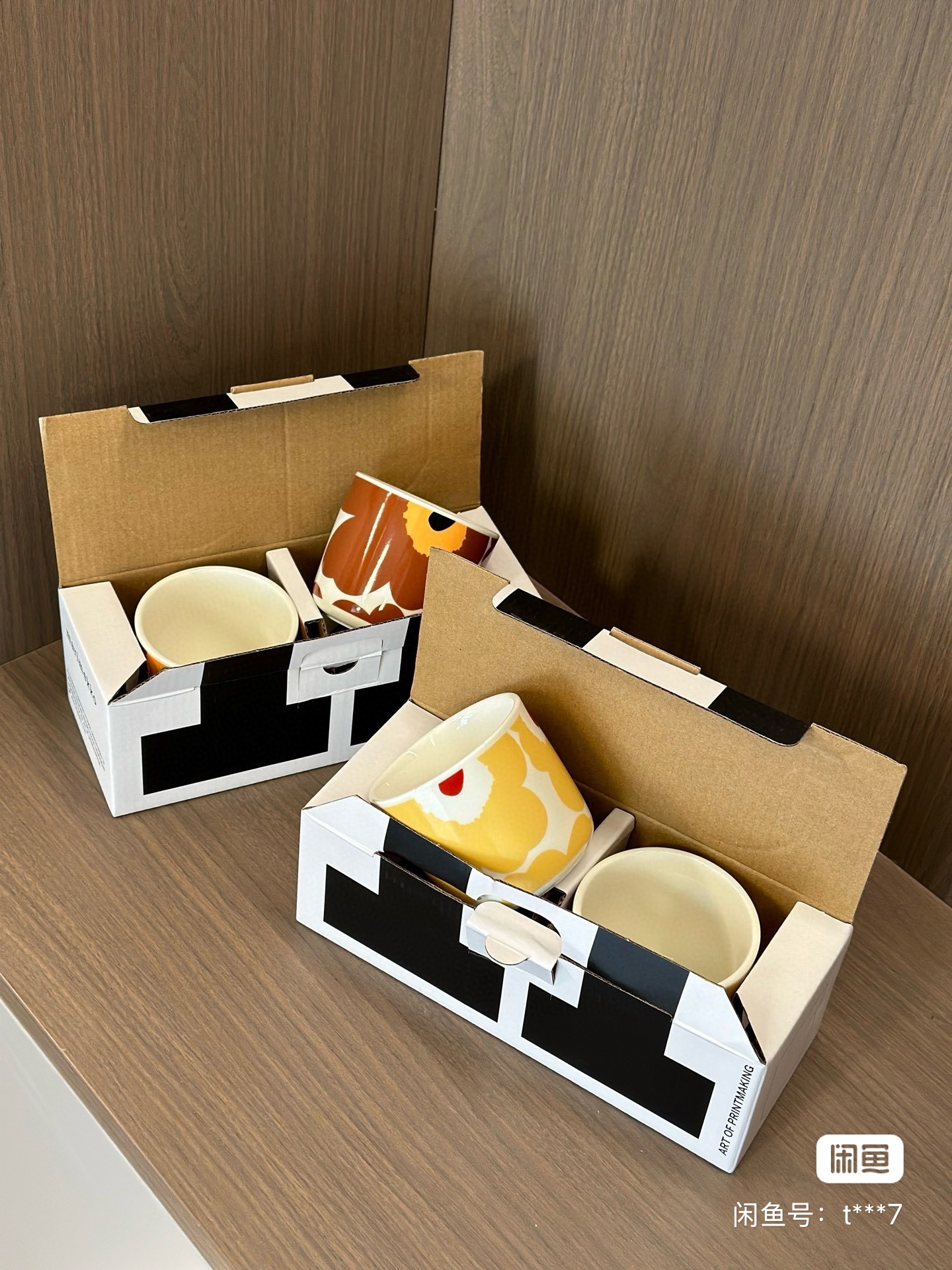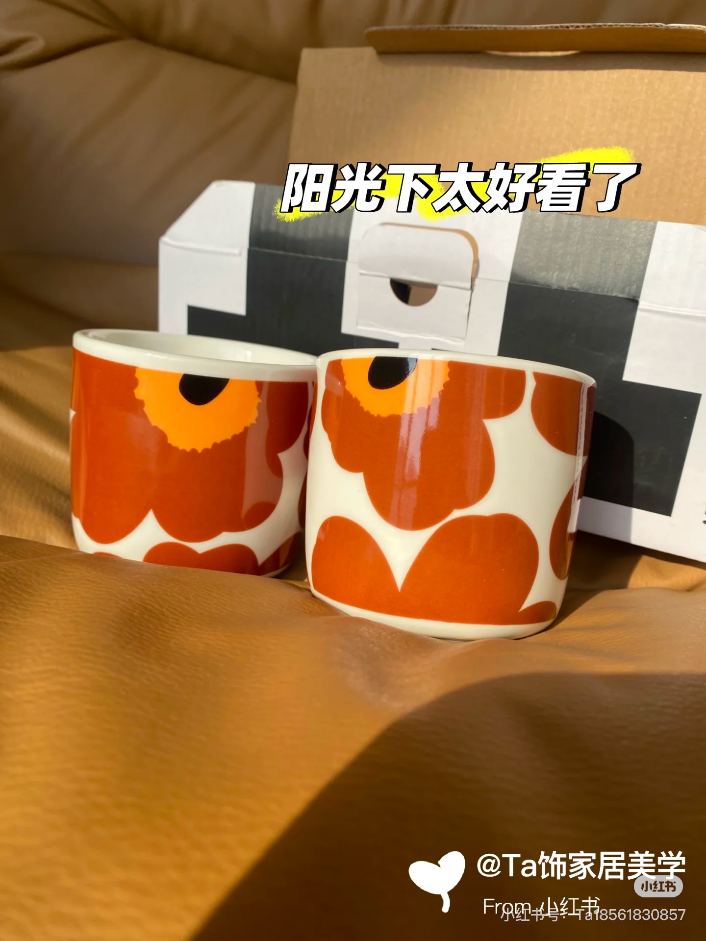 救命!ins 爆火的芬兰: 原装正品‼ 得物售价600➕一对。一盒俩个杯子 日本M&arimekko男女同款下午茶牛奶情侣咖啡杯高级陶瓷杯套装。