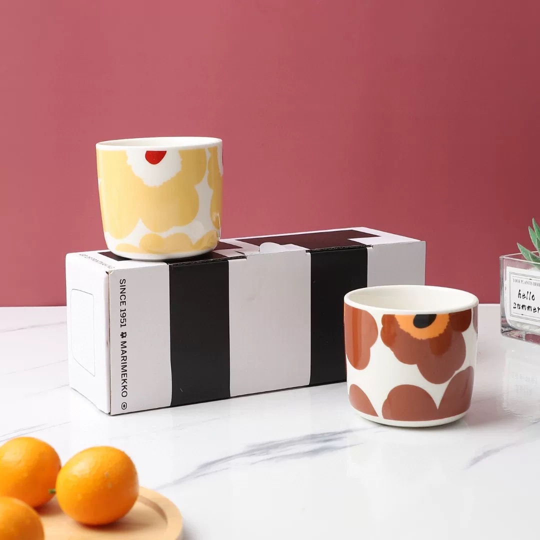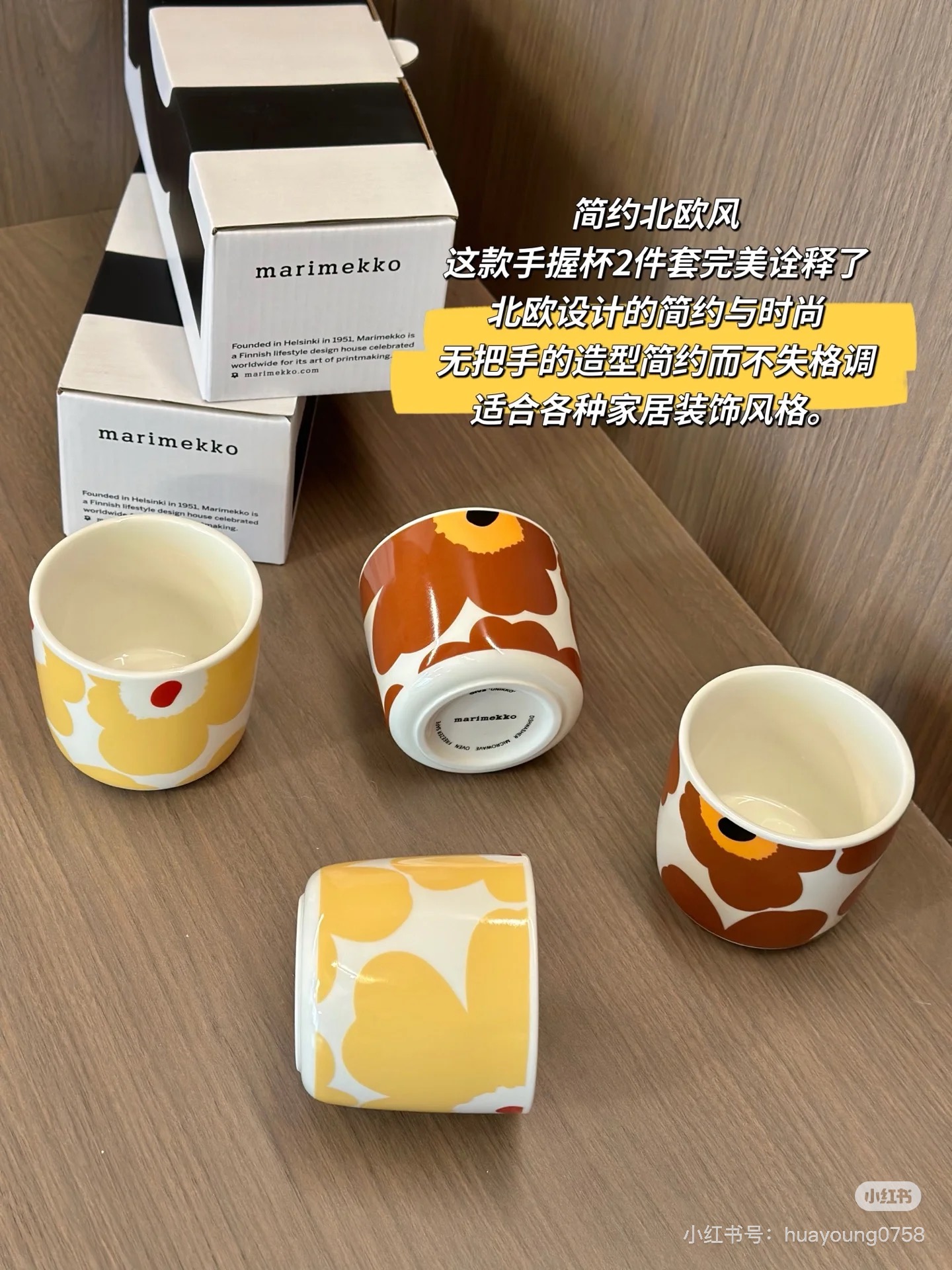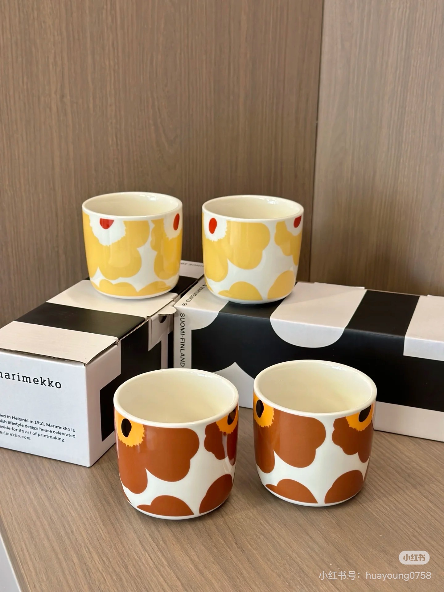 救命!ins 爆火的芬兰: 原装正品‼ 得物售价600➕一对。一盒俩个杯子 日本M&arimekko男女同款下午茶牛奶情侣咖啡杯高级陶瓷杯套装。