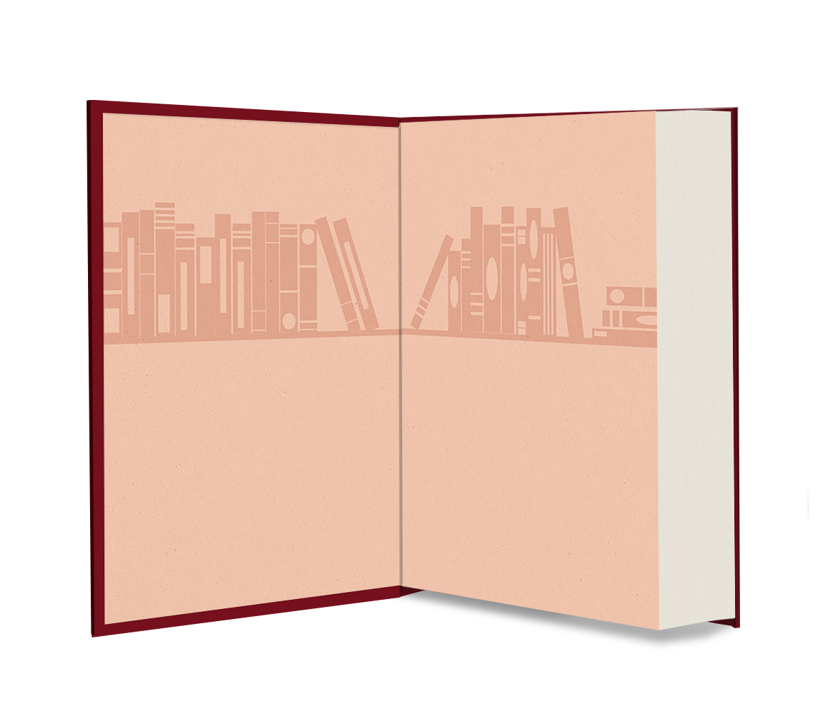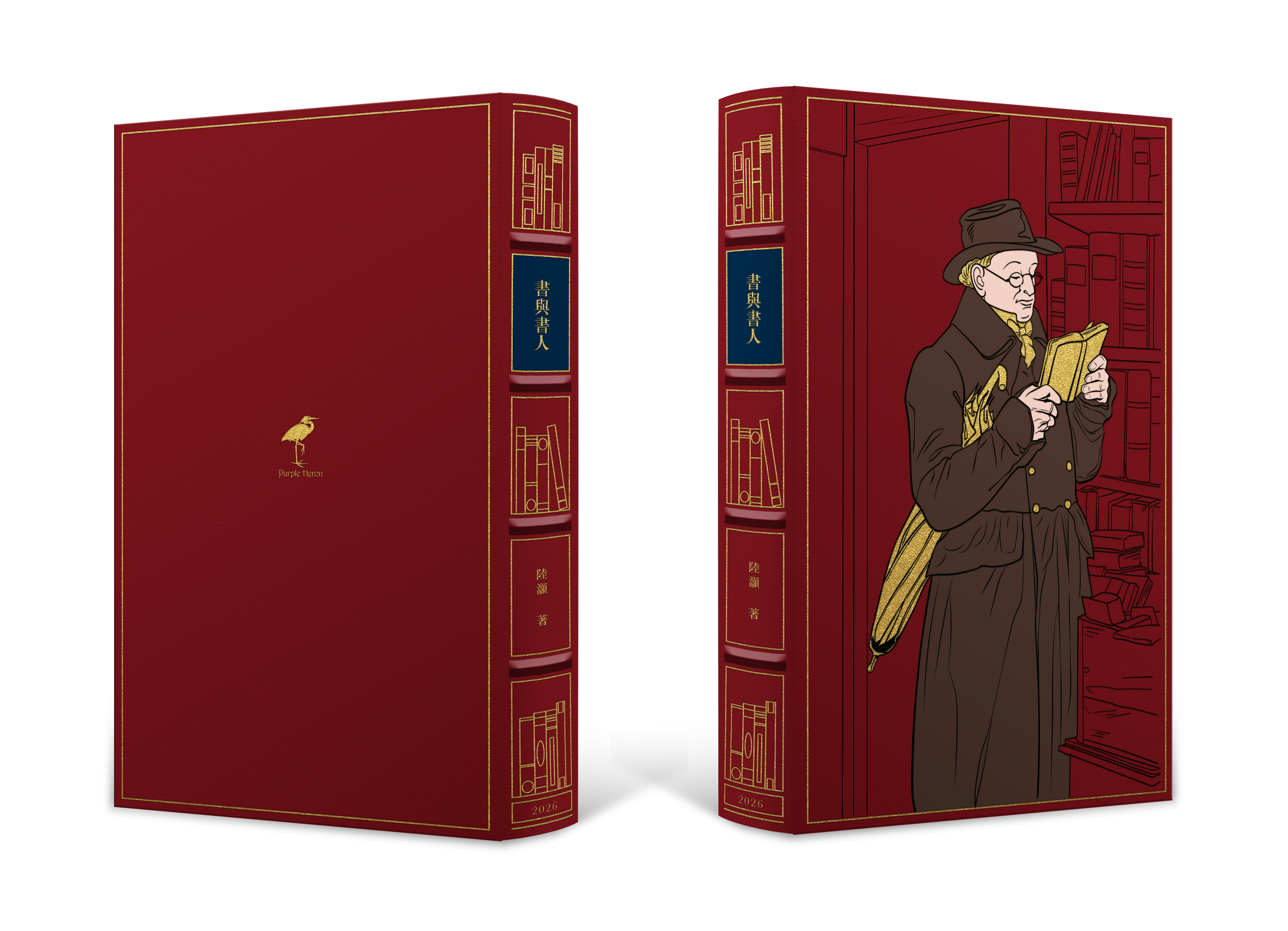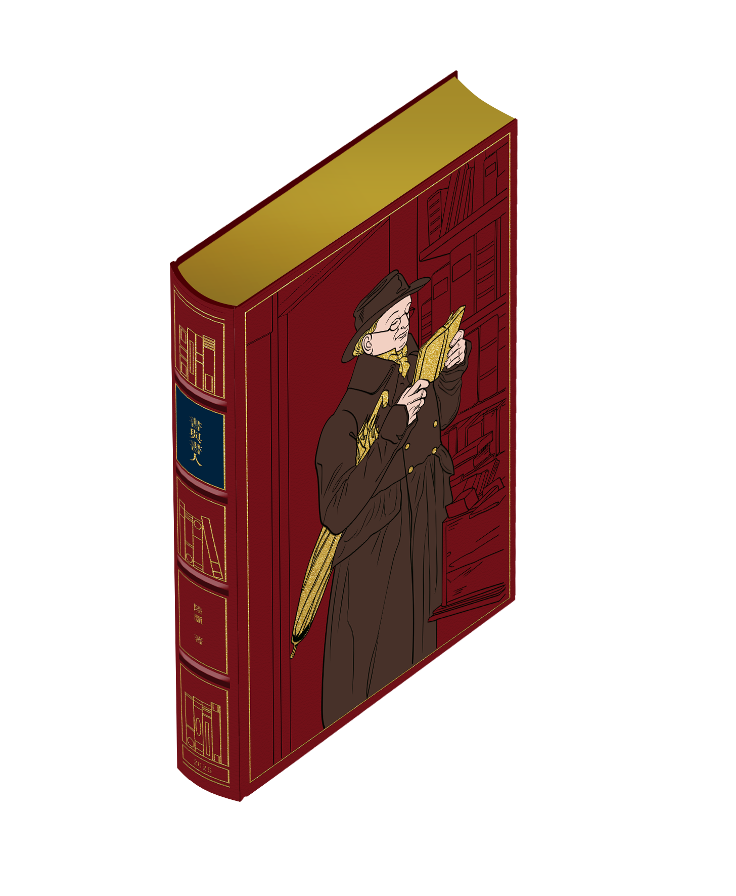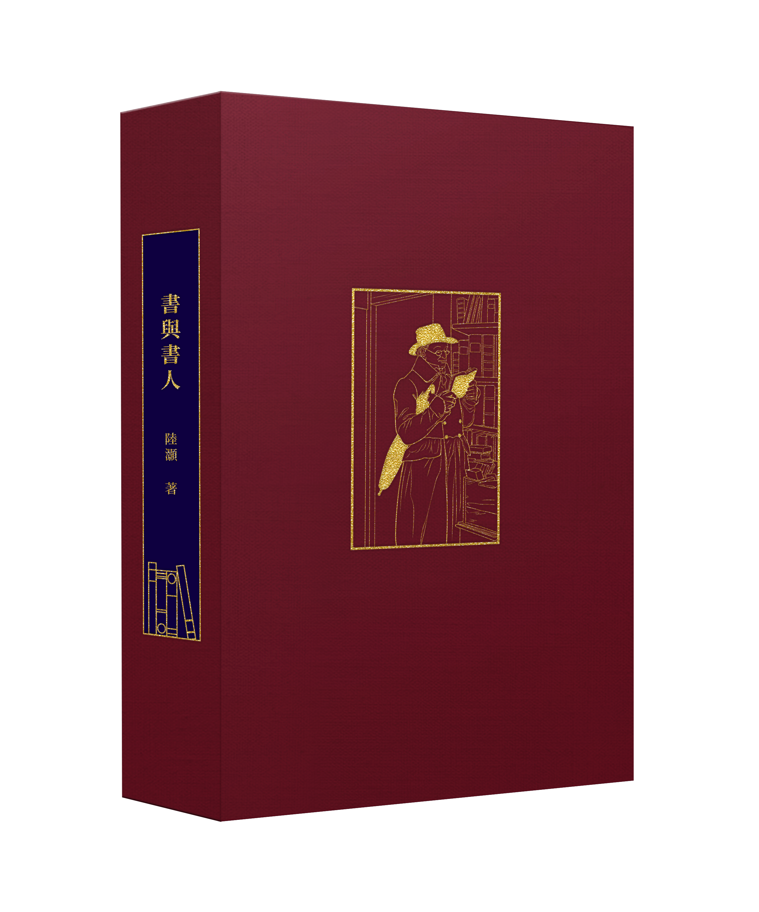 封面和书脊以多层烫印工艺呈现一位沉浸在阅读中的嗜书者形象。