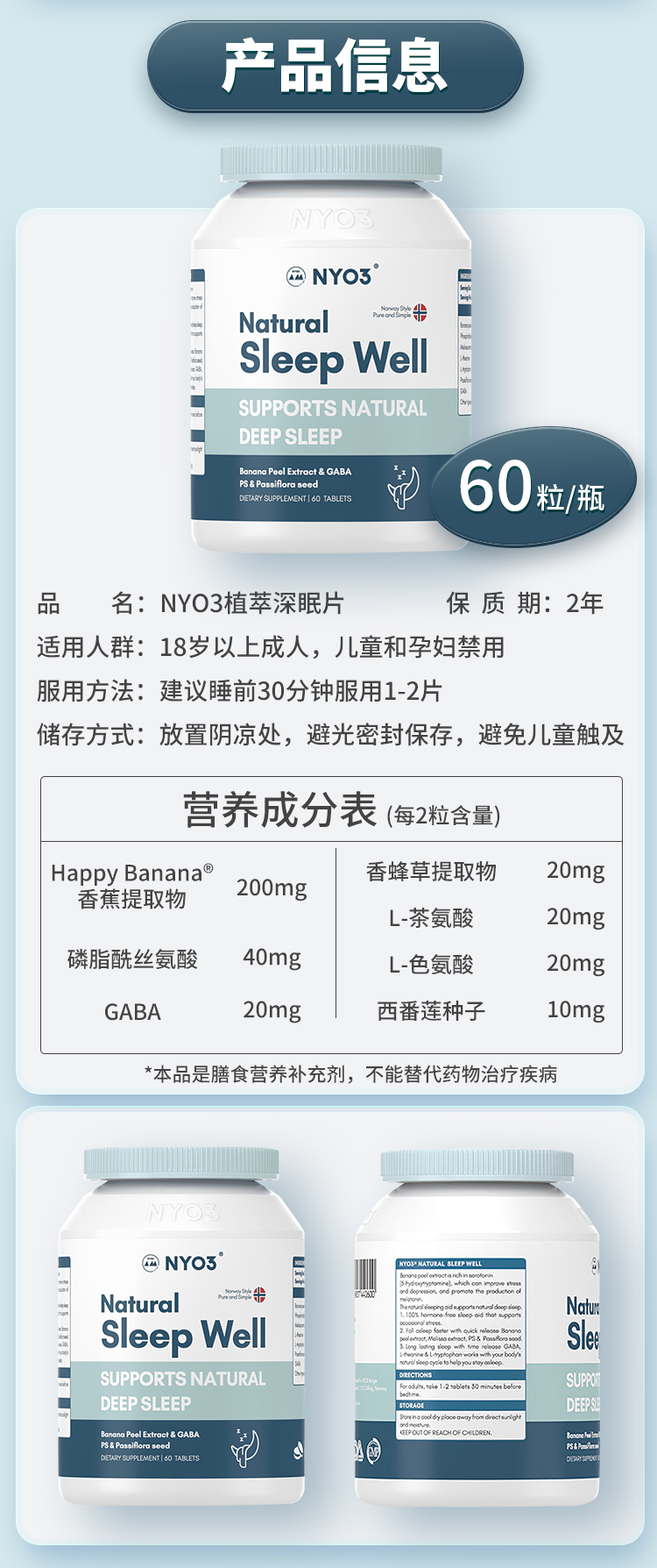 【 2瓶/218 NYO3】挪威 诺威佳 植萃深眠片睡眠片成人 60粒/瓶