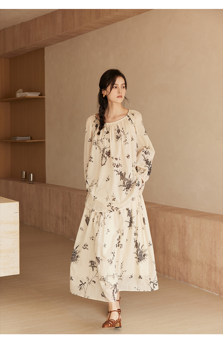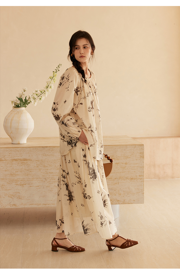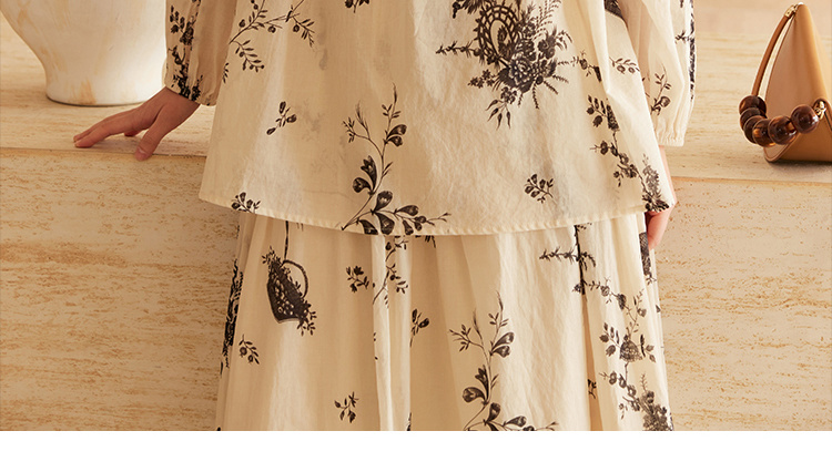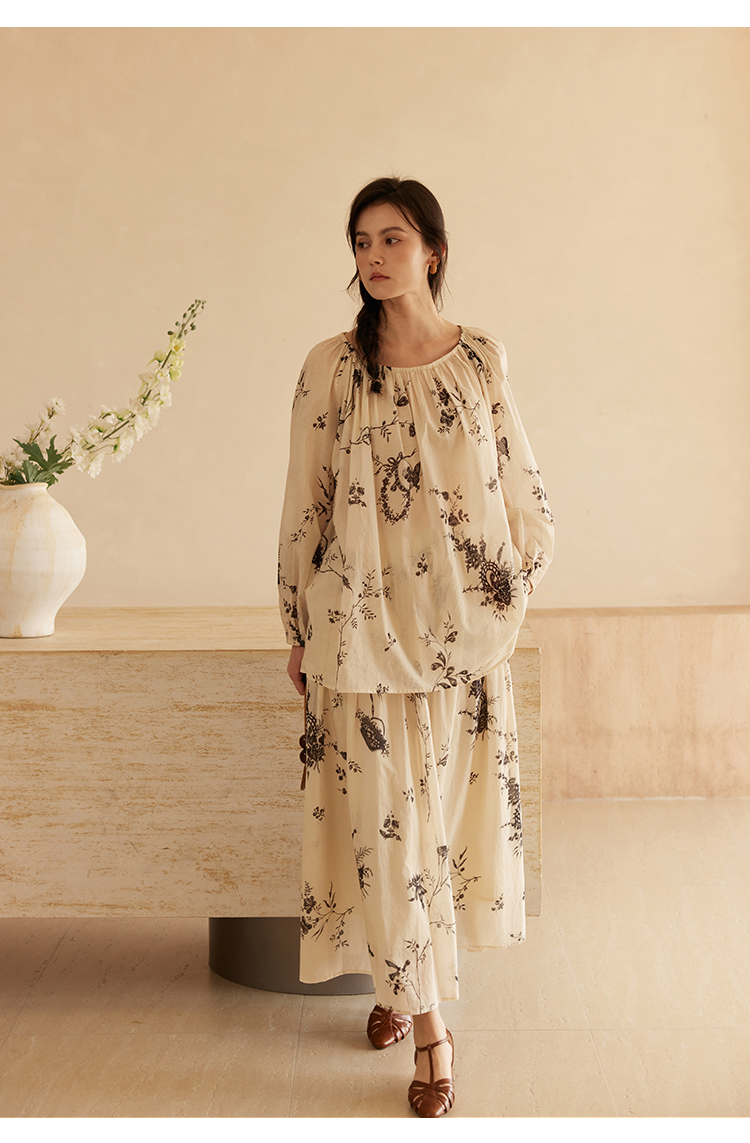HeyDress法式植物印花衬衫女春季复古宽松纯棉衬衣慵懒气质上衣