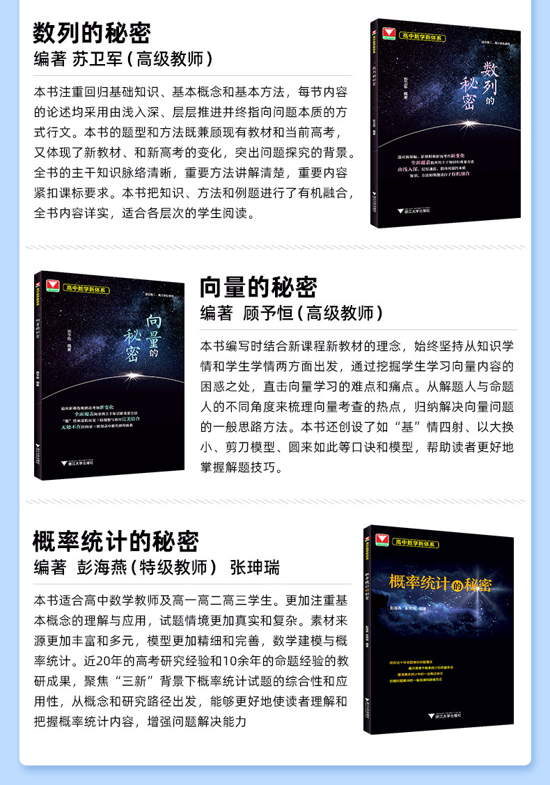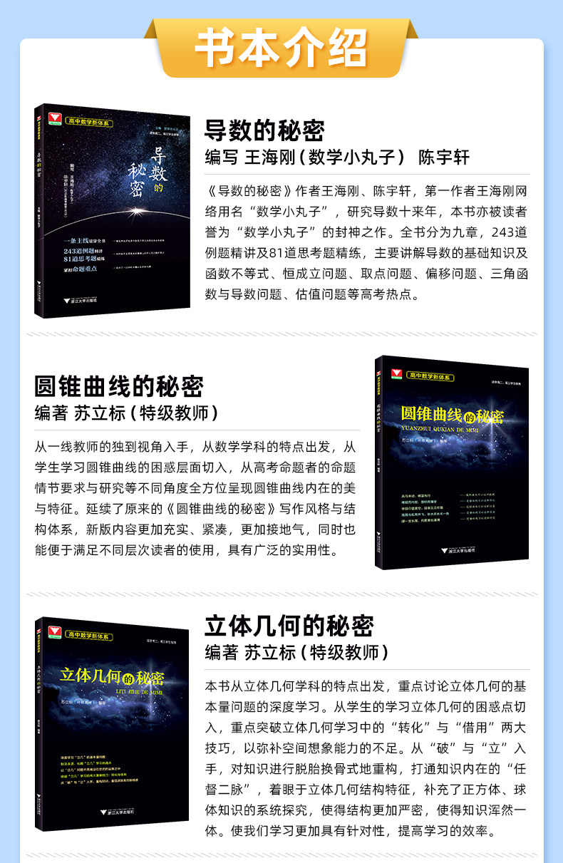 浙大优学高中数学导数的秘密高中数学新体系概率统计立体几何圆锥曲线数列向量的秘密高二三数学专题专项训练高考数学必刷题