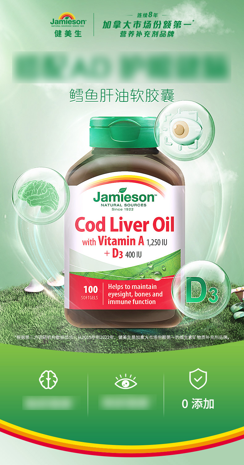 【品牌发货】健美生深海鳕鱼鱼肝油软胶囊100粒补充OMEGA3维生素AD健美生