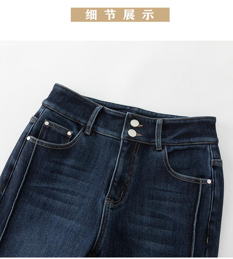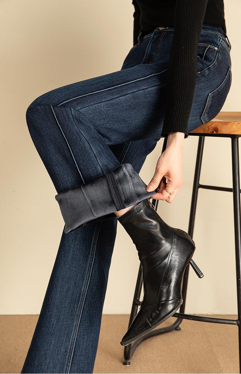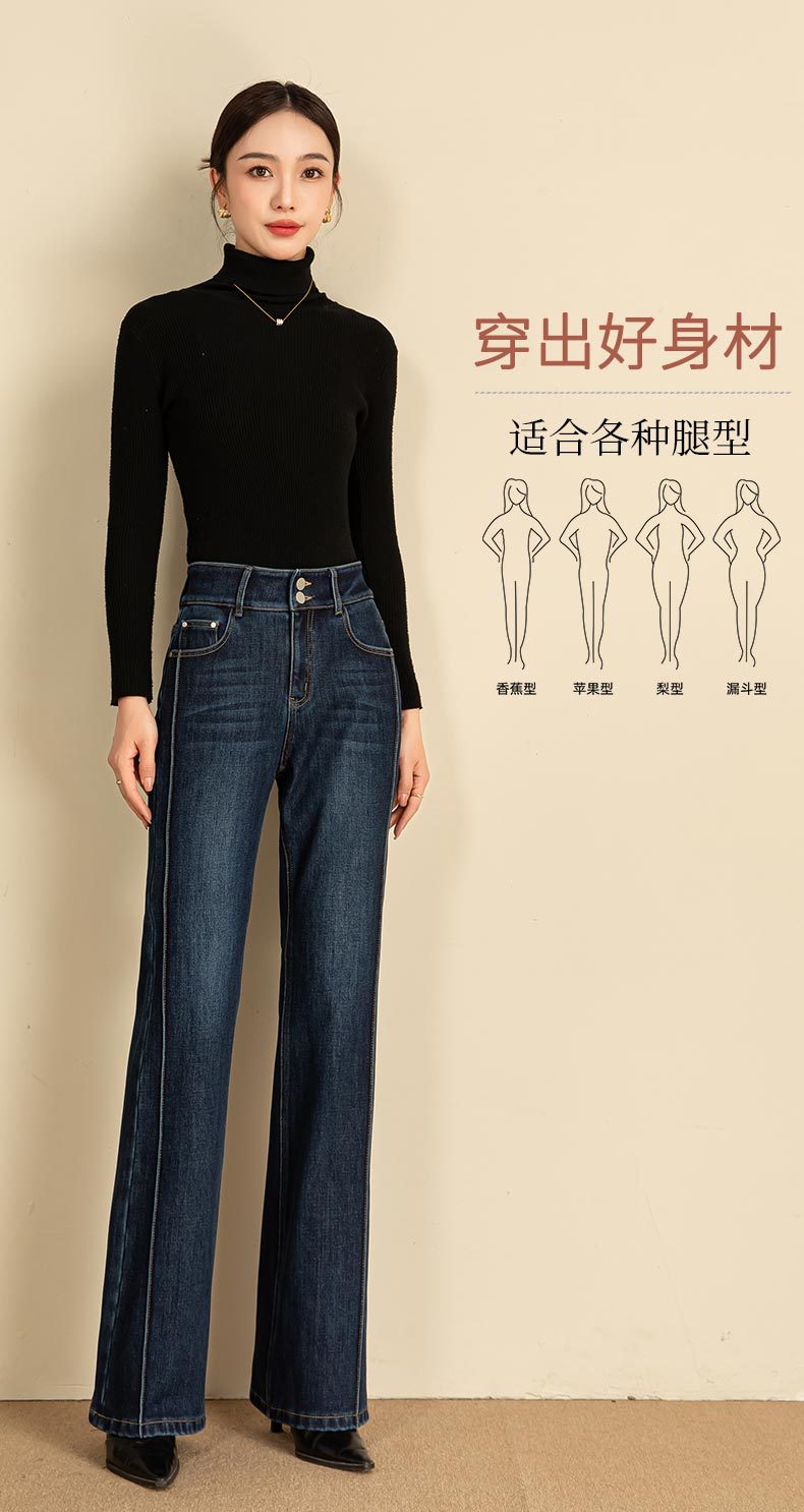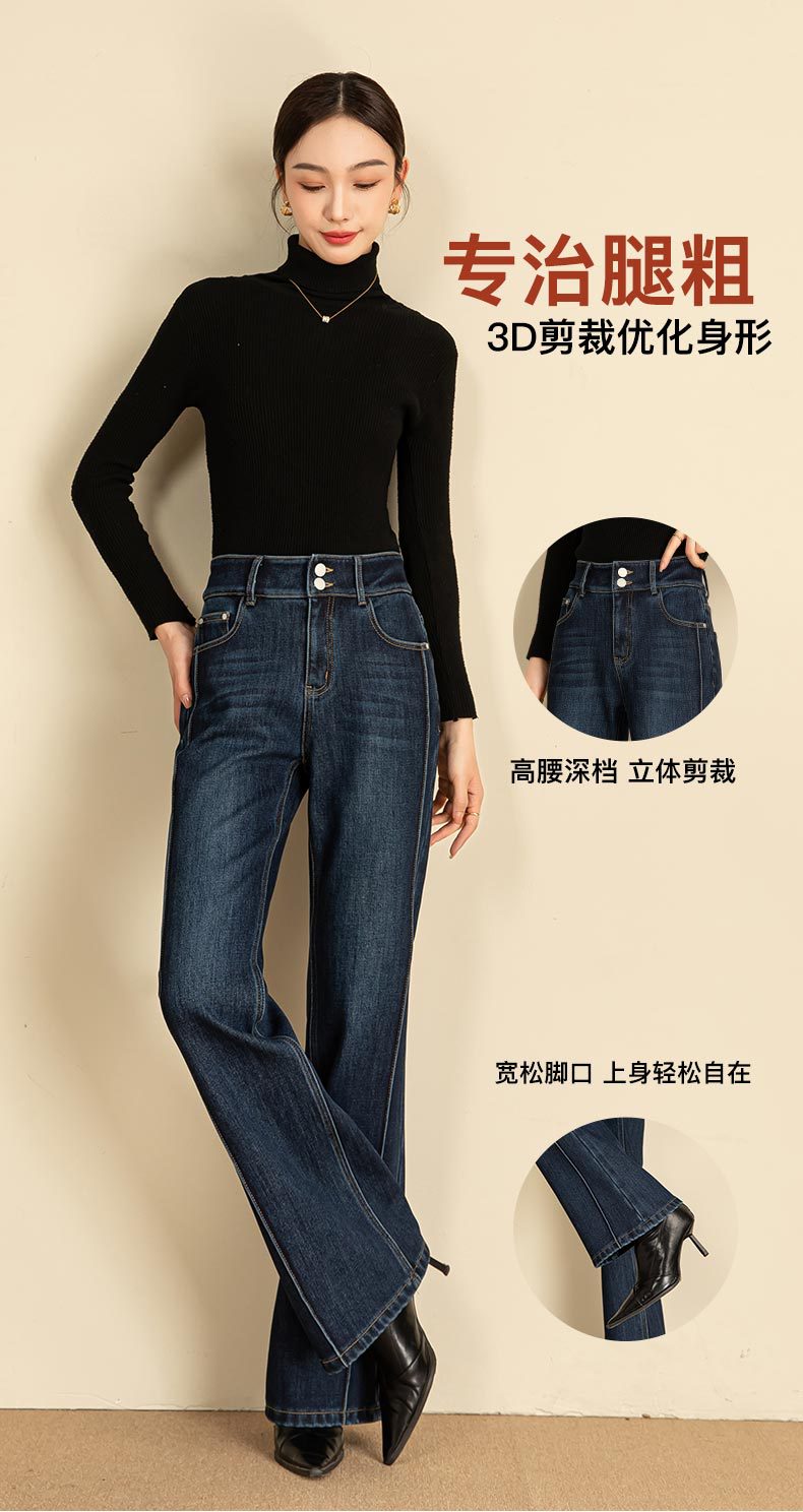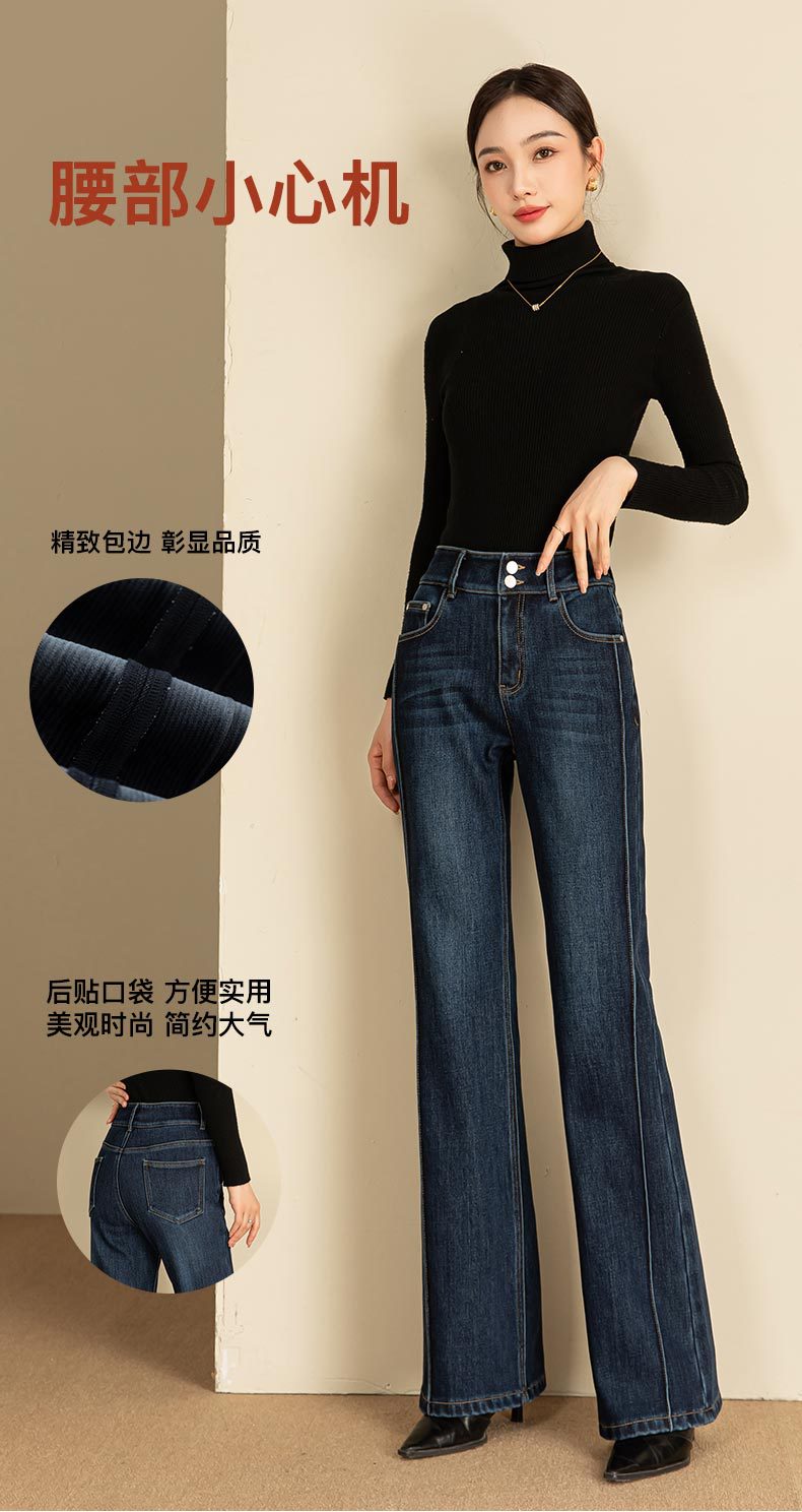 春节不打烊【舒适保暖❗️优雅随性】如果直筒加绒牛仔裤女冬季宽松新款显瘦弹力加长筒喇裤。jd