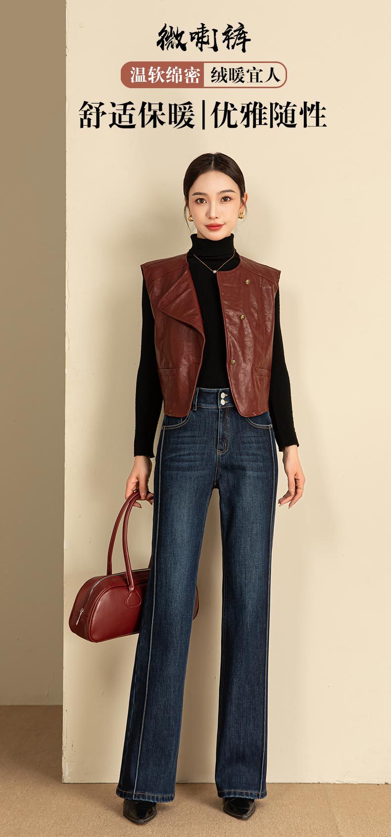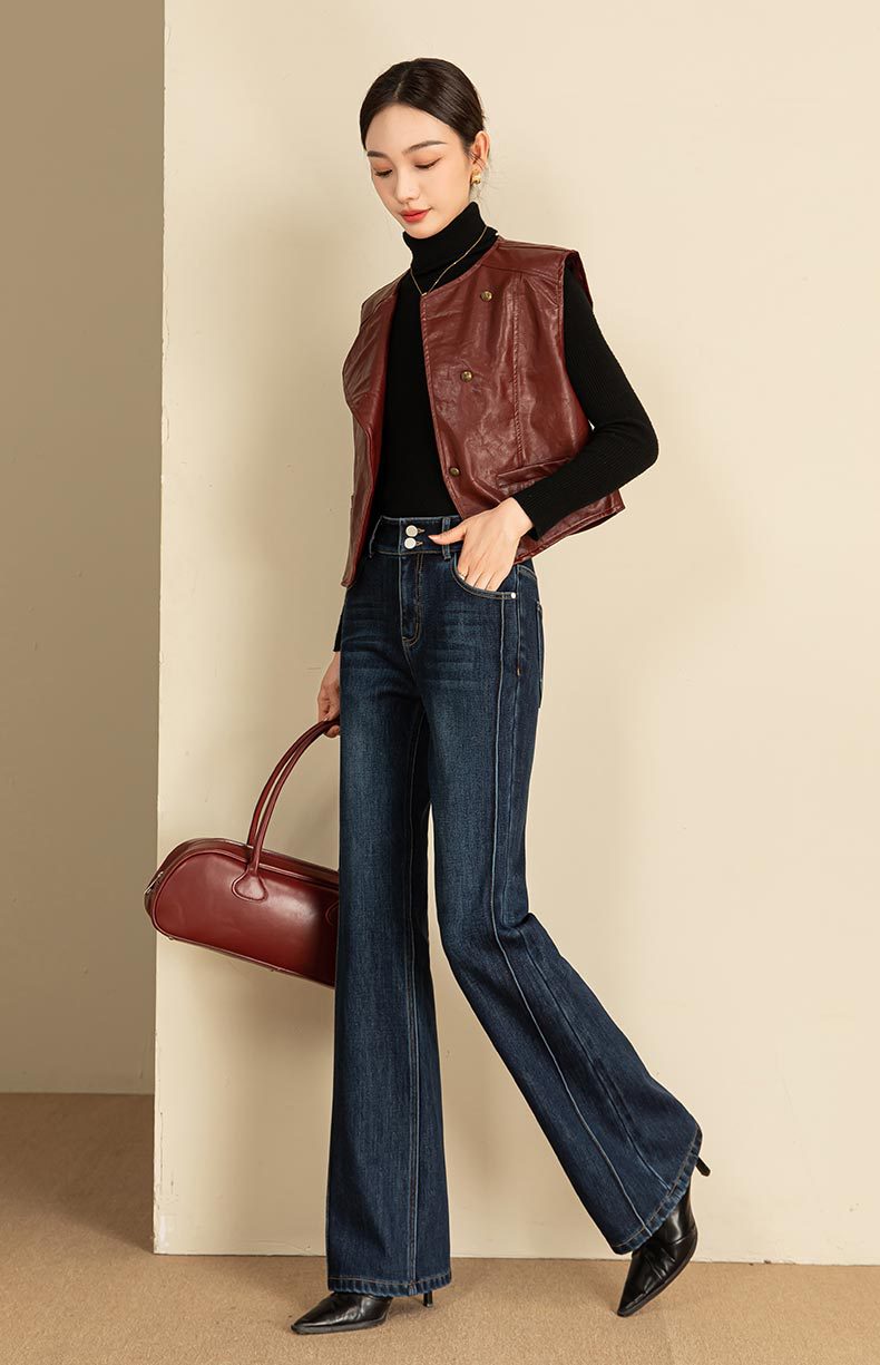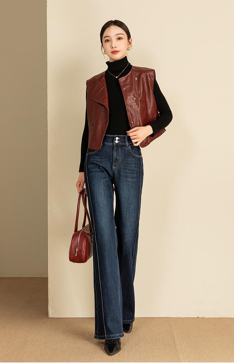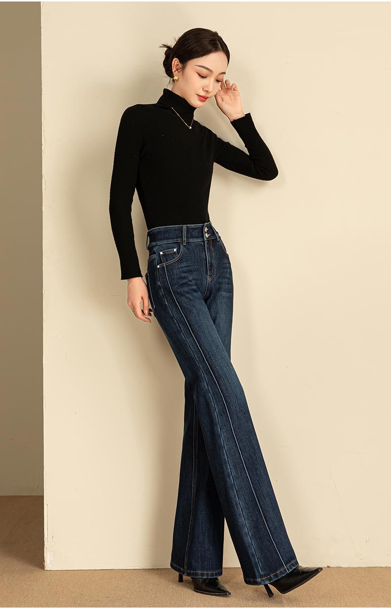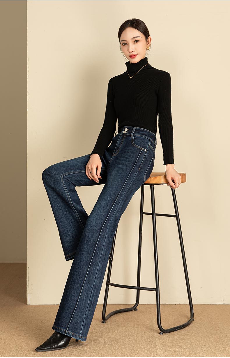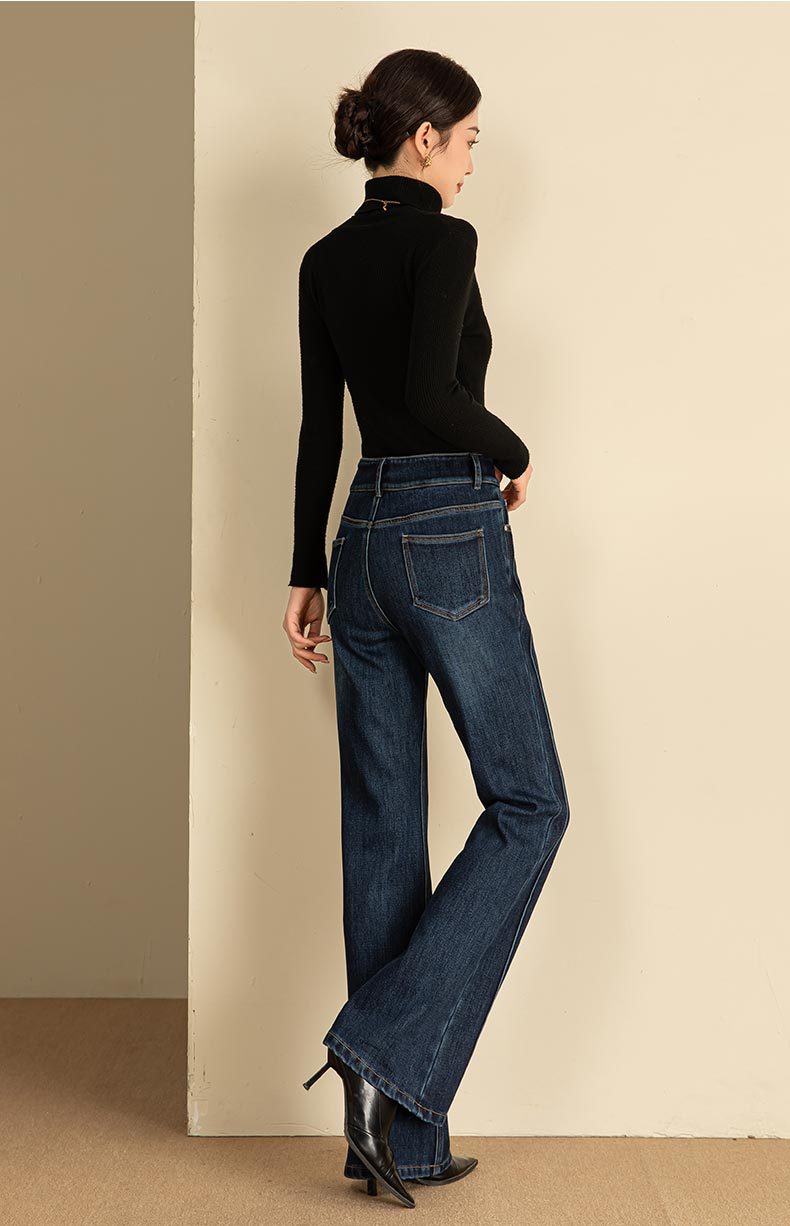 春节不打烊【舒适保暖❗️优雅随性】如果直筒加绒牛仔裤女冬季宽松新款显瘦弹力加长筒喇裤。jd