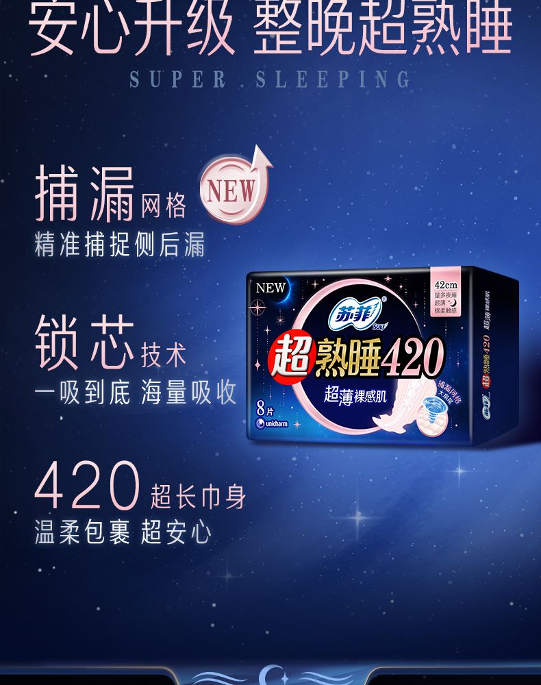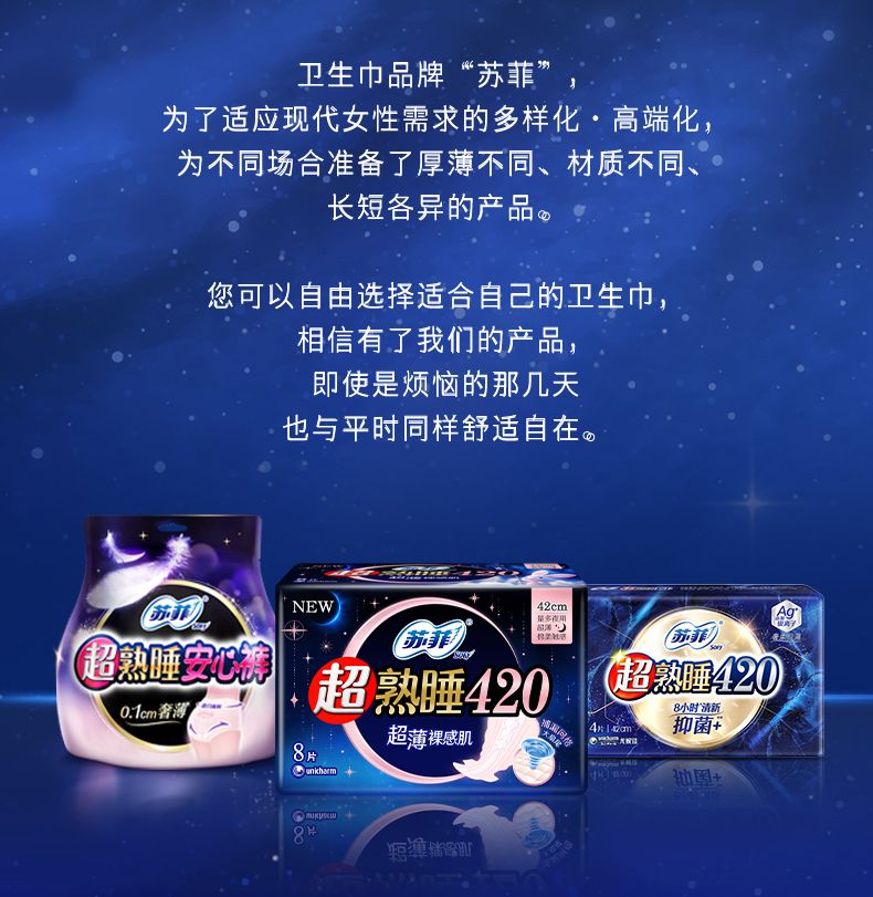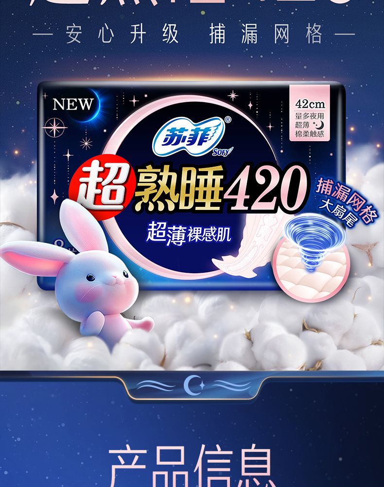 苏菲8片420mm随心翻棉质丝薄夜用卫生巾(新老包装随机)