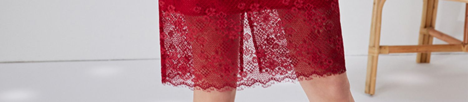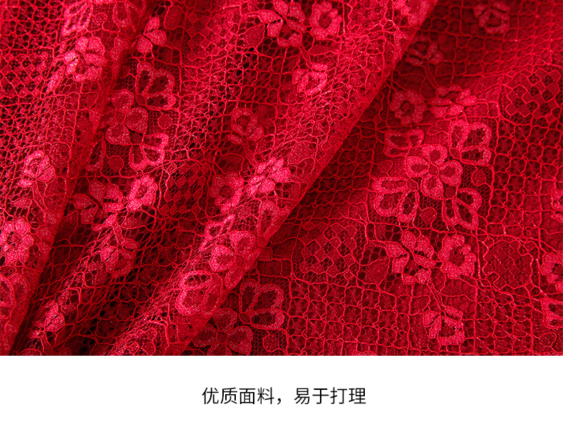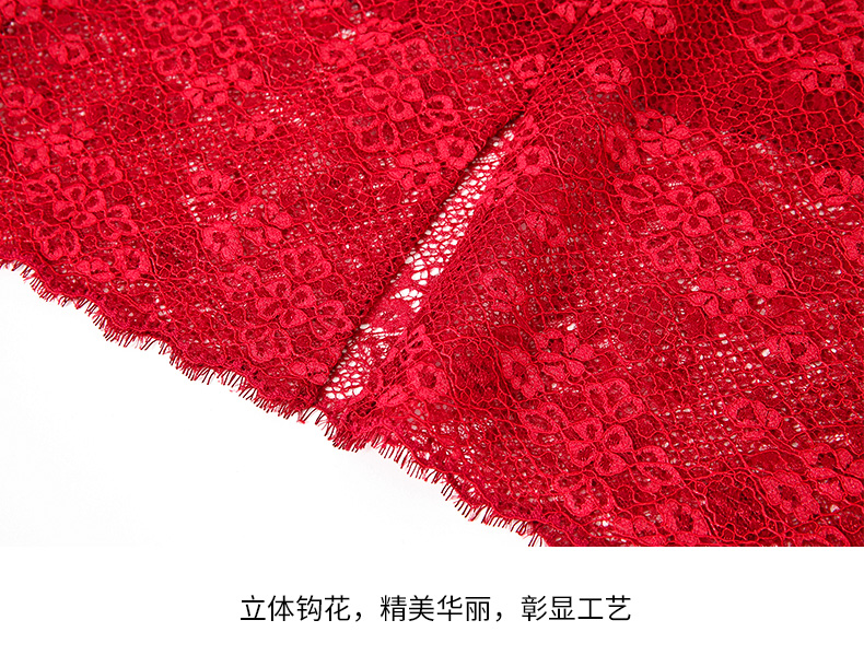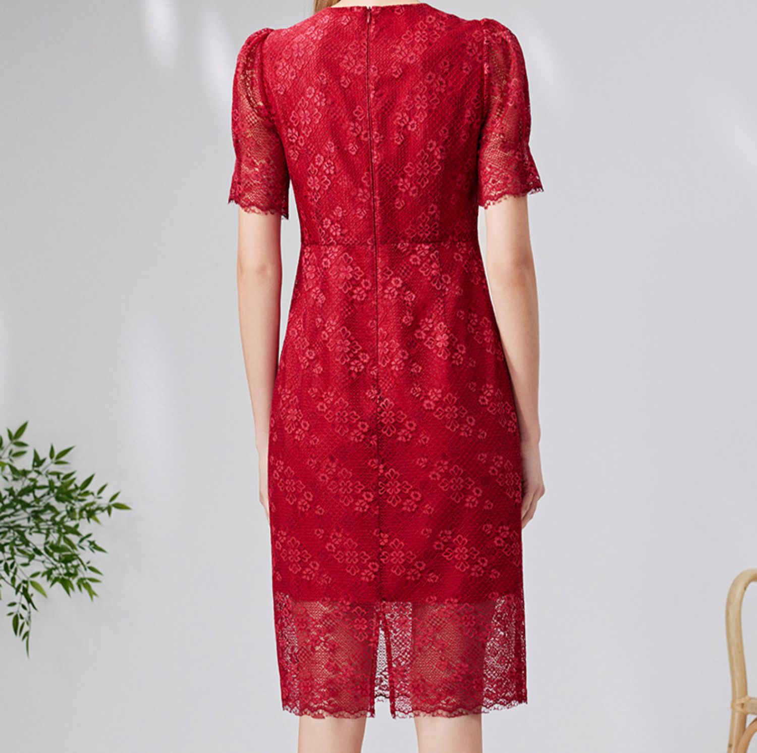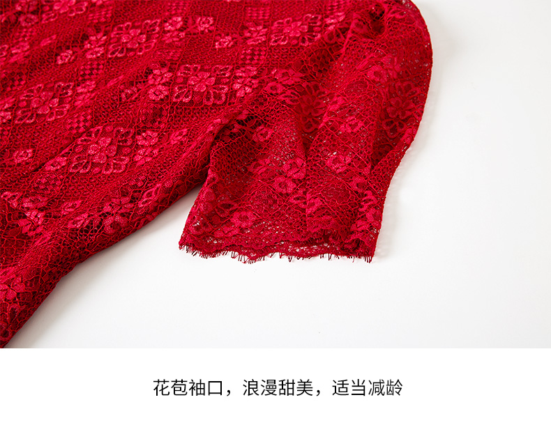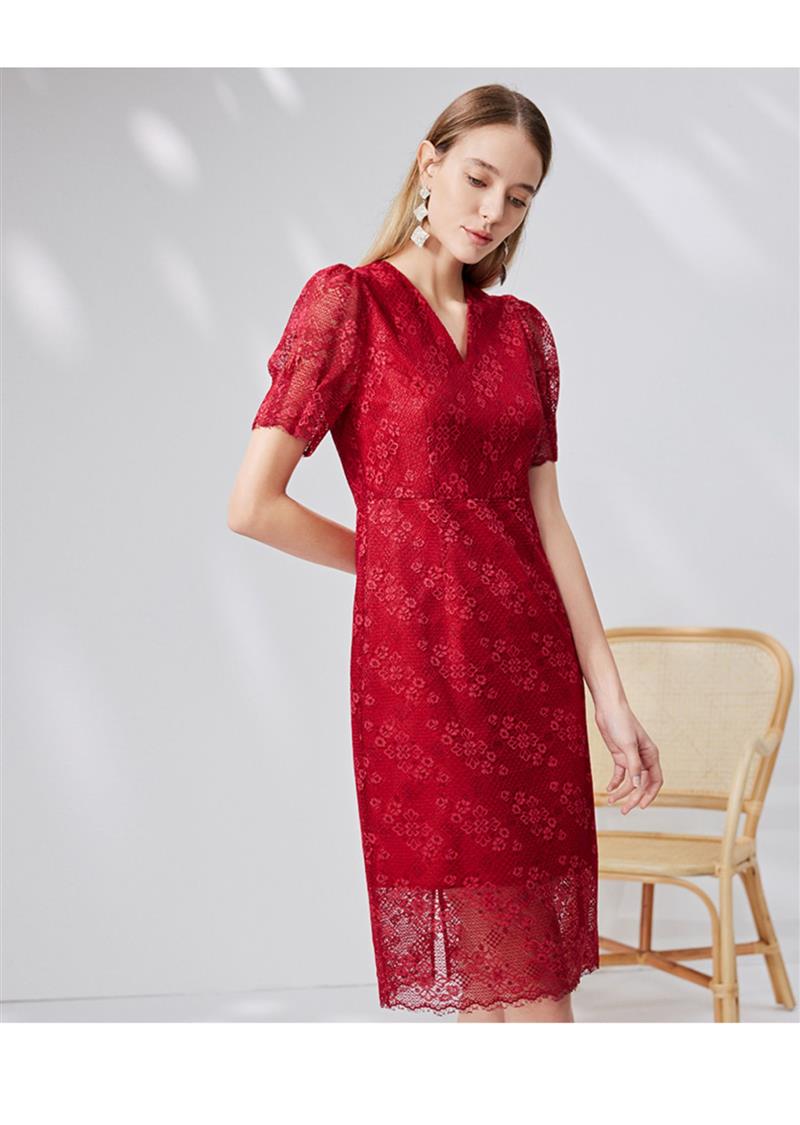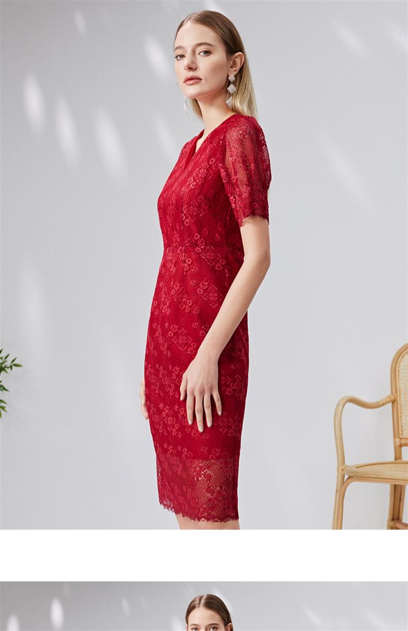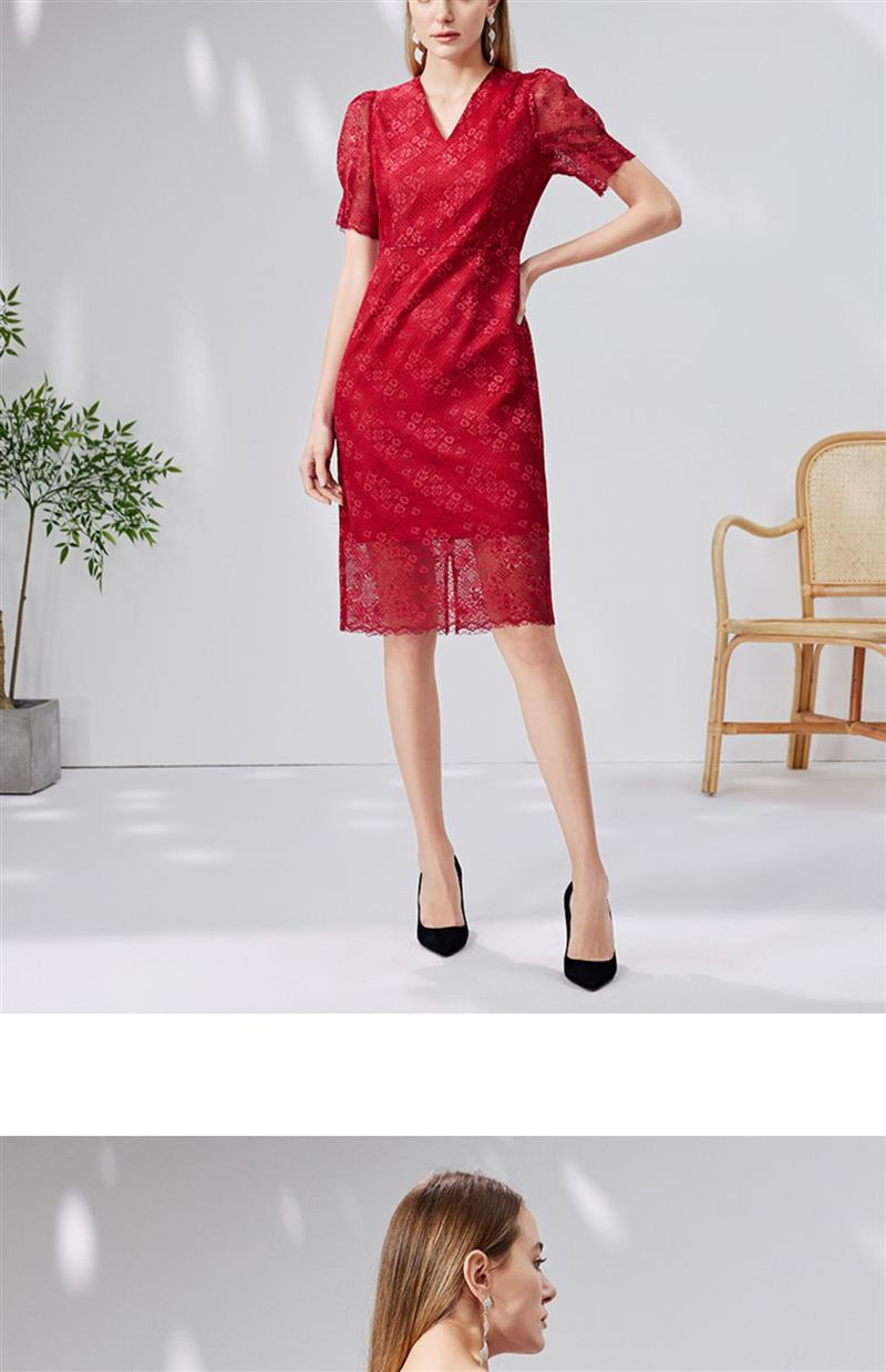 EITIE爱特爱气质V领红色蕾丝连衣裙法式优雅大方时尚显瘦夏新款B2307146