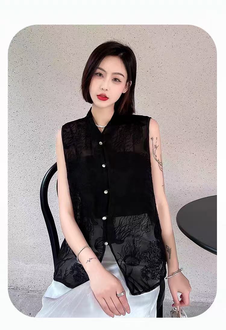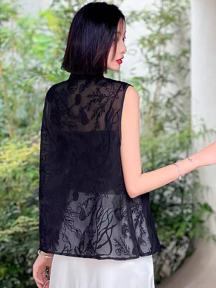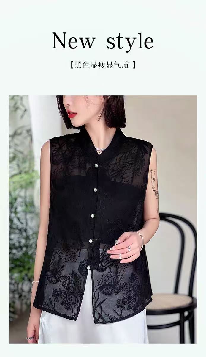 【MYBL】(手绘海底世界)8866中国精品刺绣设计感盘扣马甲-喜出