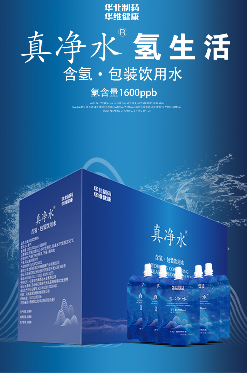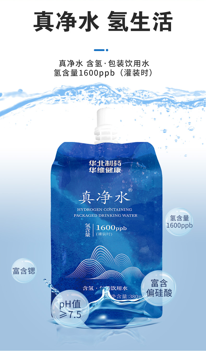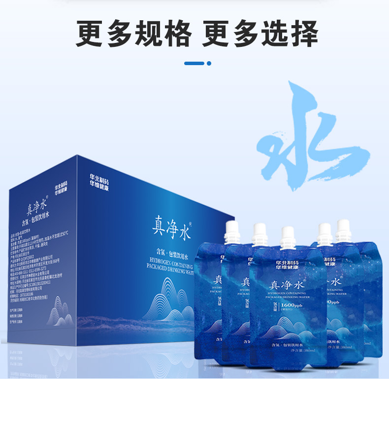真净水 含氢.包装饮用水 380ml/袋*15袋/箱