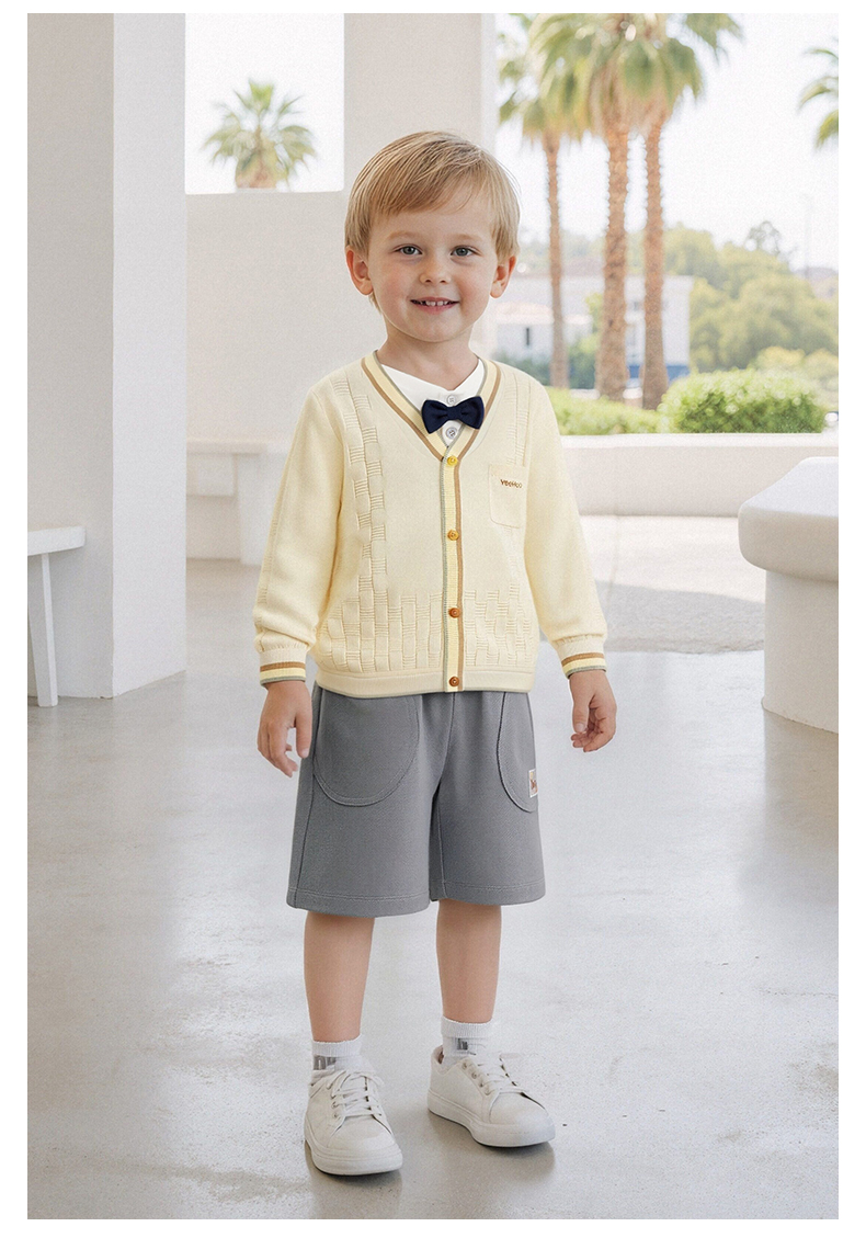 【商场同款】英氏儿童外套男童夏季短毛衫外套空调房休闲撞色开衫