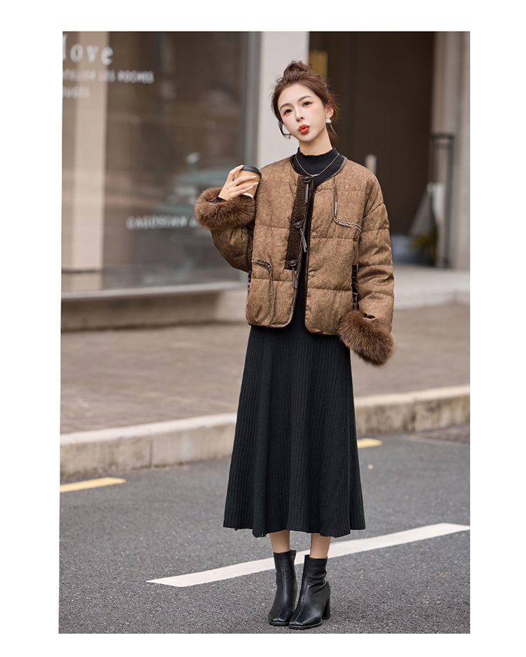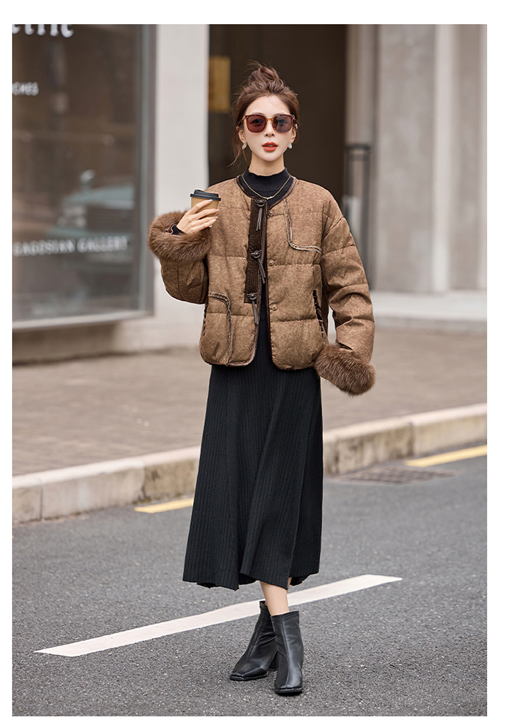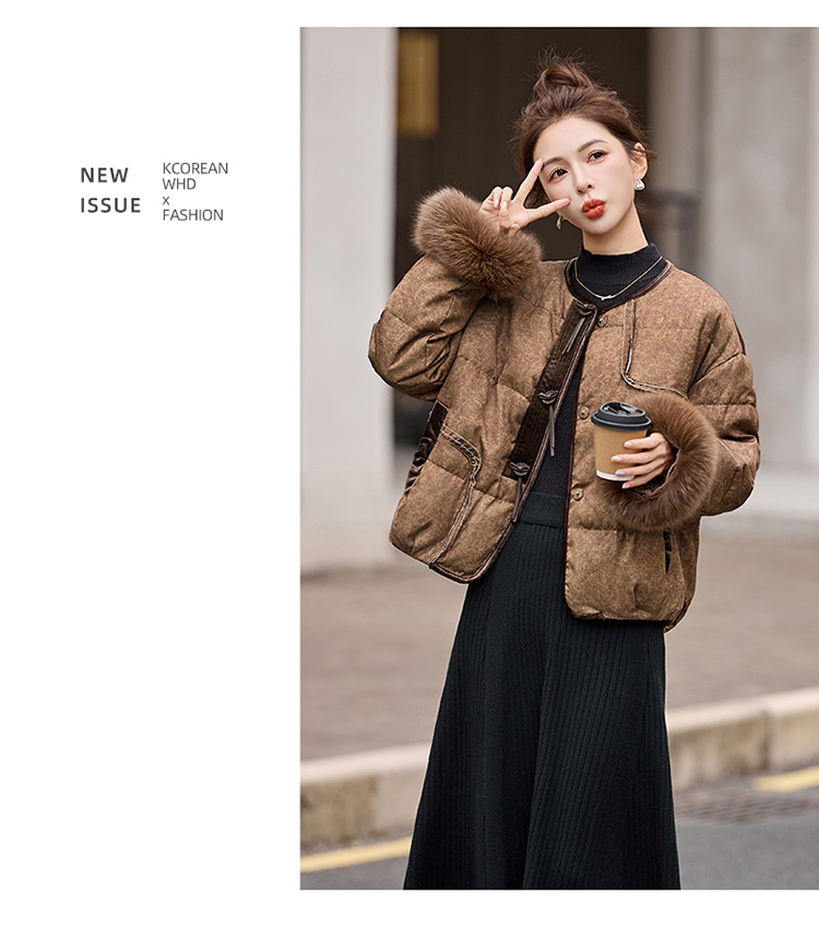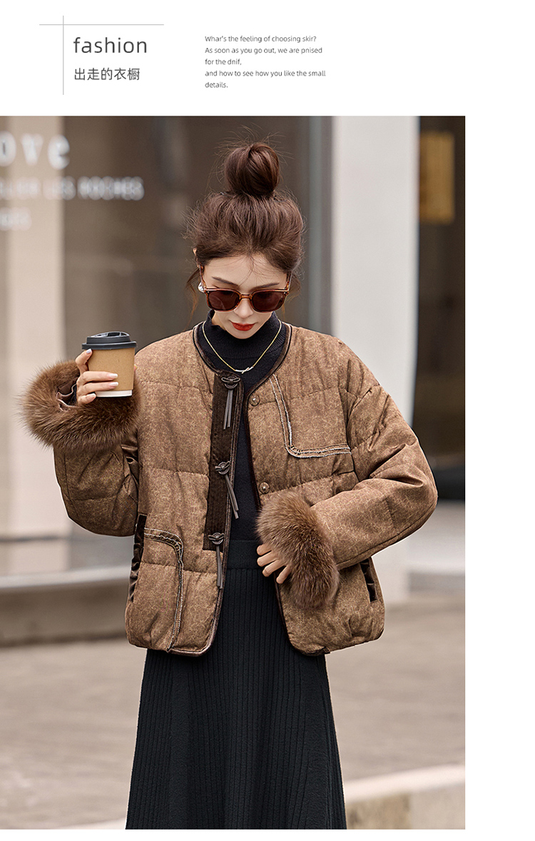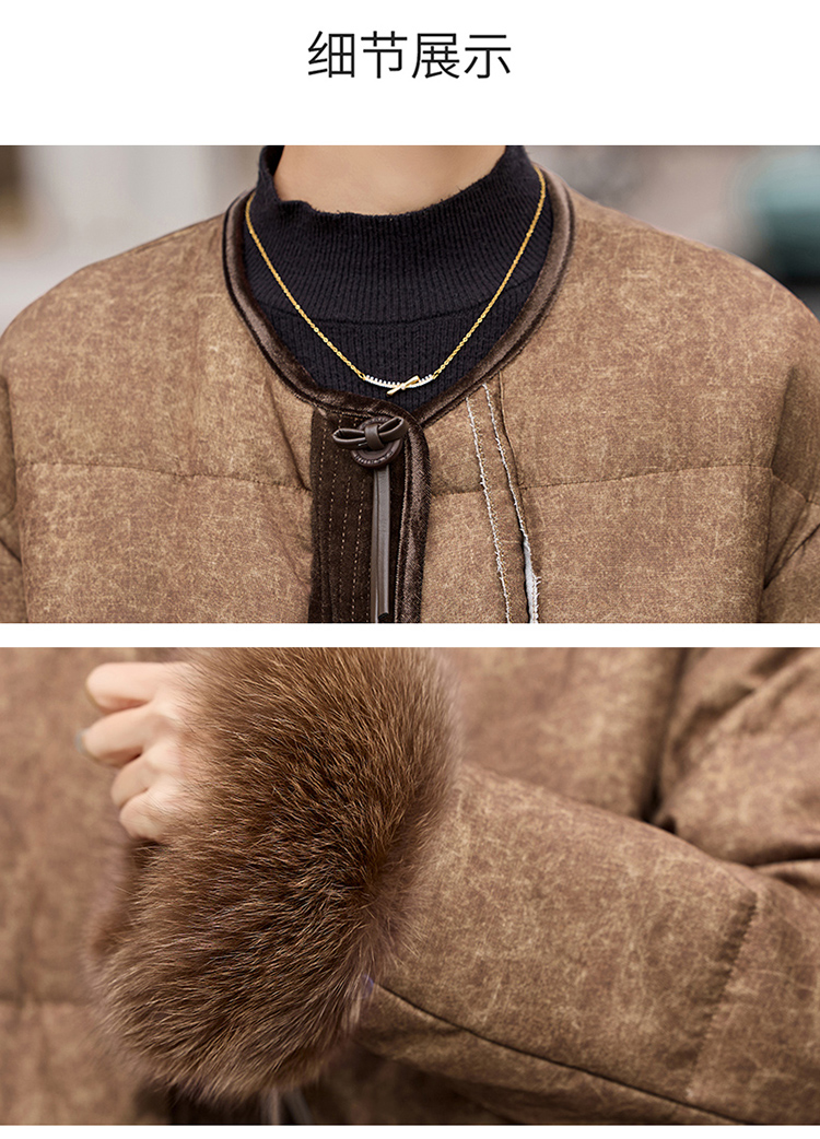 新中式可脱卸真狐狸毛袖口羽绒服,显瘦轻奢国风气质外套HR-AQHUI8139