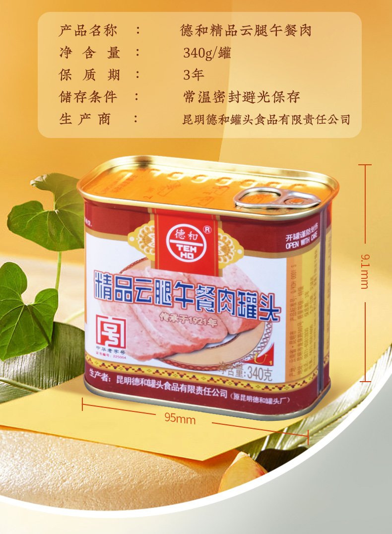【餐饮批发】德和精品云腿午餐肉罐头340g*24罐 1整箱 #午餐肉