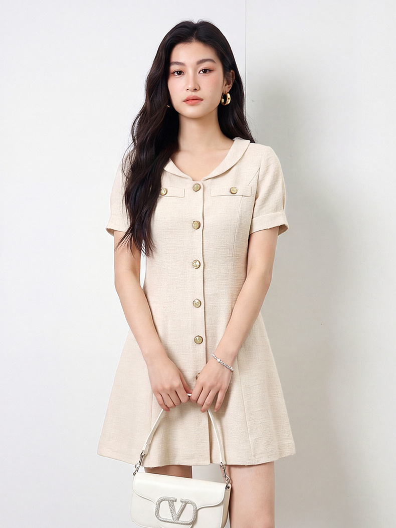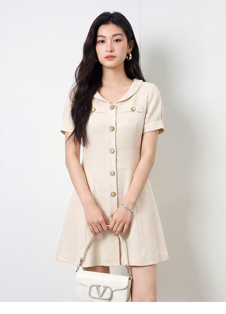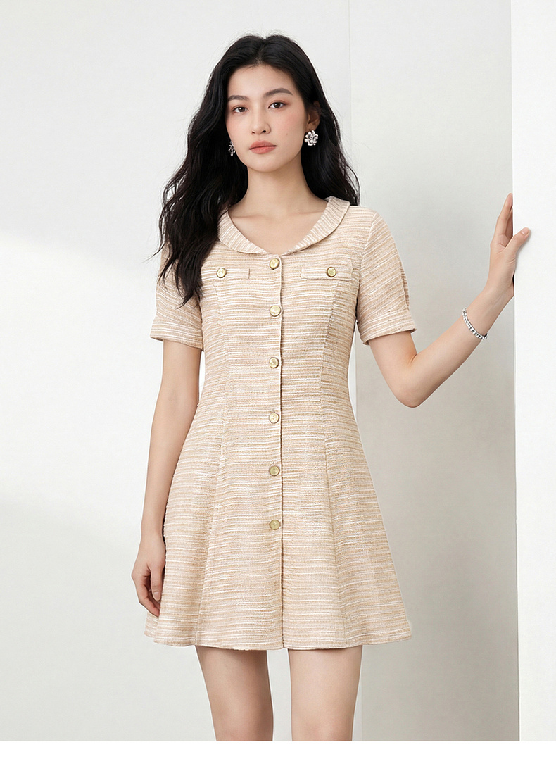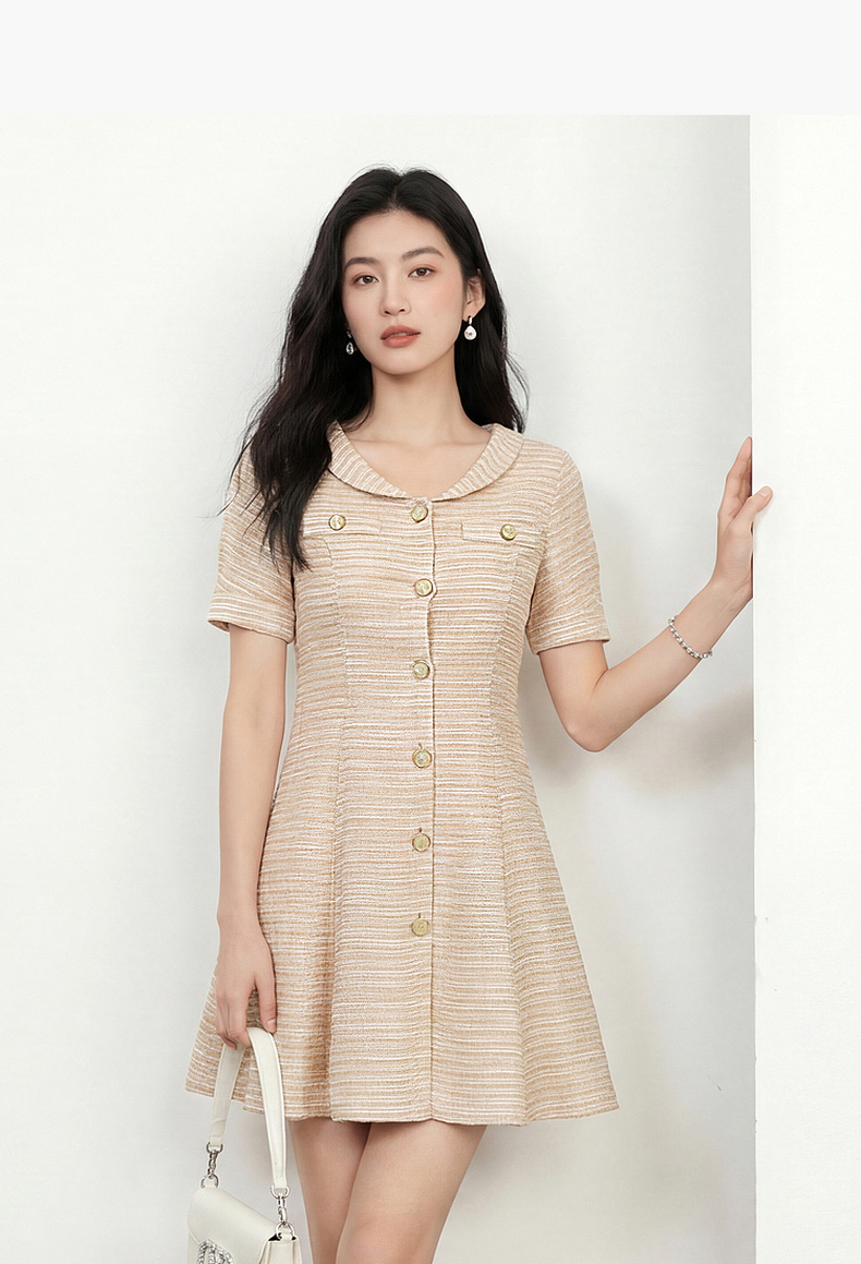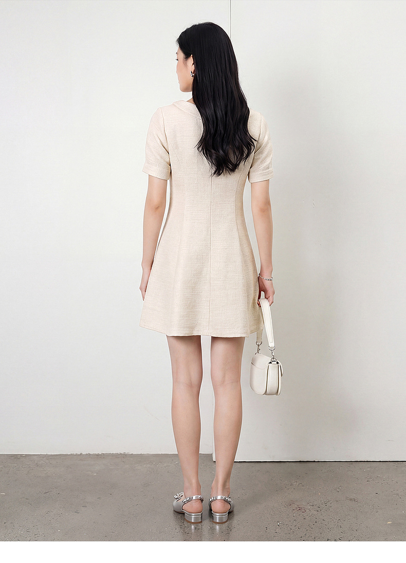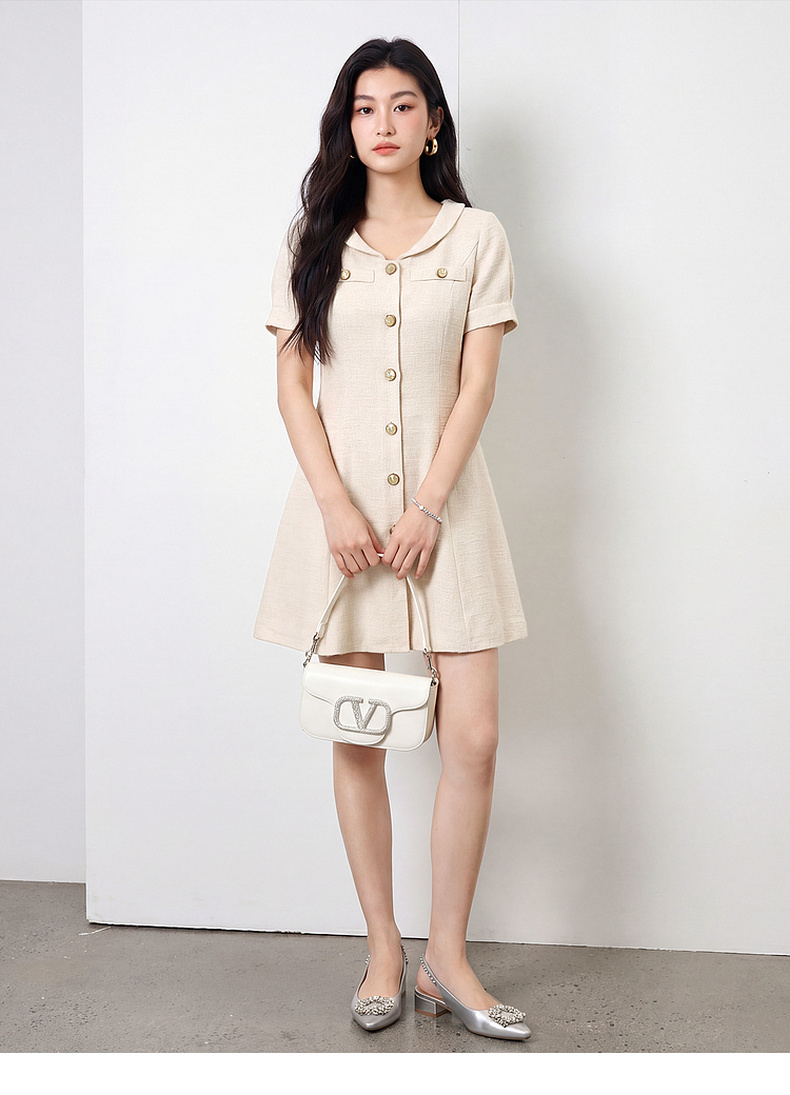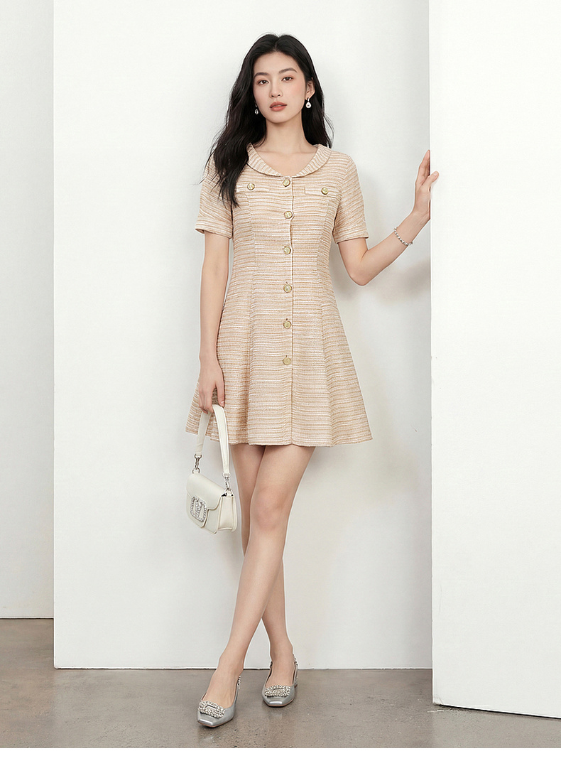 天猫同步【气质小香】拉夏贝尔/La Chapelle洋气显瘦~复古高级翻领连衣裙小个子短款约会裙