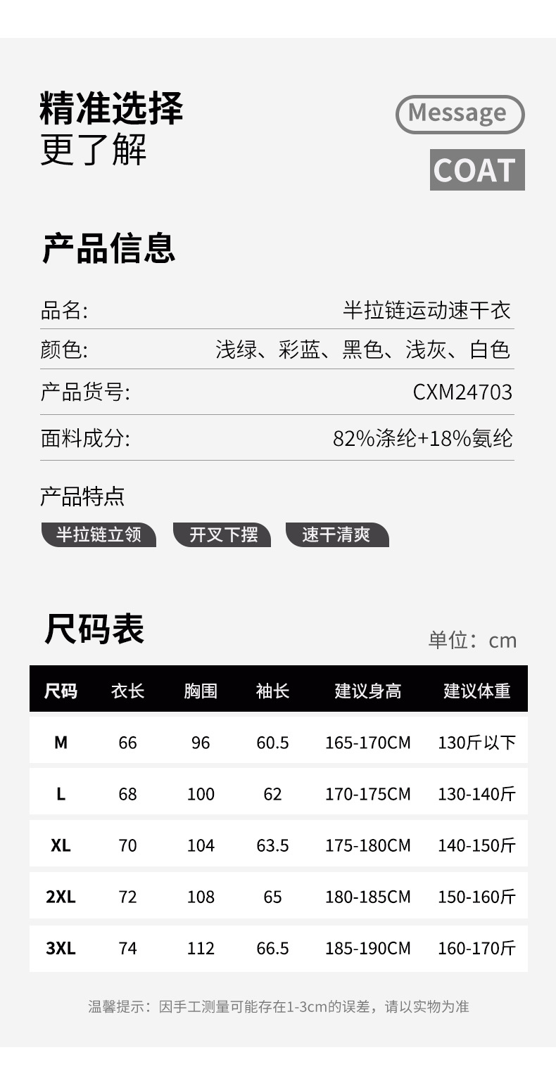 跃牌【PF系列】新款秋冬半拉链速干长袖速干衣男运动上衣T恤CXM24703