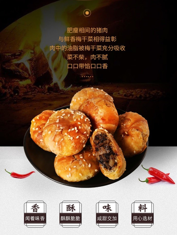 【糕酥良品】安徽黄山烧饼 网红美食 优选小麦粉 农家自种梅干菜 新鲜五花肉 成就酥脆爽口咸甜带辣的味道 茶点休闲小零食