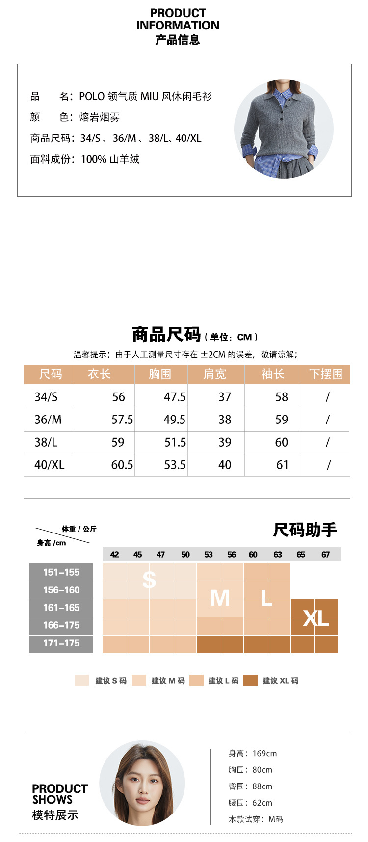 VogoPetite POLO领气质毛衫100%山羊绒 BP133F1605