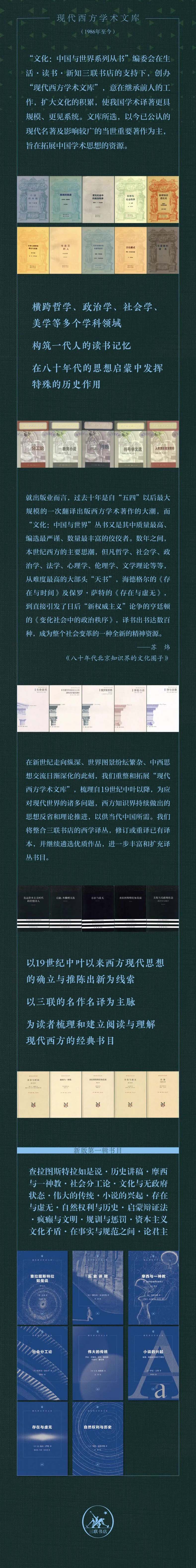 以 19 世纪中叶以来西方现代思想的确立与推陈出新为线索 以三联的名作名译为主脉 为读者梳理和建立阅读和理解现代西方的经典书目 预计三辑 50 种