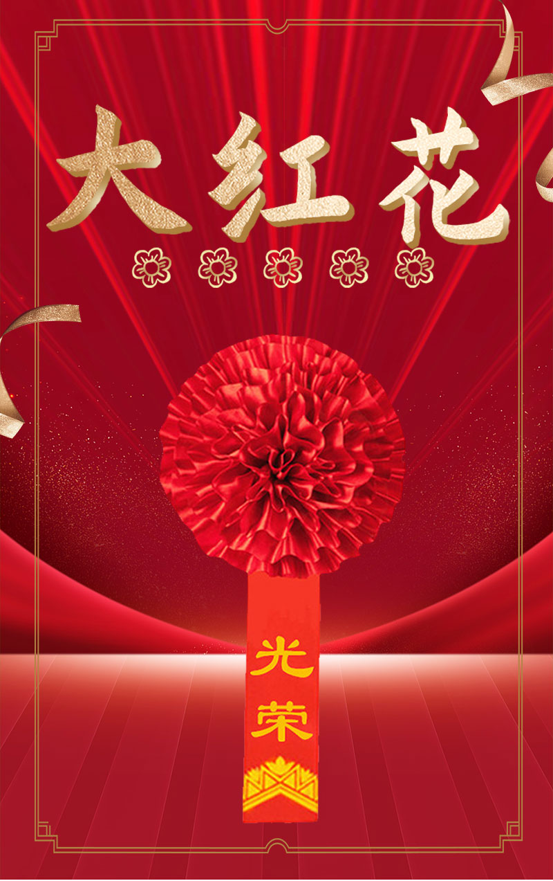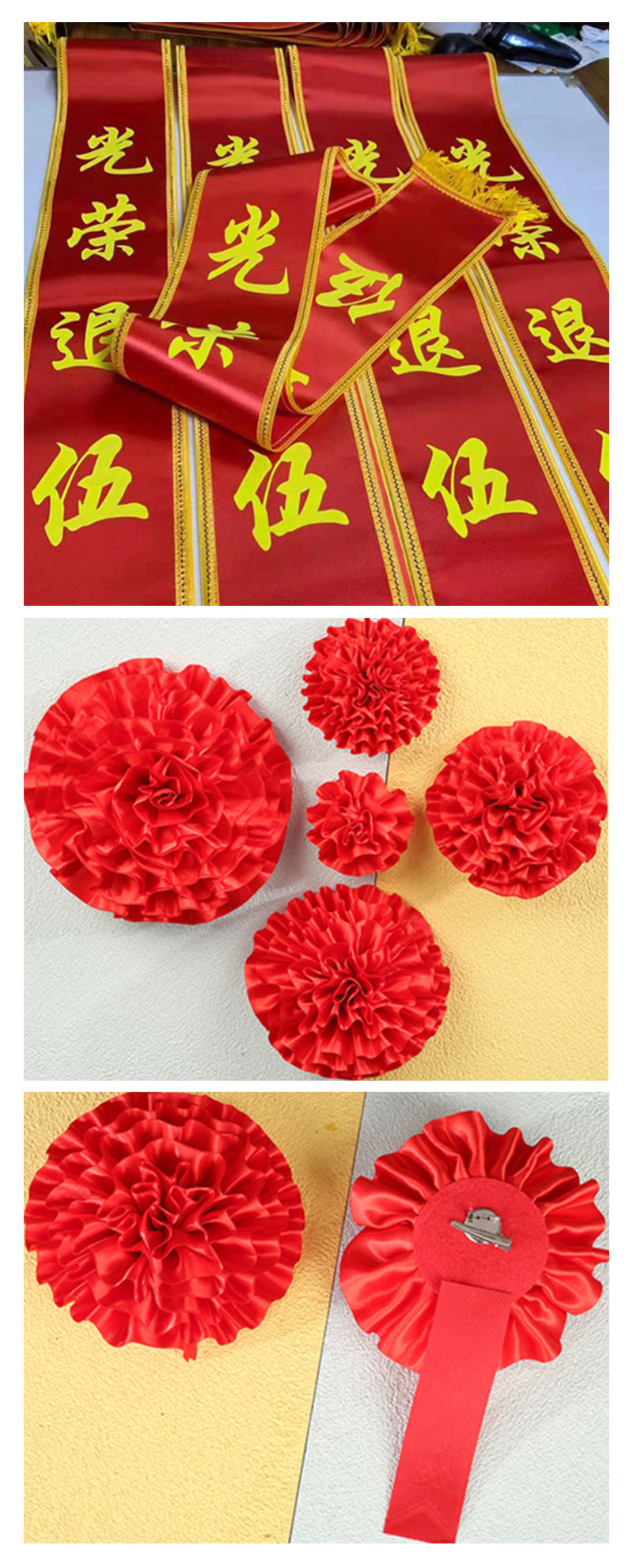 大红花 16cm光荣缎胸花+光荣退伍绸带