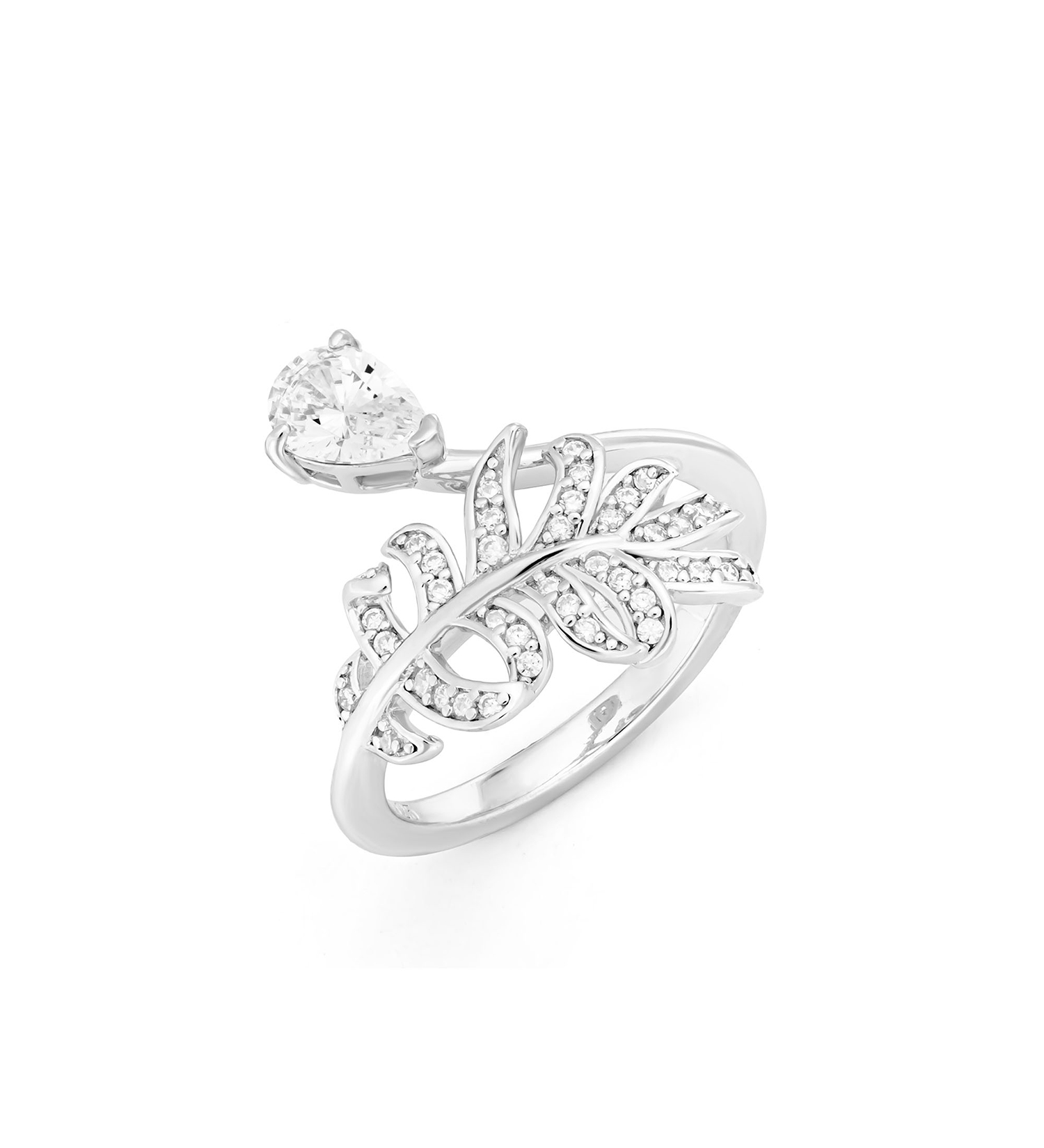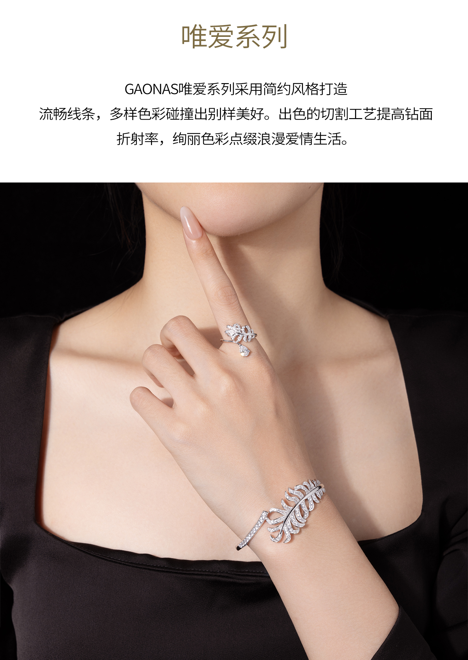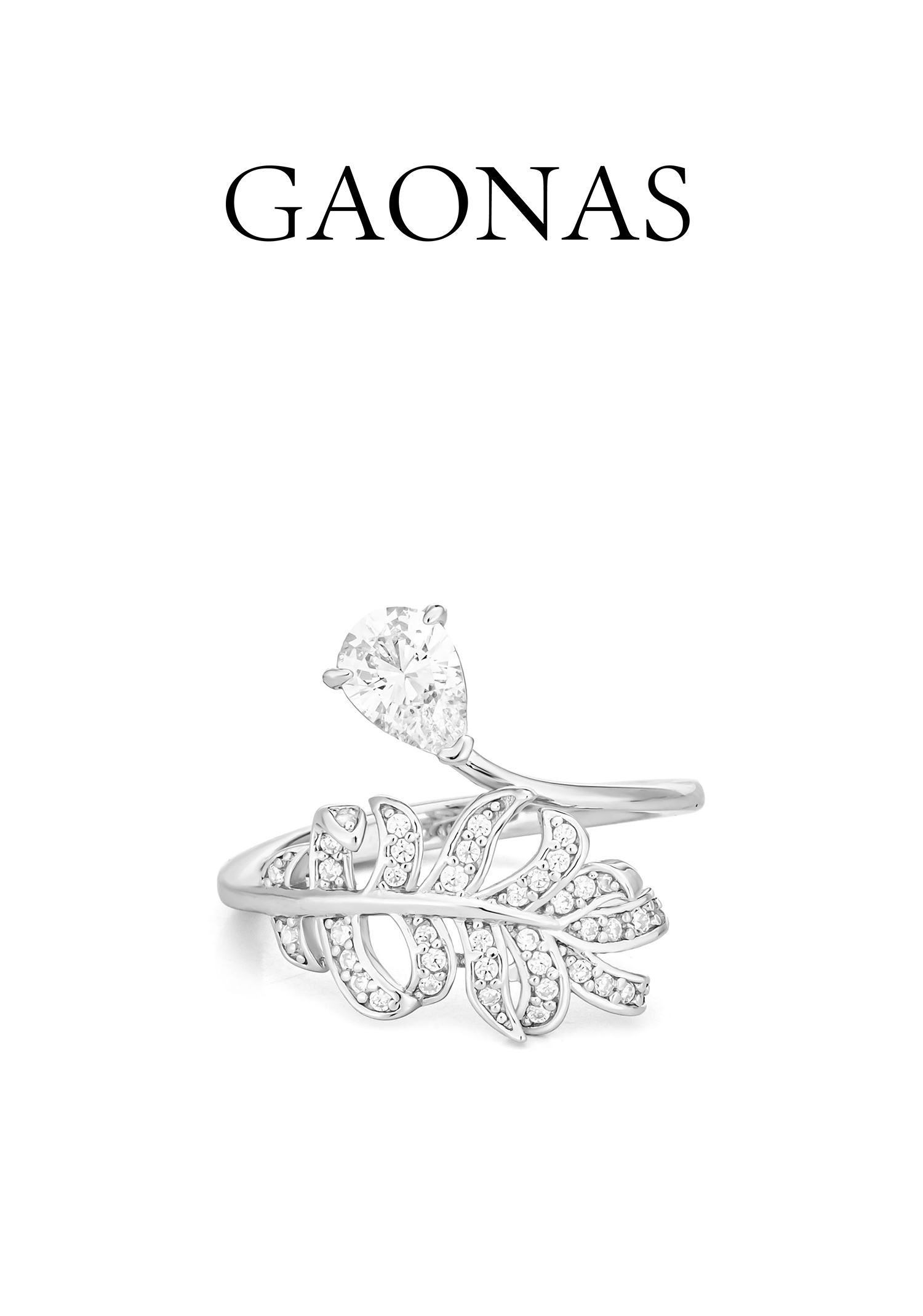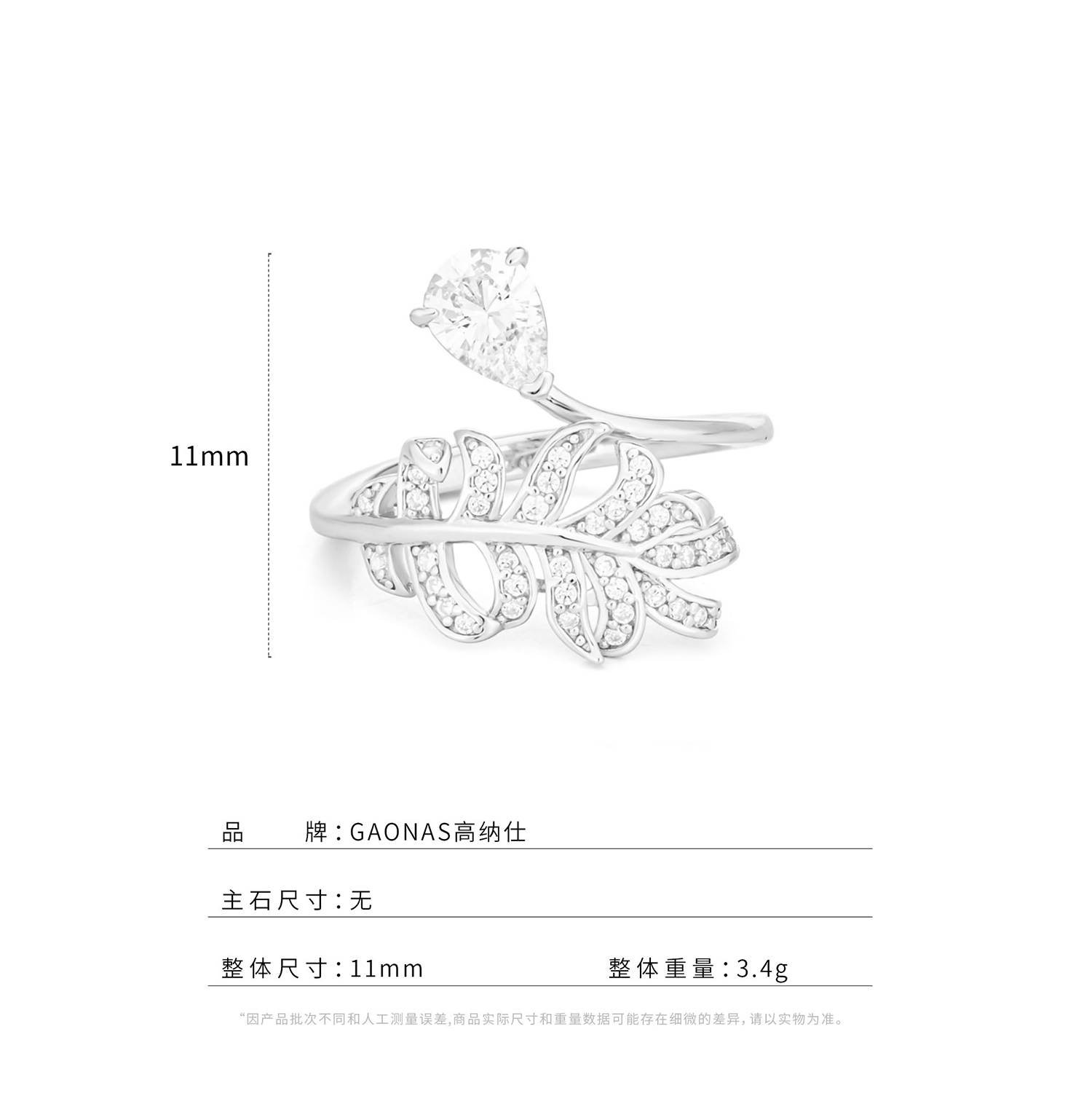 GAONAS 925银合成锆石戒指 惊鸿 时尚白色羽毛女神开口戒 11062JW