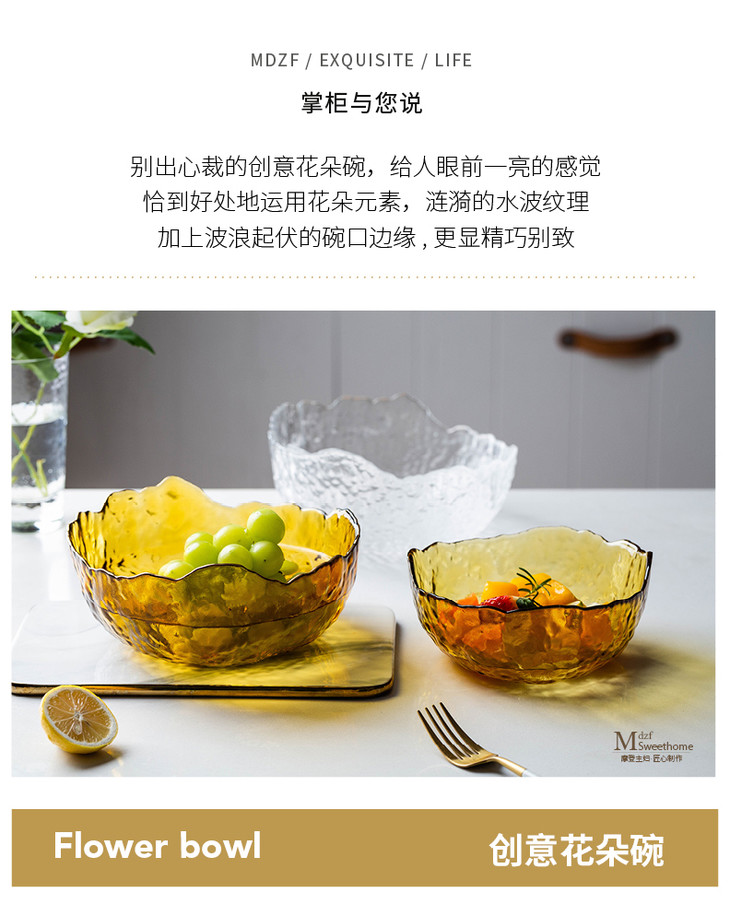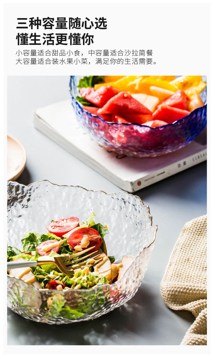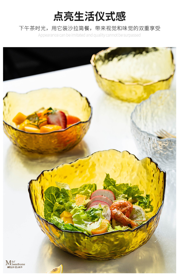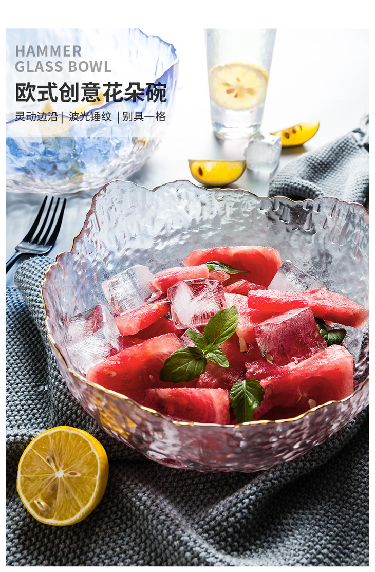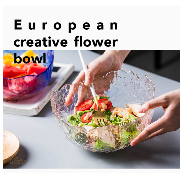 摩登主妇欧式玻璃碗大号家用餐具创意个性水果沙拉碗玻璃甜品碗
