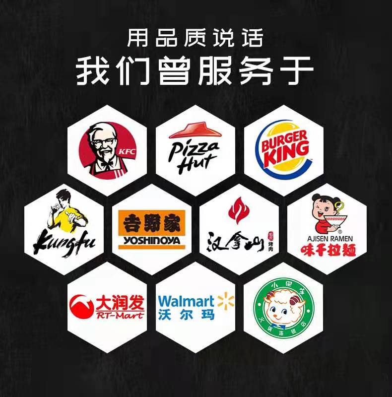 8.因为信任所以选择,知名品牌供货商客户有:7-11、全家、肯德基、必胜客、汉堡王、小肥羊、海底捞等。