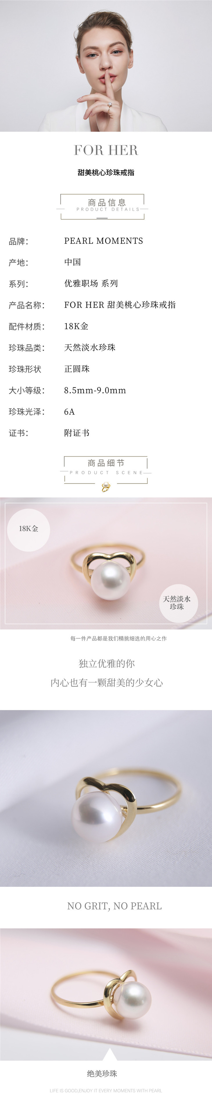 Pearl moments FOR HER甜美桃心天然淡水珍珠戒指