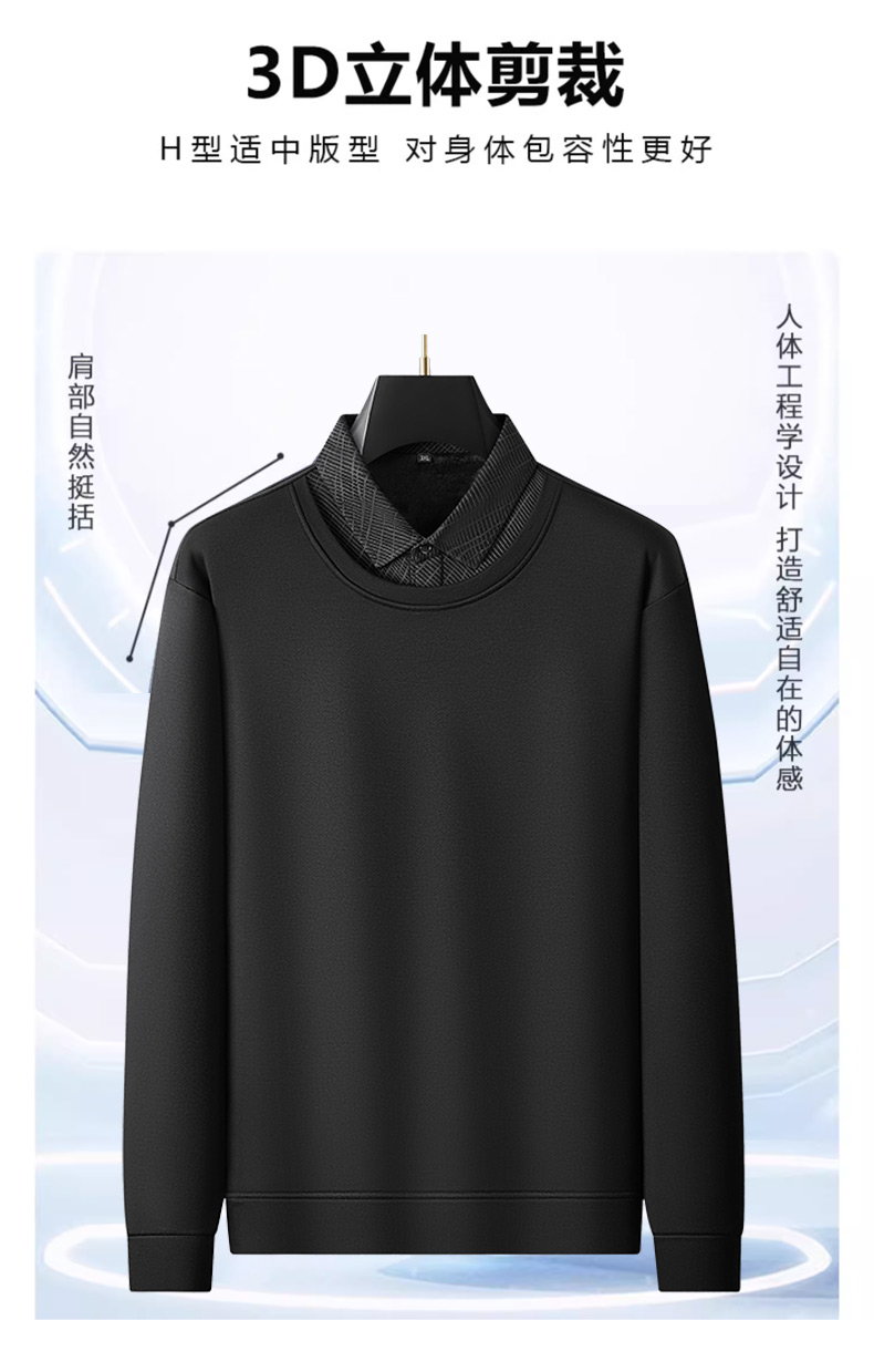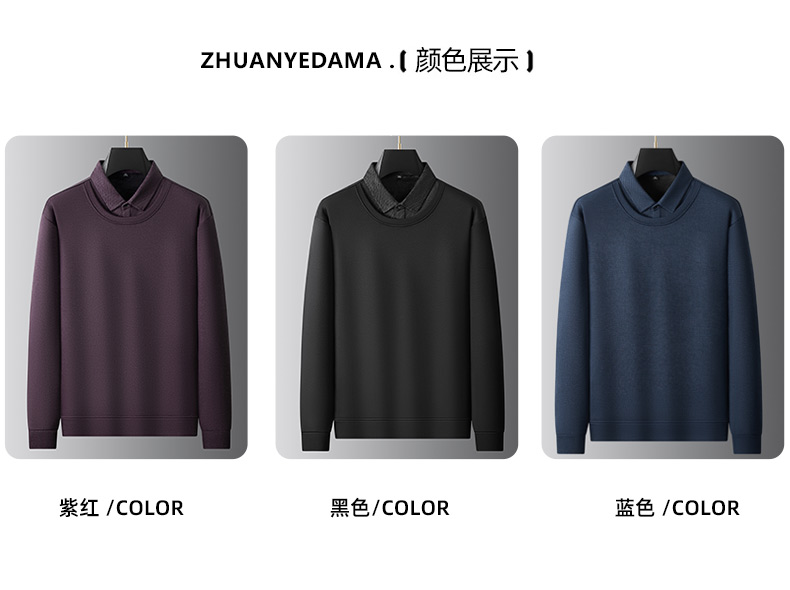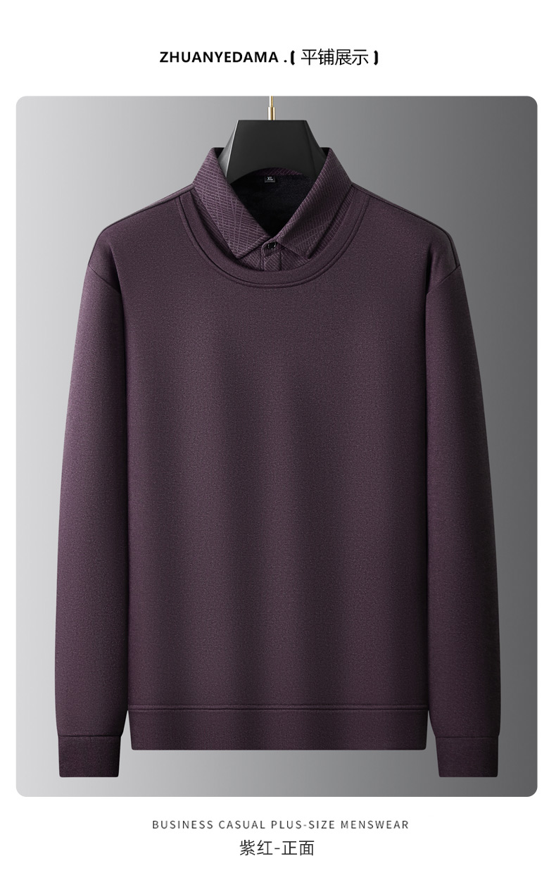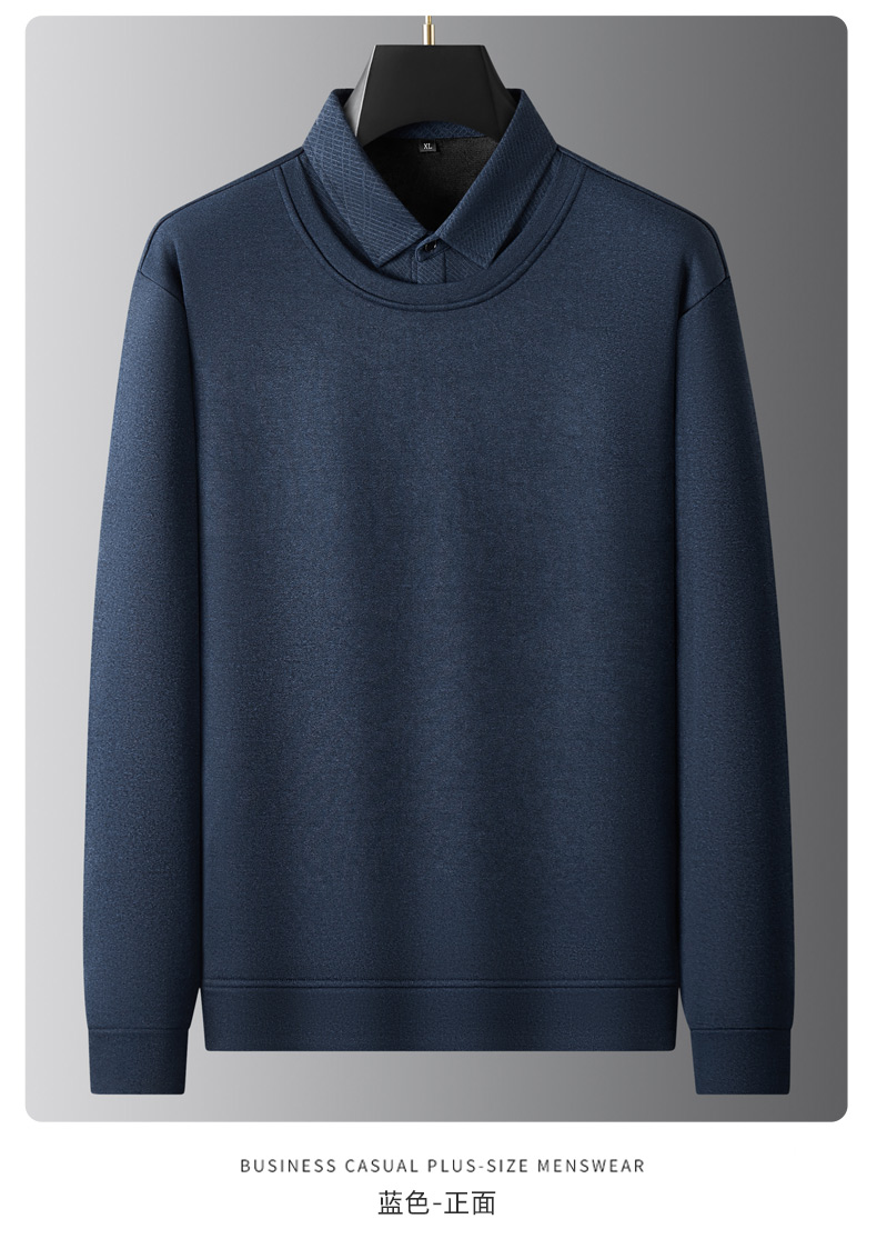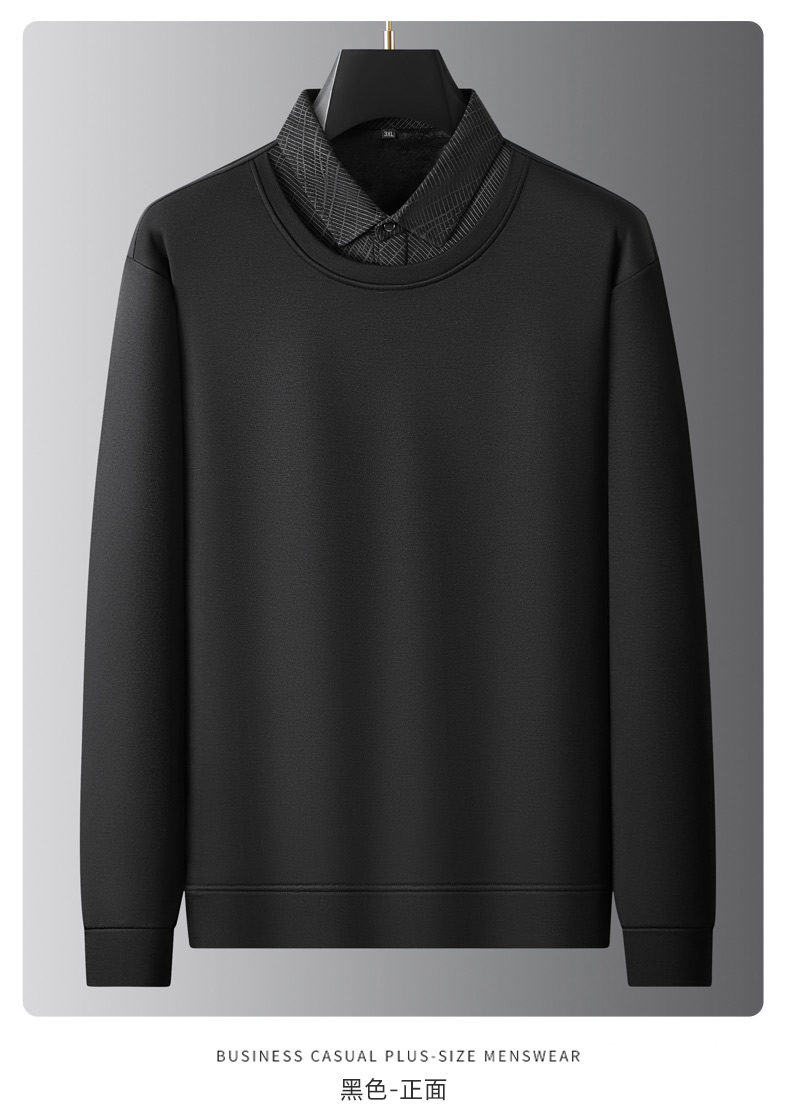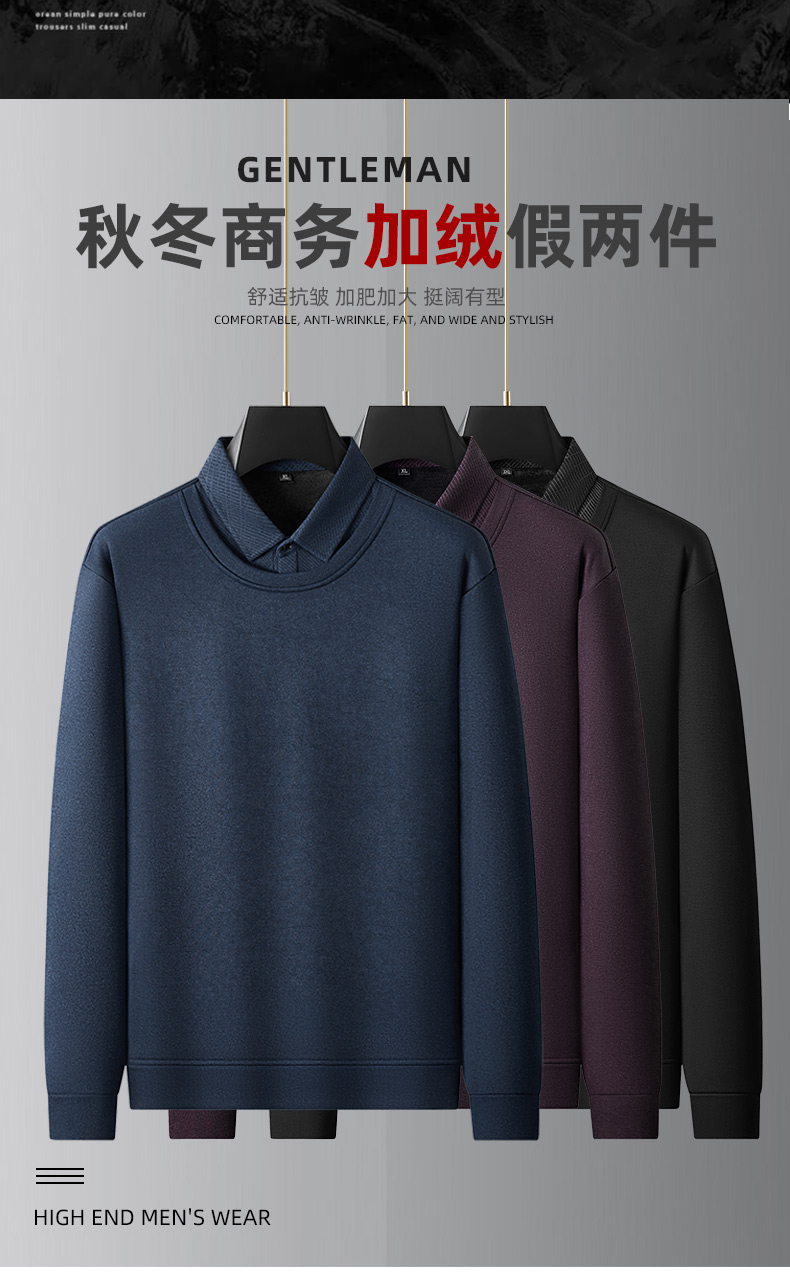 大依优型大码男装秋冬加绒假两件POLO衫休闲商务翻领长袖上衣300