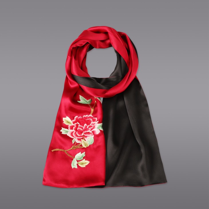 CESARE BRUNI品牌,双层双面桑蚕丝牡丹绣花围巾CH810