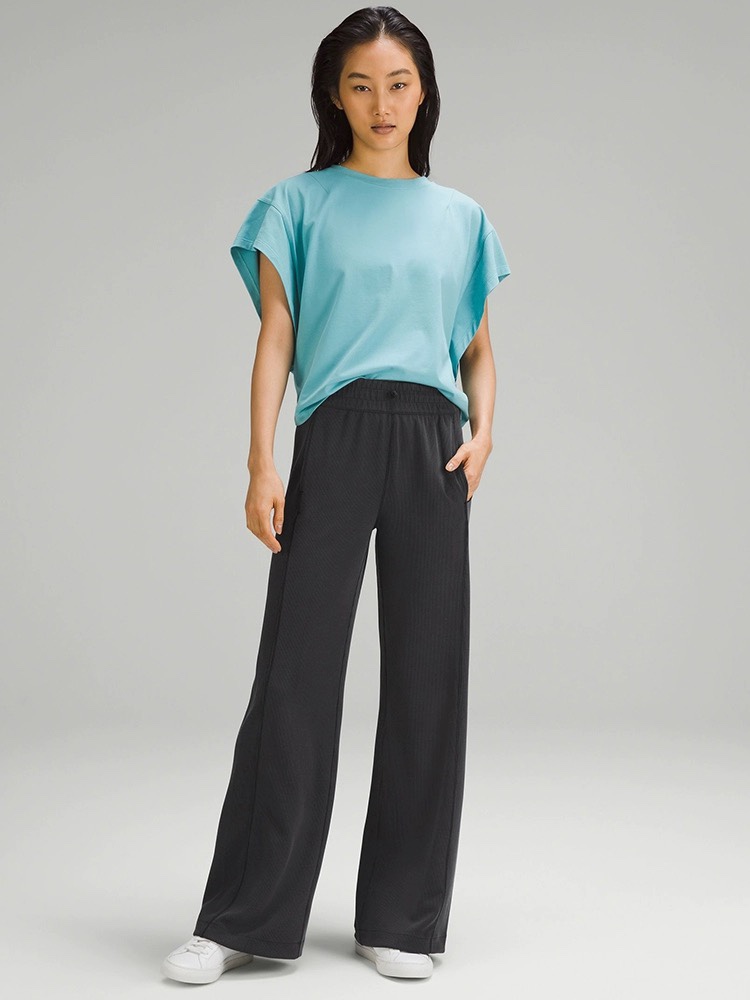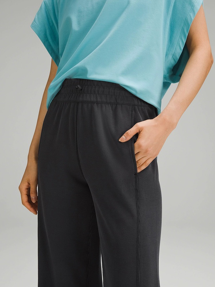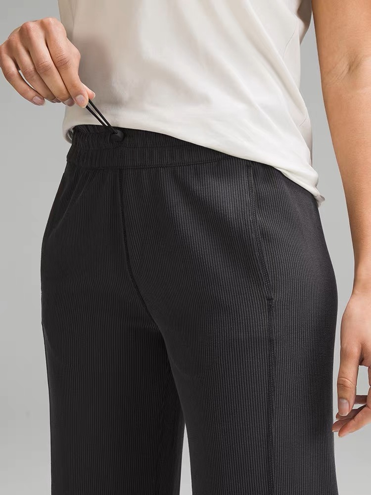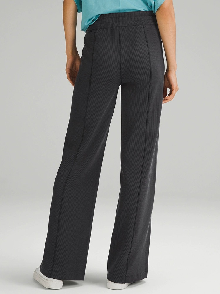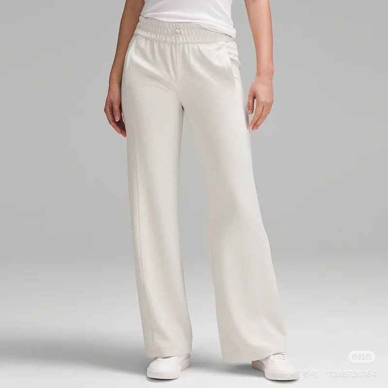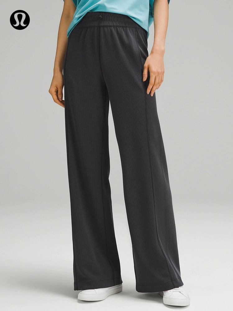 lulu女士中腰罗纹直筒阔腿裤~