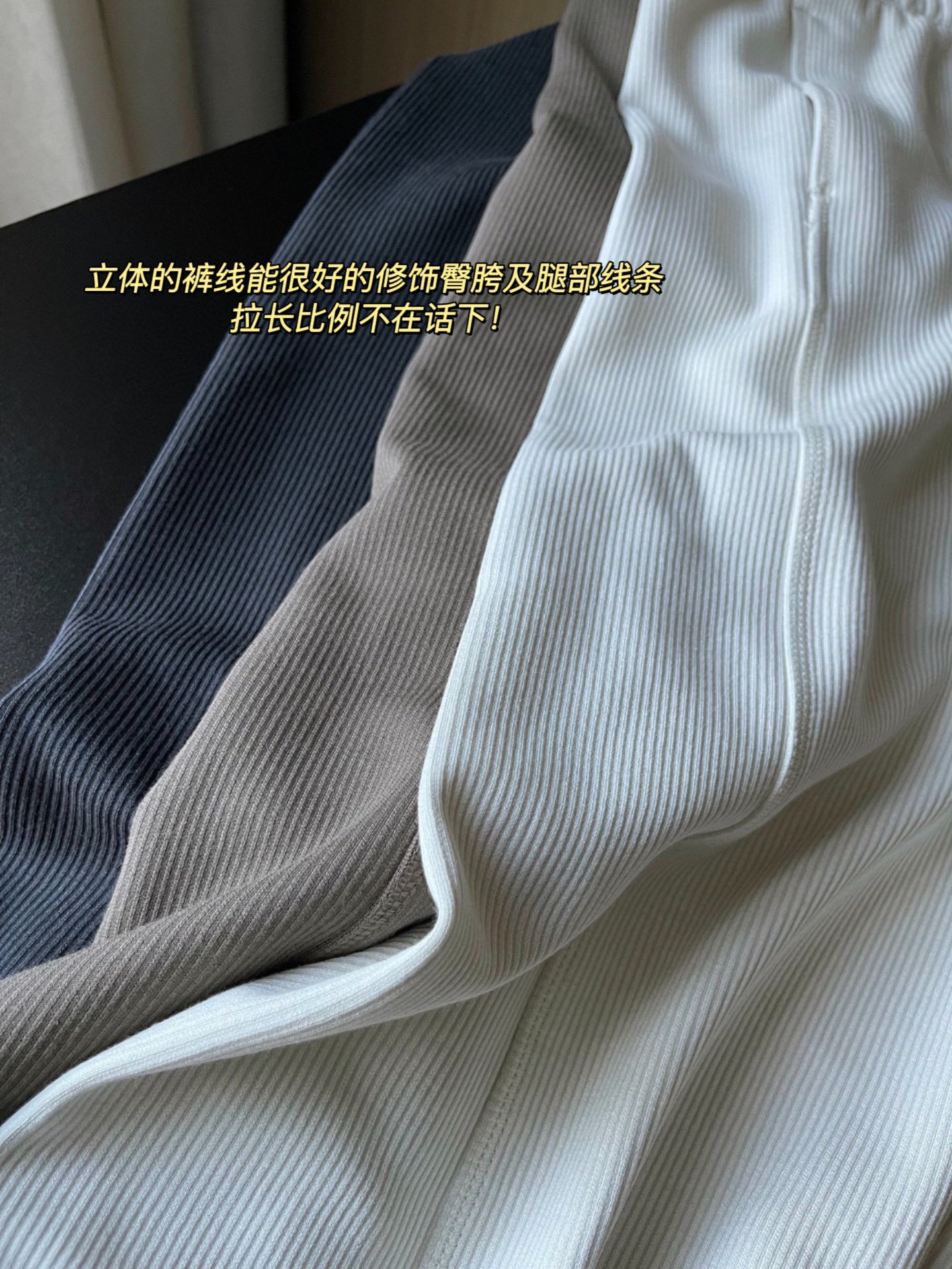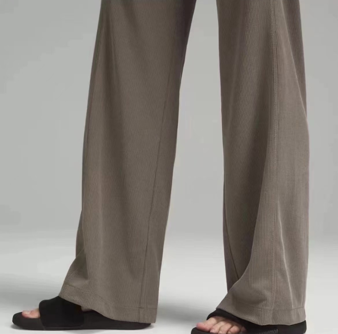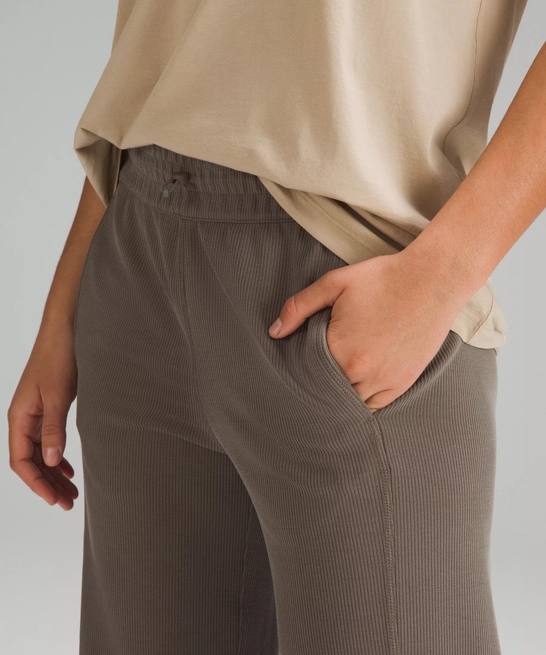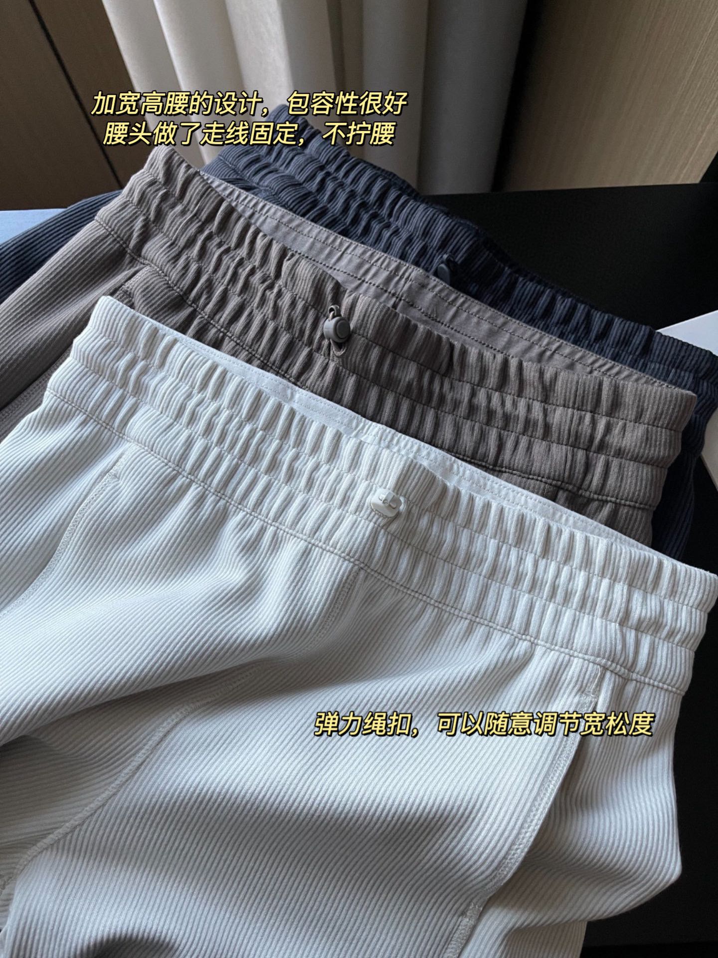lulu女士中腰罗纹直筒阔腿裤~