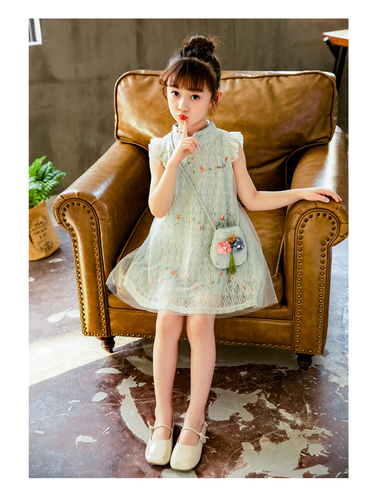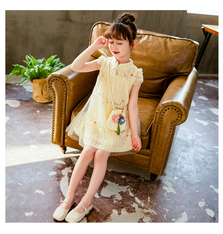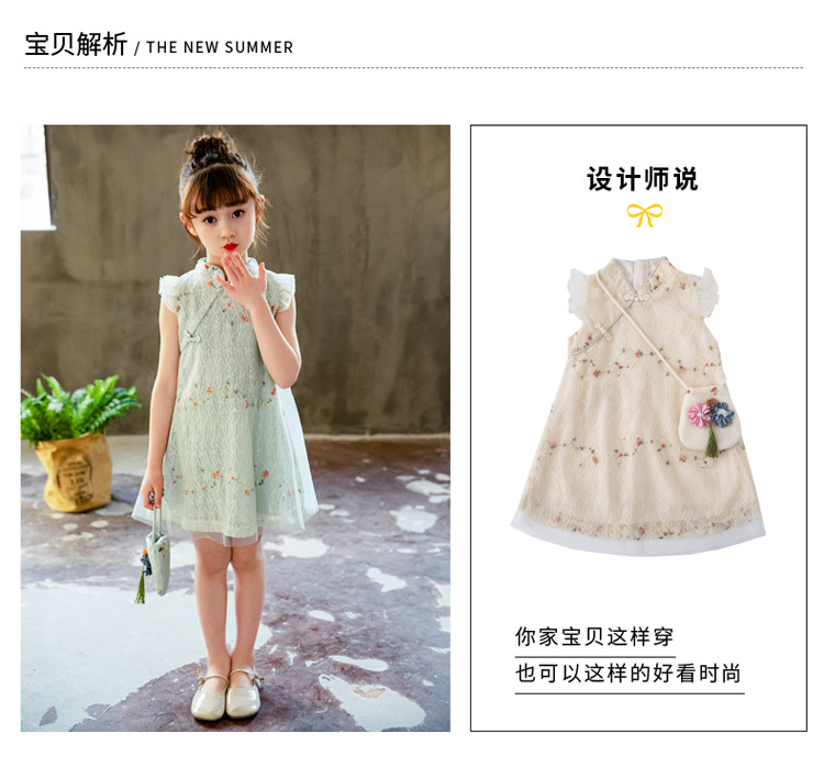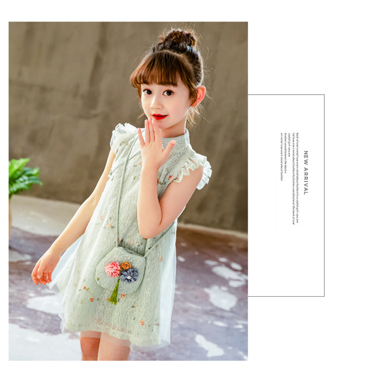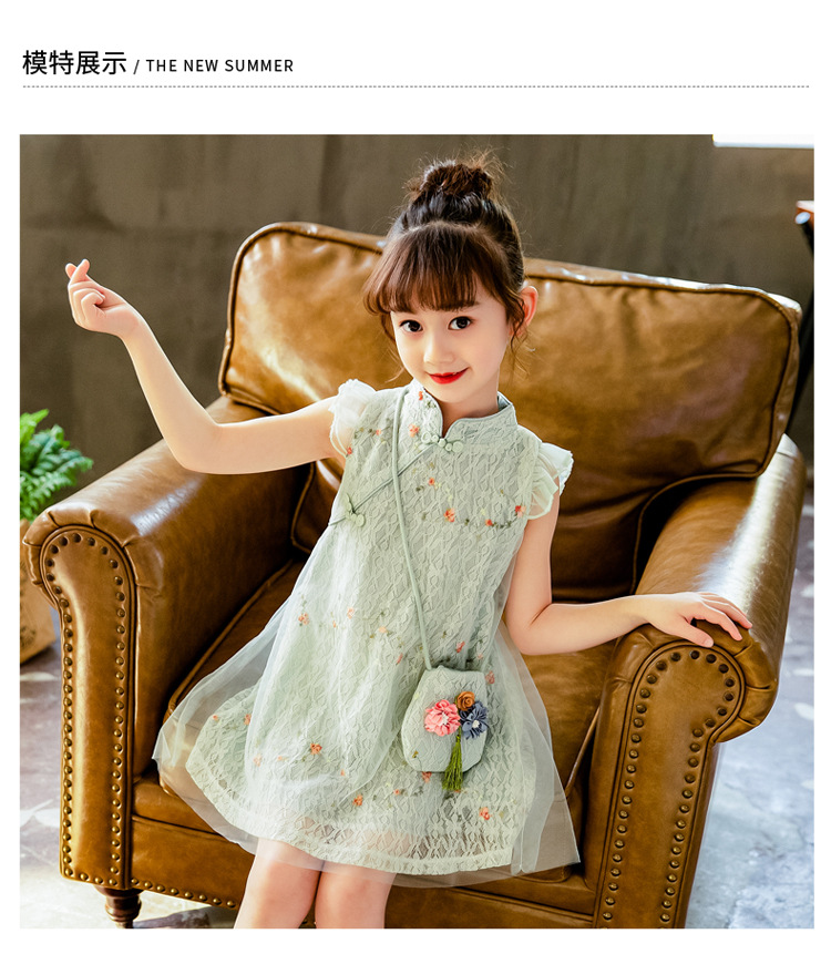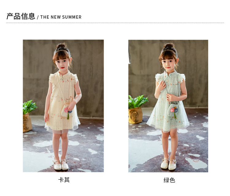 HGY-82114(送同款包包)七彩蕾丝旗袍连衣裙 2020新款女童短袖网纱公主蓬蓬裙