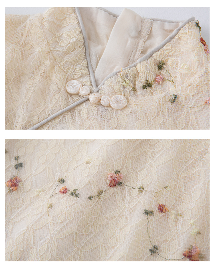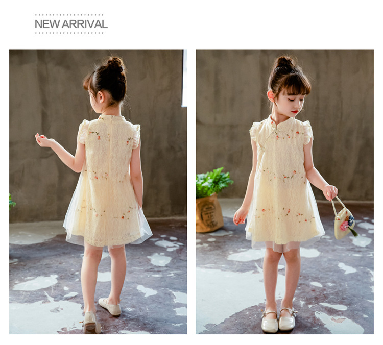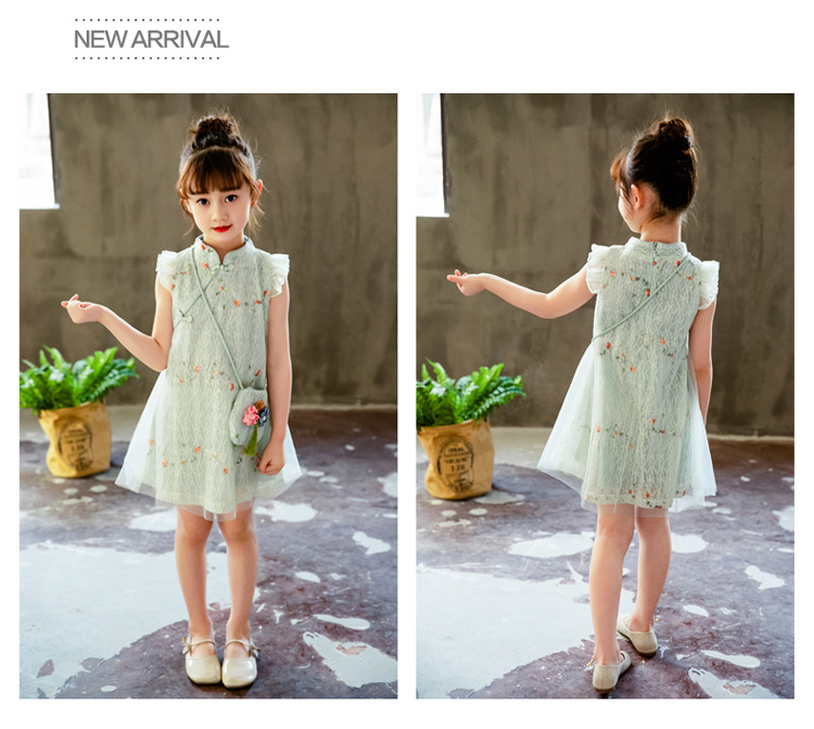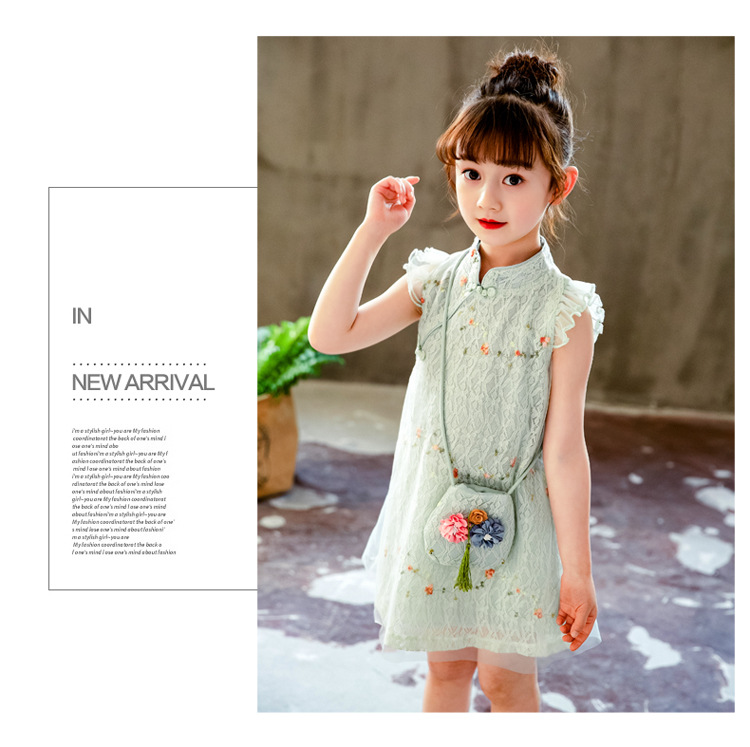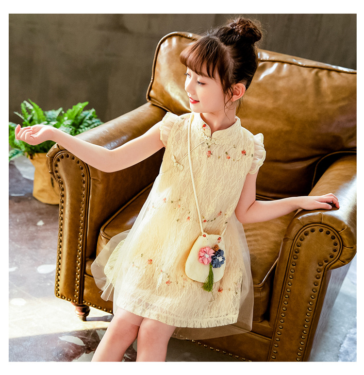 HGY-82114(送同款包包)七彩蕾丝旗袍连衣裙 2020新款女童短袖网纱公主蓬蓬裙