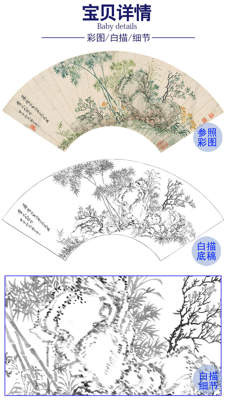 恽寿平没骨花鸟白描底稿-扇面小品-SP03