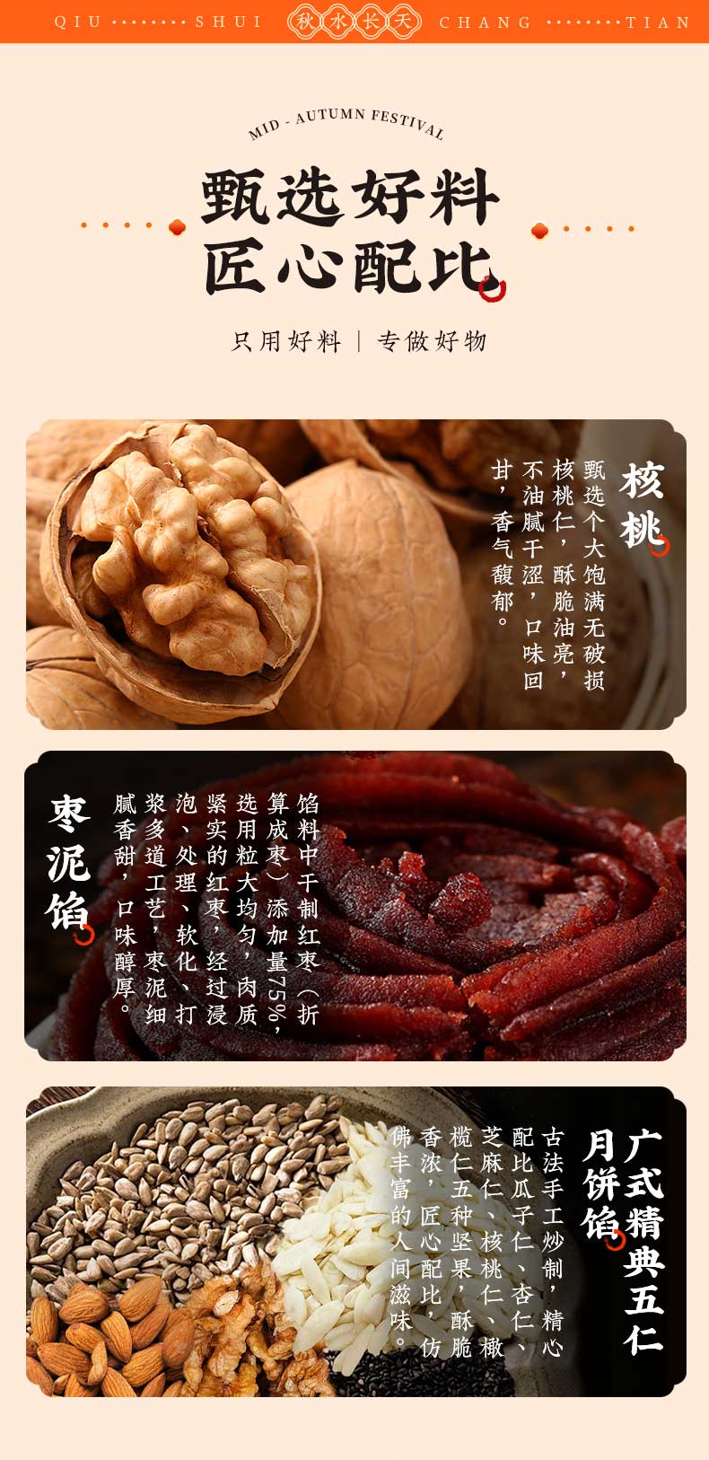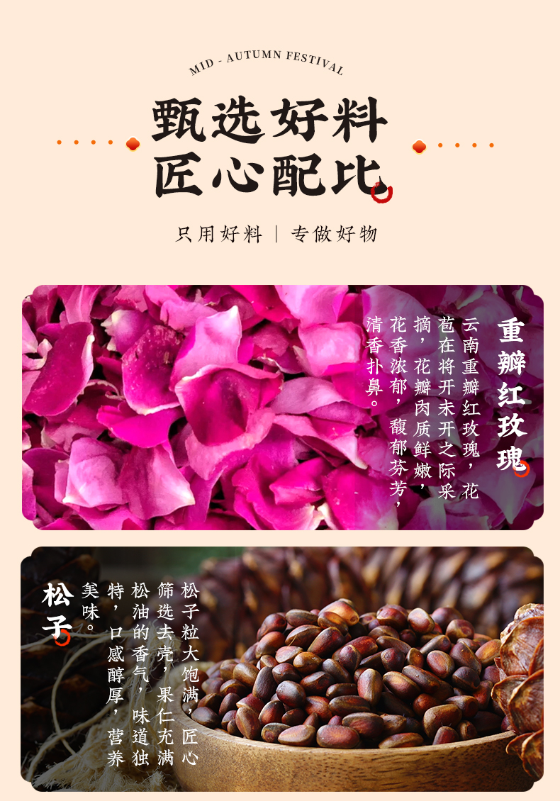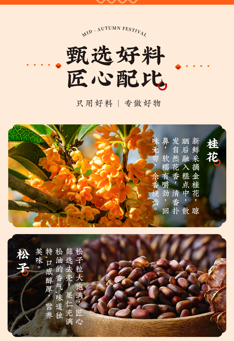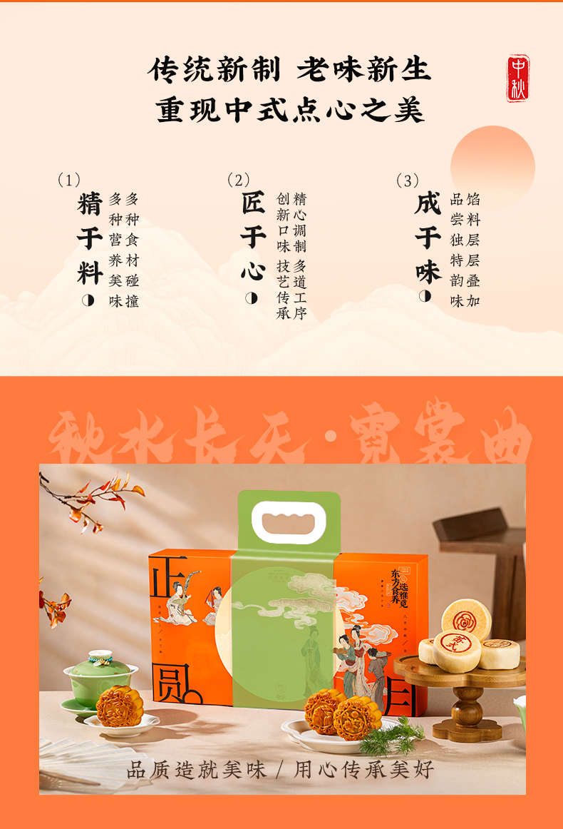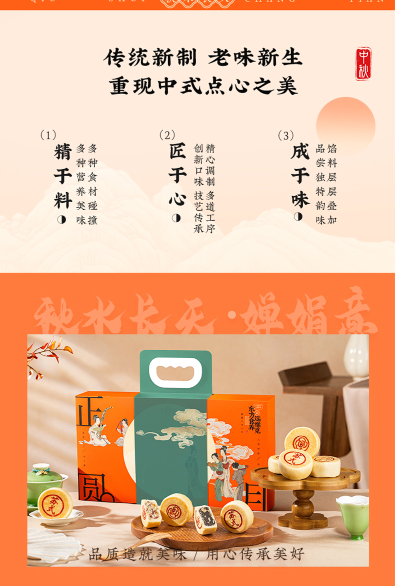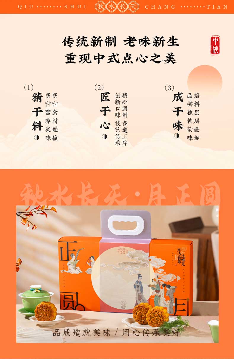 | 【品名】雅觅秋水长天系列月饼礼盒 【规格】 广式精典蛋黄莲蓉月饼 广式枣泥山核桃月饼 广式精典五仁月饼 广式新会陈皮豆沙月饼 规格2:秋水长天·霓裳曲月饼礼盒480g(8粒8味) 广式精典蛋黄莲蓉月饼 式枣泥山核桃月饼 广式精典五仁月饼 广式新会陈皮豆沙月饼 苏式黑麻擂沙月饼 苏式百果玫瑰月饼 苏式枣泥松子月饼 苏式核桃果仁月饼 规格3:秋水长天·婵娟意月饼礼盒480g(8粒4味) 苏式黑麻擂沙月饼 苏式百果玫瑰月饼 苏式枣泥松子月饼 苏式核桃果仁月饼 规格4:秋水长天·夜明月月饼礼盒600g(10粒8味) 豆乳黑米月饼 金沙蜜薯月饼 红枣黄米桂圆月饼 桑葚五黑月饼 杏脯薏仁月饼 玫瑰洛神月饼 奶酥欧李蔓越莓月饼 蛋黄乳酪酥月饼 规格5:秋水长天·月满楼月饼礼盒540g(9粒9味) 流心司考奇拿铁月饼 流心港式奶黄月饼 流心豆乳黑米红茶月饼 广式精典蛋黄莲蓉月饼 式枣泥山核桃月饼 广式精典五仁月饼 苏式黑麻擂沙月饼 苏式百果玫瑰月饼 苏式枣泥松子月饼 【保质期】60天 【贮存条件】请置于阴凉、干燥、通风处常温储存 【产地】河北邯郸 【发货地】河北邯郸 【发货快递】顺丰、中通、京东、邮政 【不发货区域】新疆、西藏、青海、云南、港澳台地区不发 【发货时效】48小时,周末节假日顺延 【售后情况】节日类产品不支持无理由退换货,赠品不售后。 |