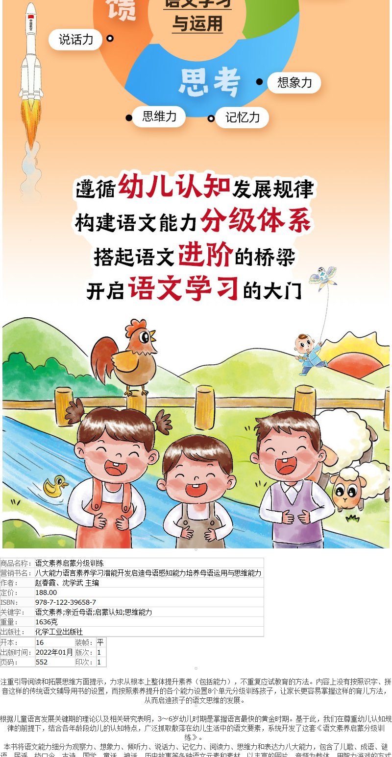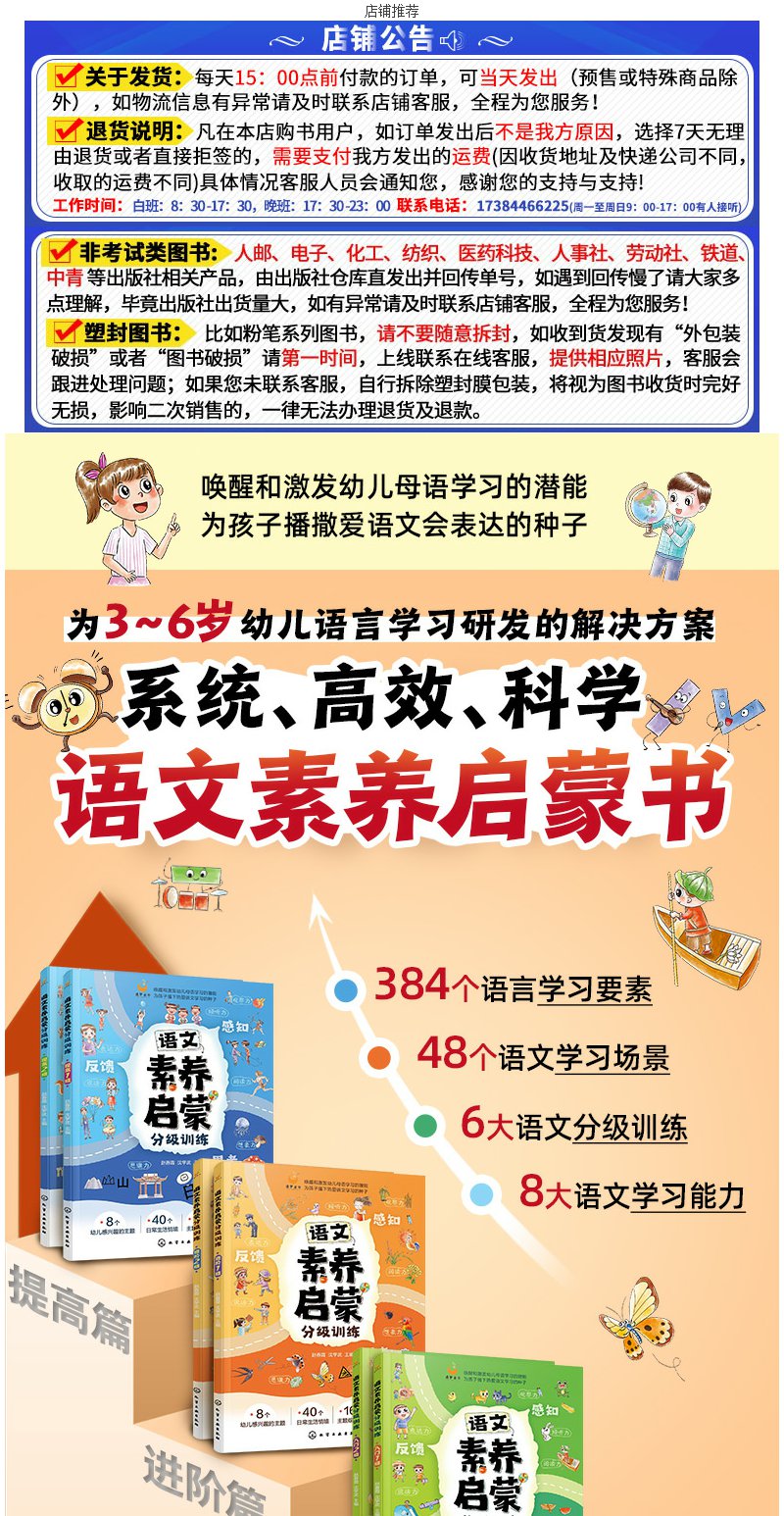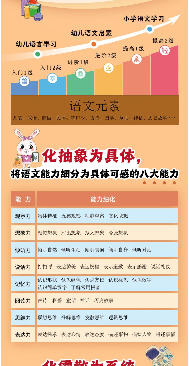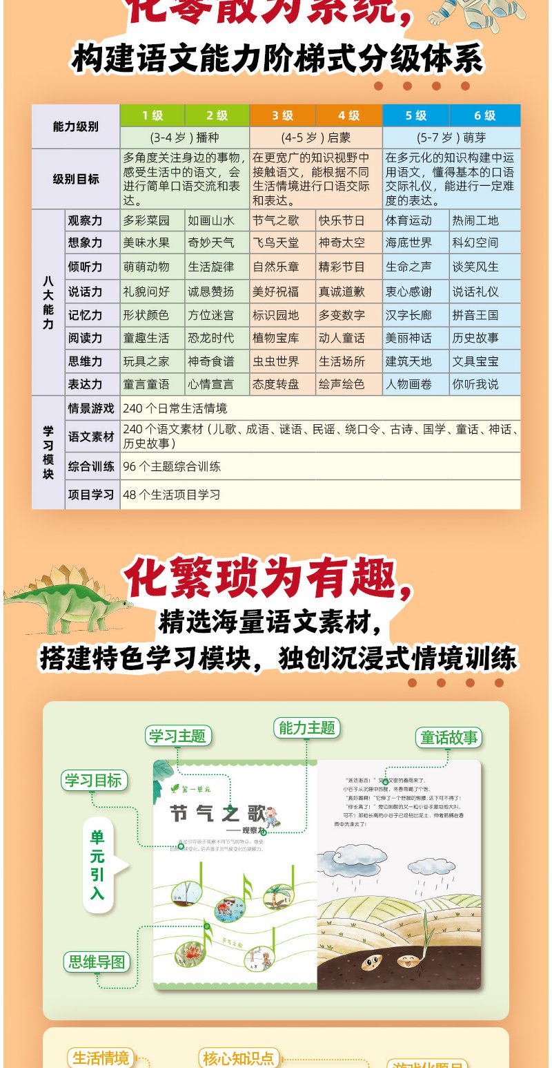 语文素养启蒙分级训练 3-6岁幼儿语文素养启蒙书籍 儿童语言学习潜能开发书籍 启迪母语感知能力 培养母语运用与思维能力应用书籍