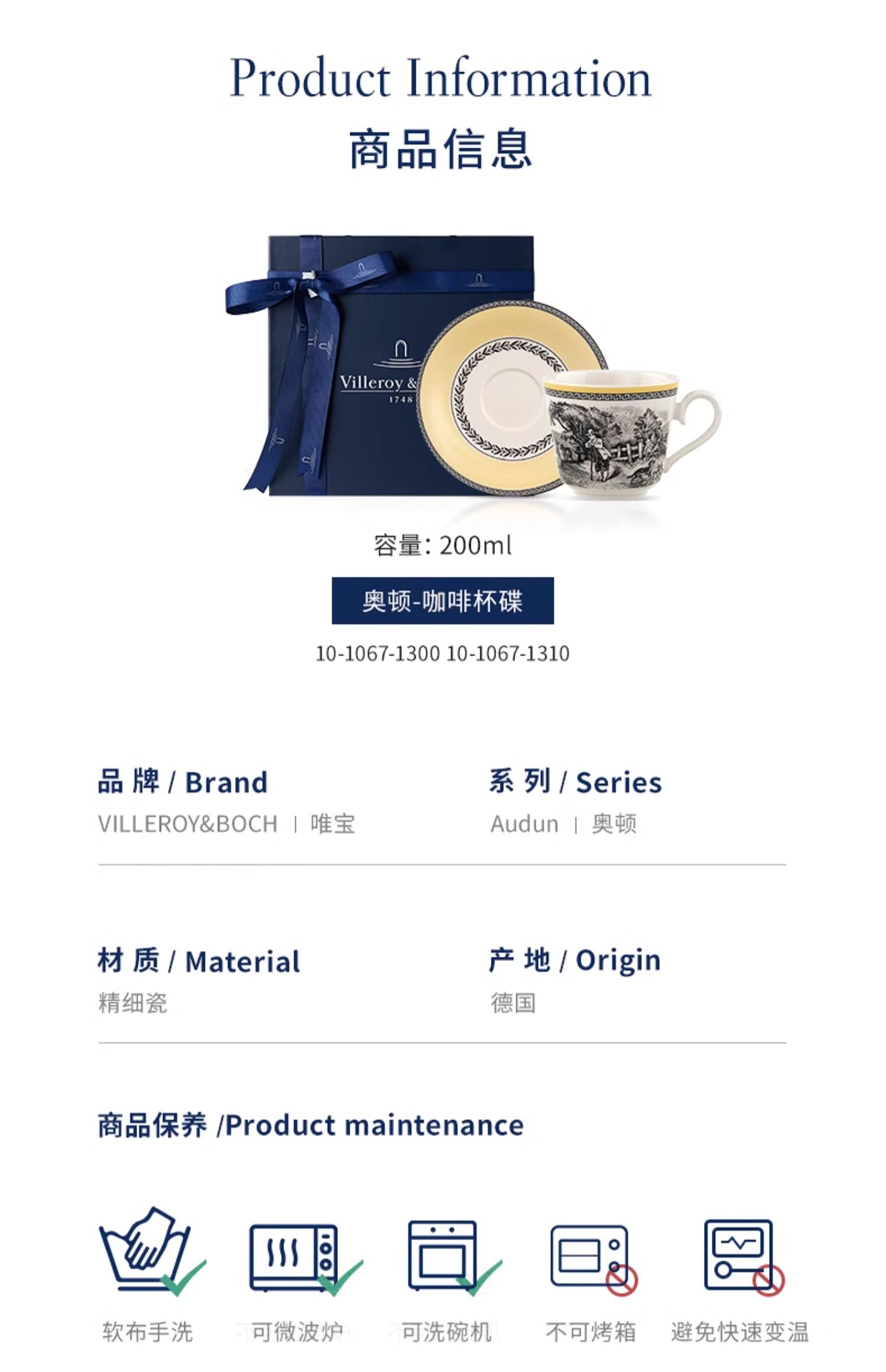 【VilleroyBoch 德国唯宝】奥顿下午茶咖啡杯碟200ml