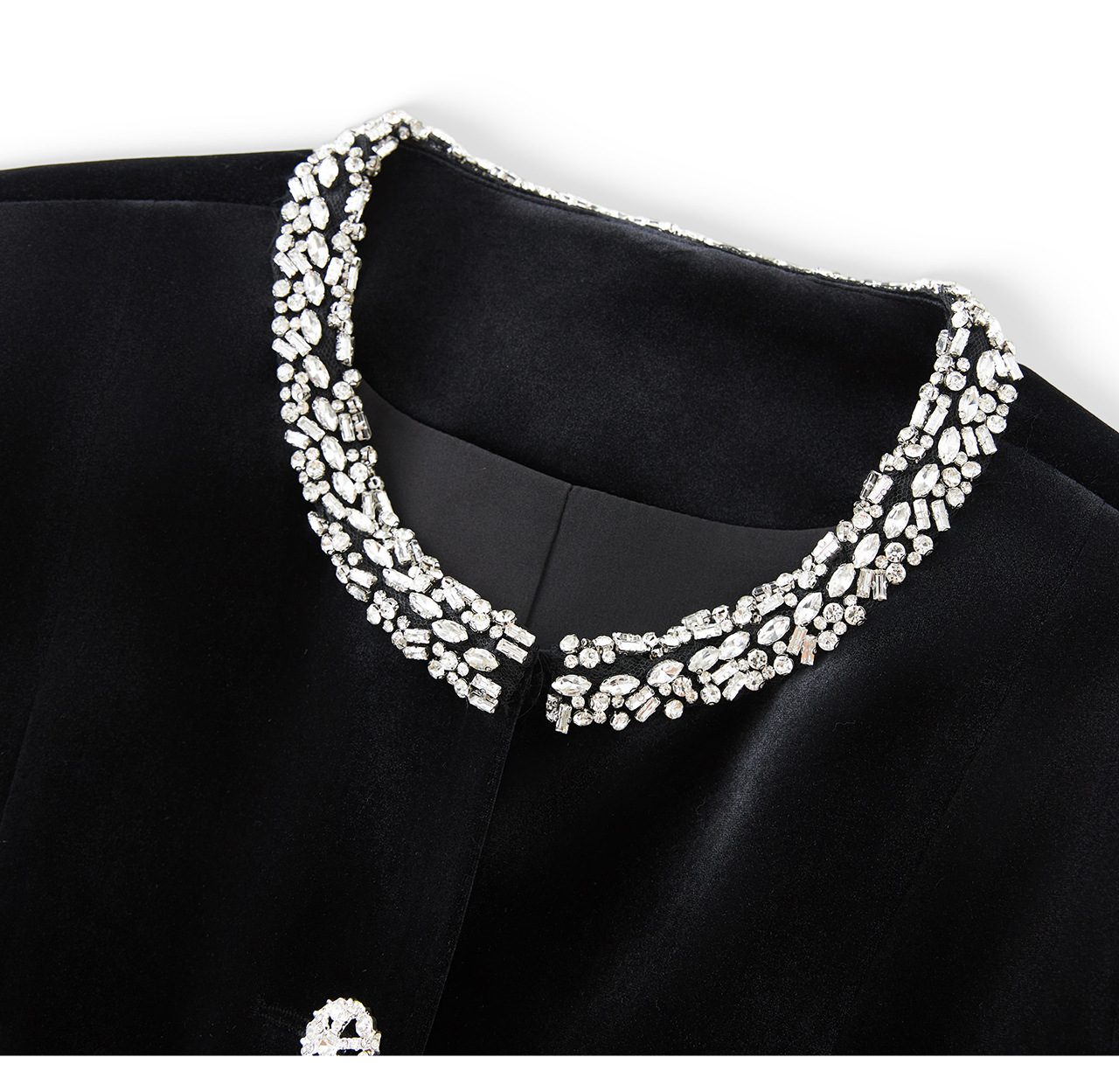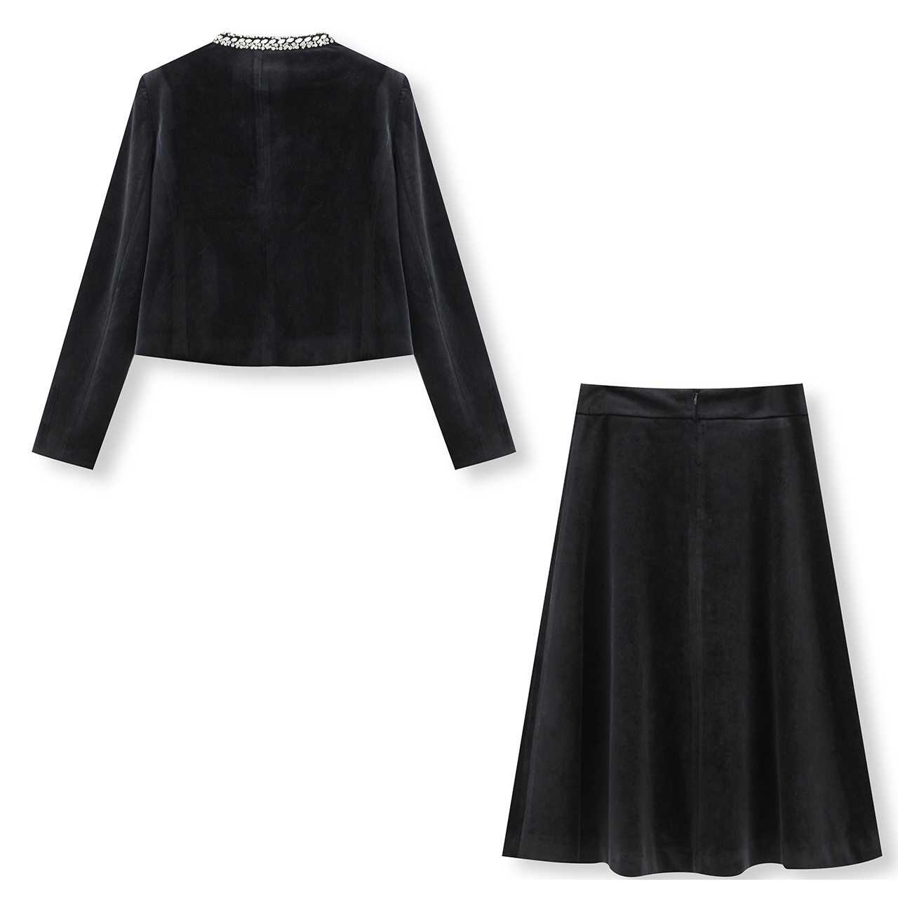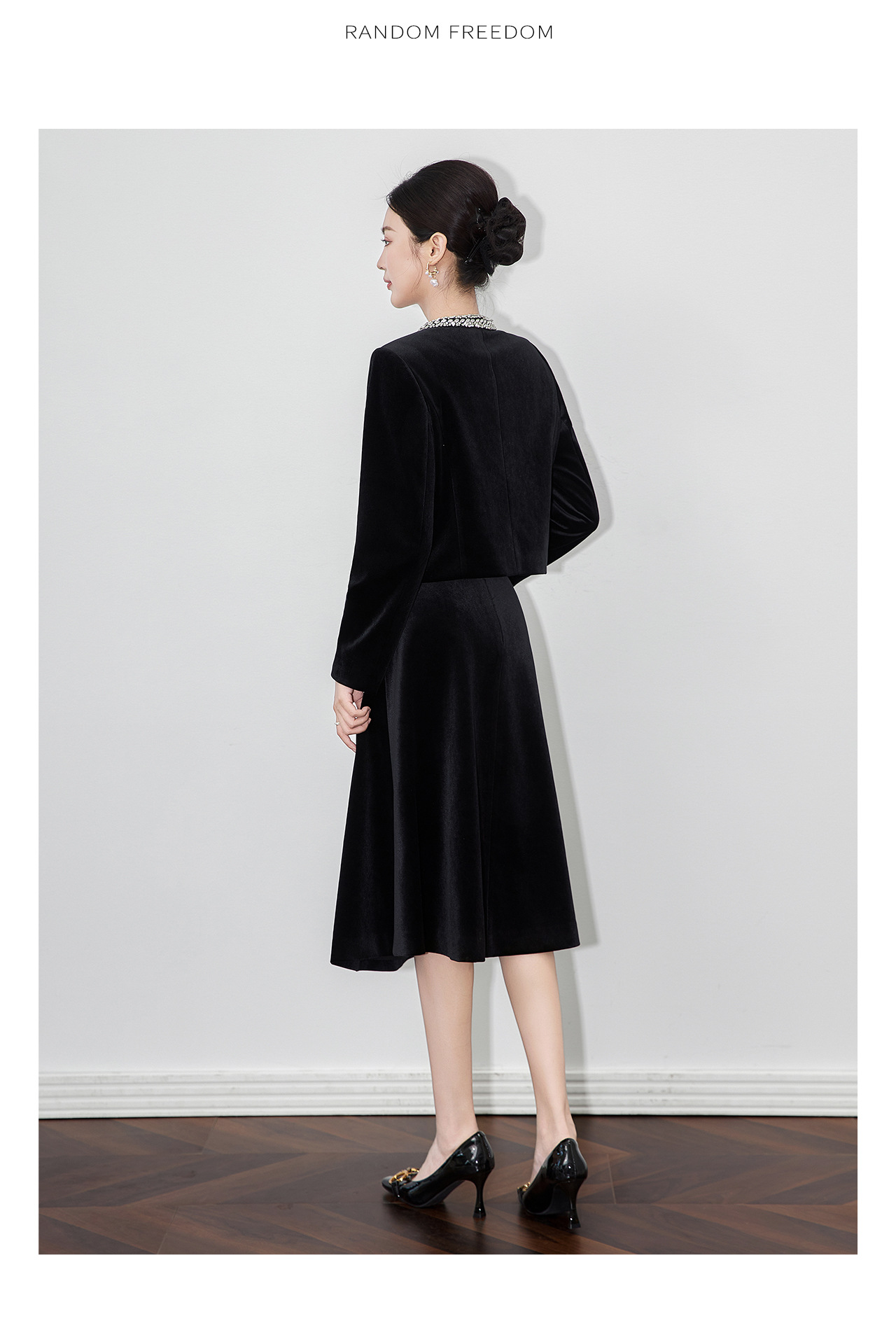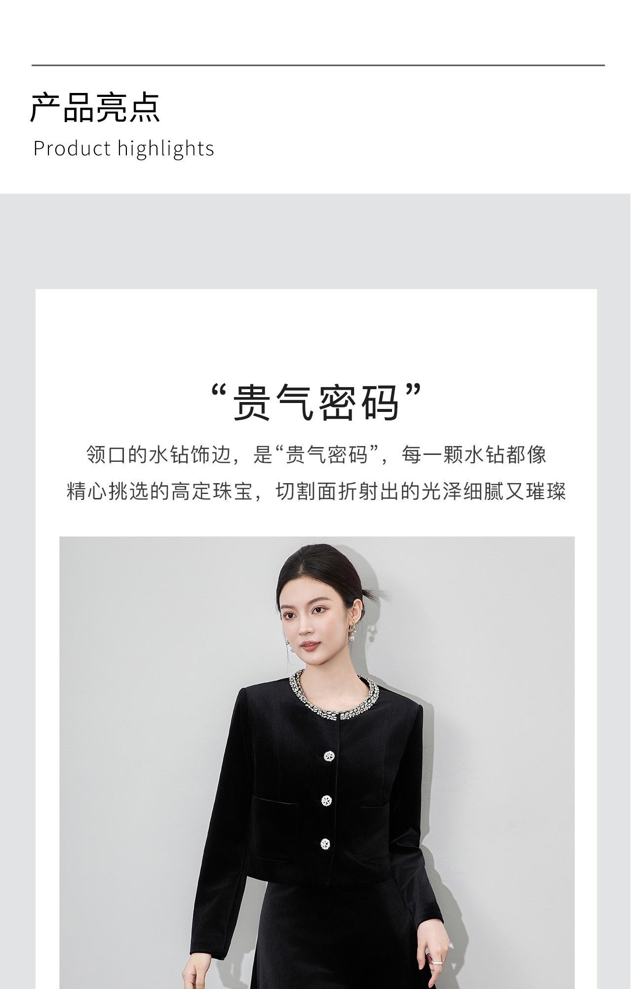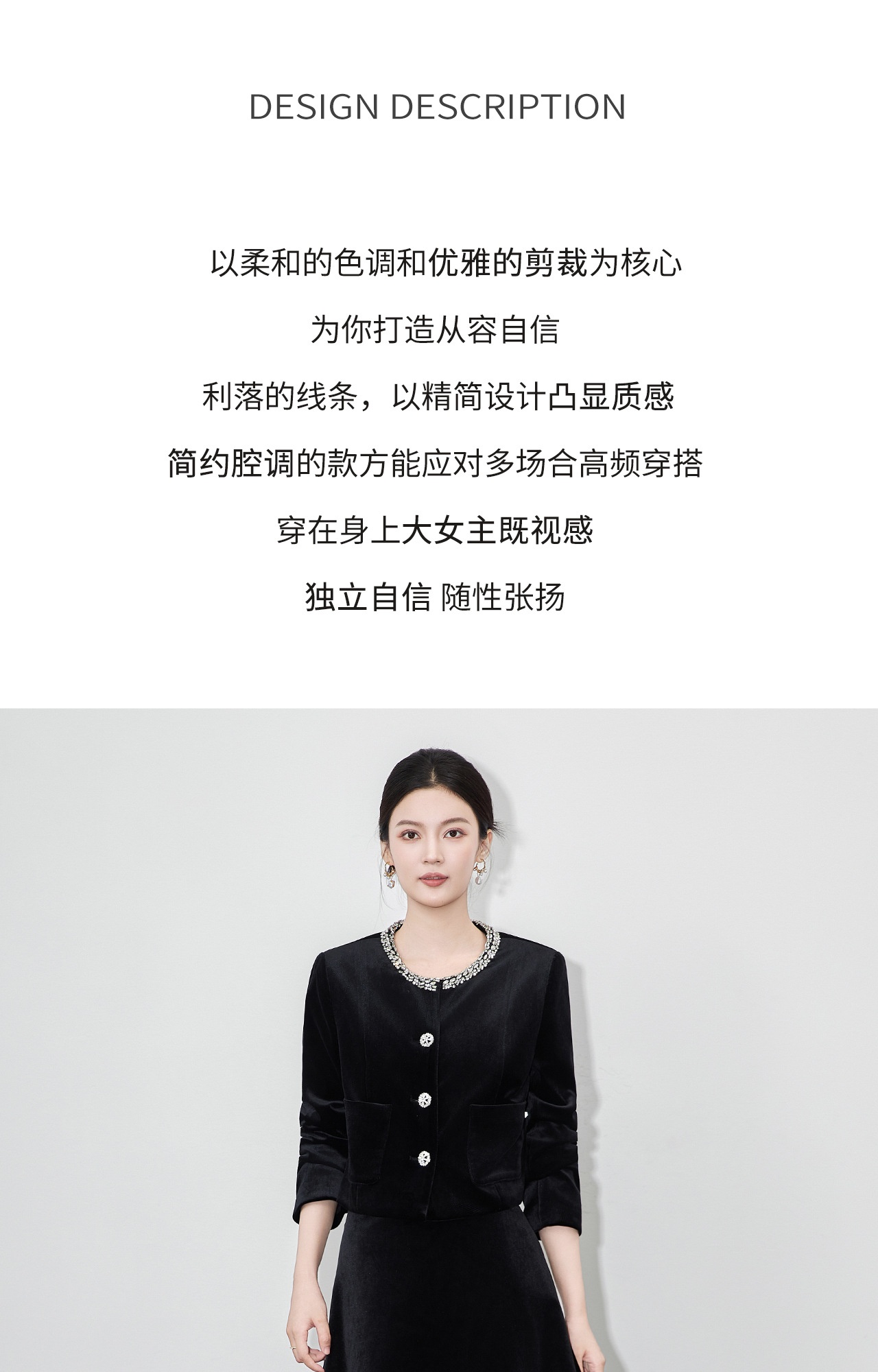 「高货wl」全新升级【铂金会员496/天猫669/差价173】(99223)洛诗琳2025秋季法式重工钉钻丝绒短外套A字半身裙两件套