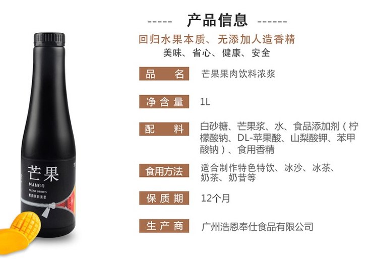 (优)臻典 芒果果汁果肉 1L*12瓶/件